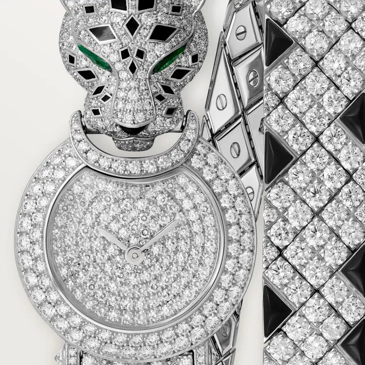 A watch that doubles as a piece of jewelry, Panthère de Cartier is one of the most distinctive Cartier designs. Adorned in gold, diamonds, and exquisite gemstones, it is a staple for a woman who never goes unnoticed. Magnetic, wild, feline, and free.