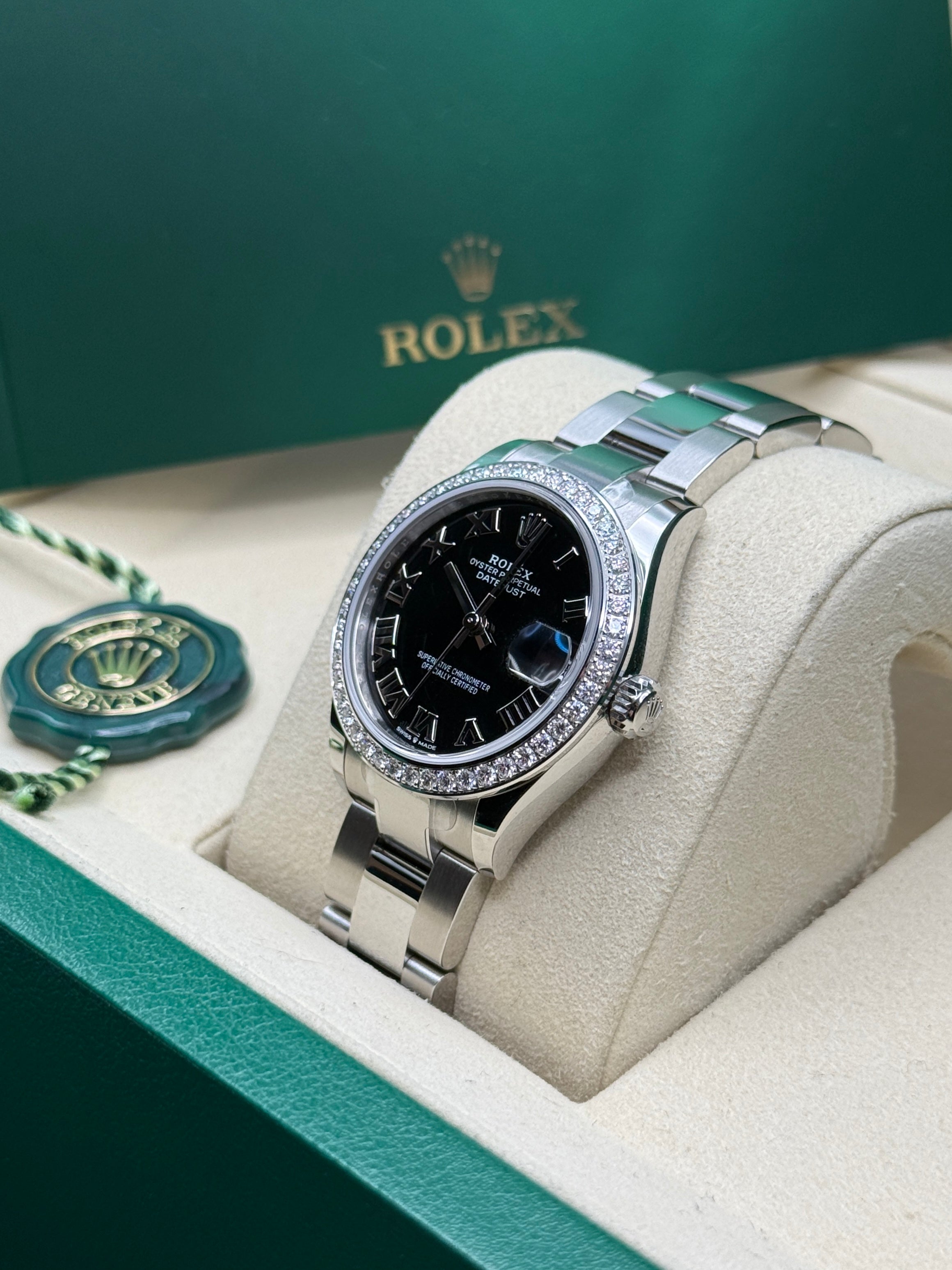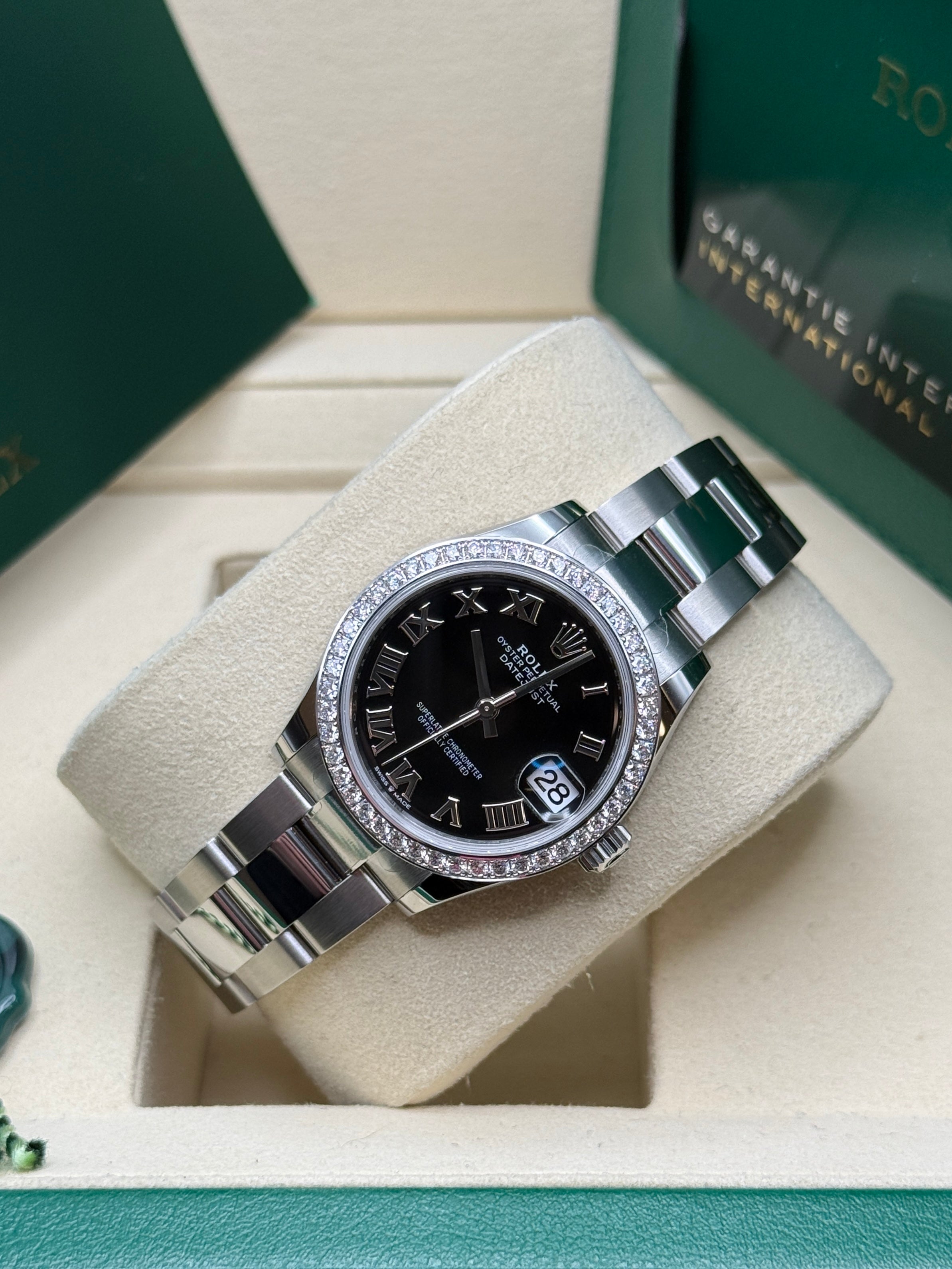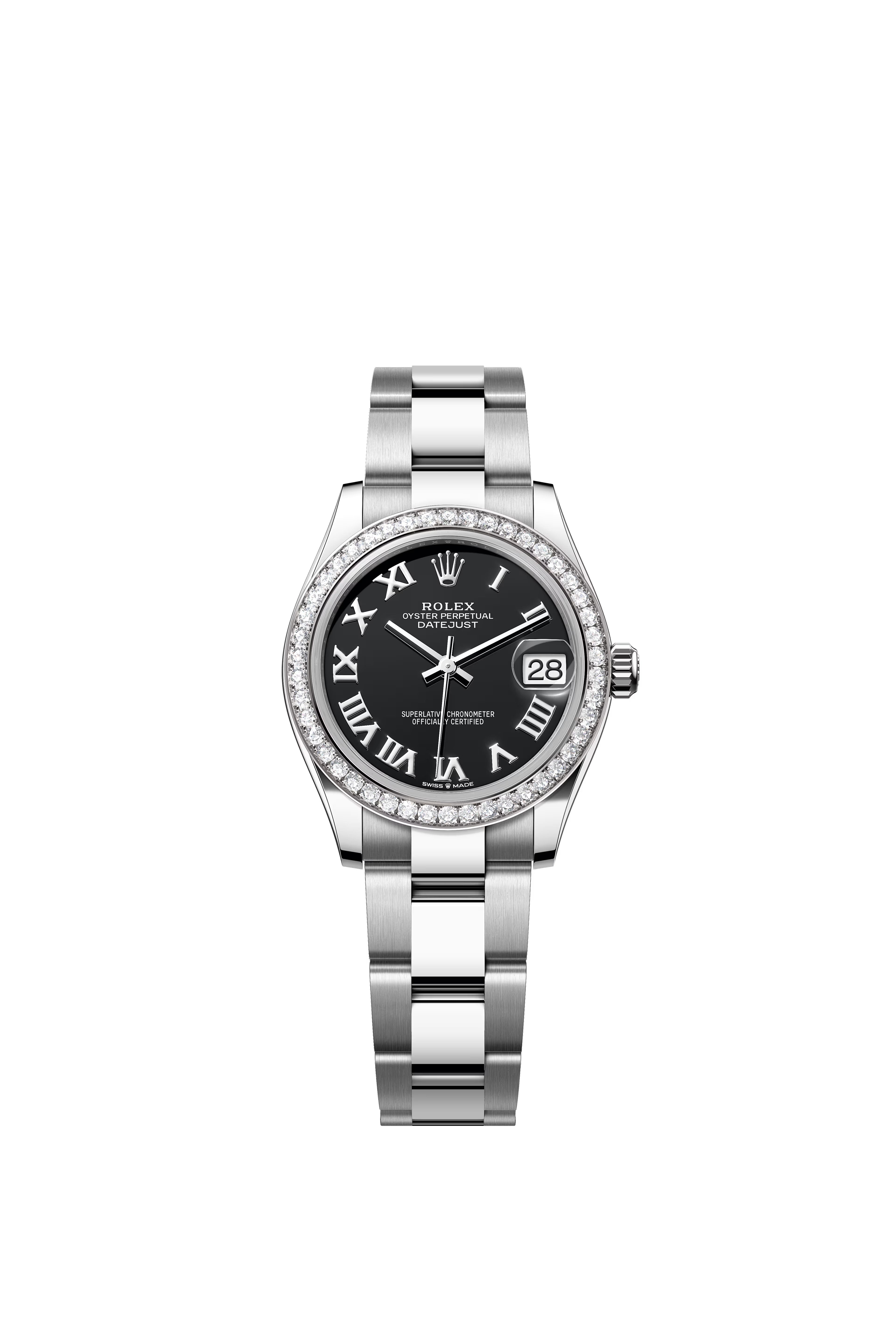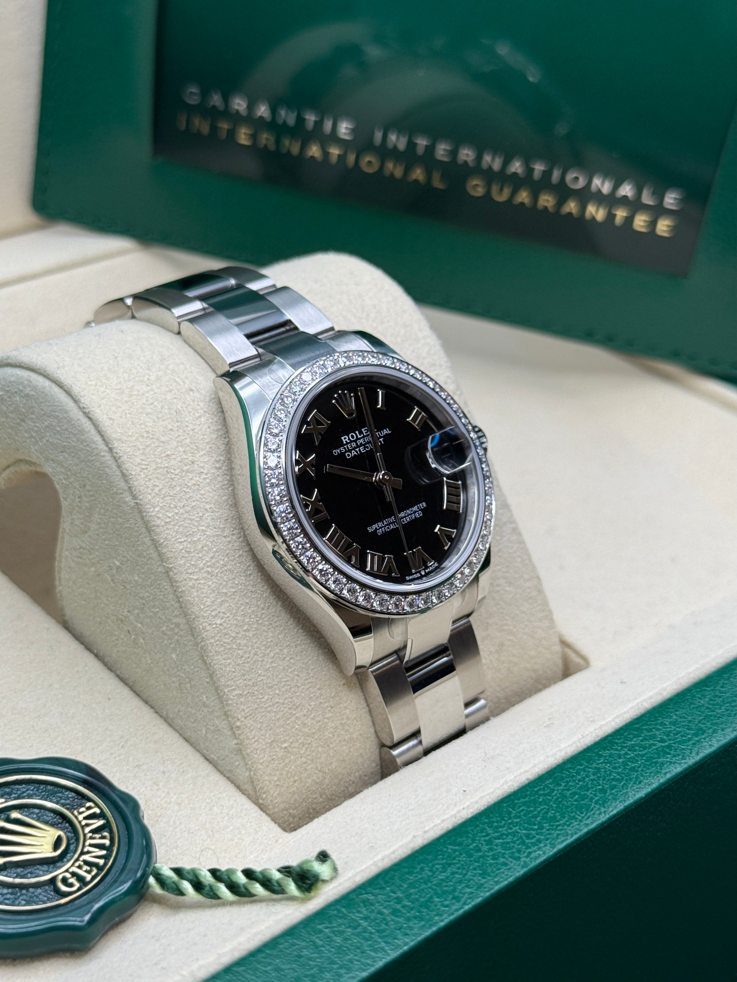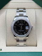 Oystersteel | Oyster Bracelet | Bright Black Roman Dial | Diamond Set Bezel | 31.0mm