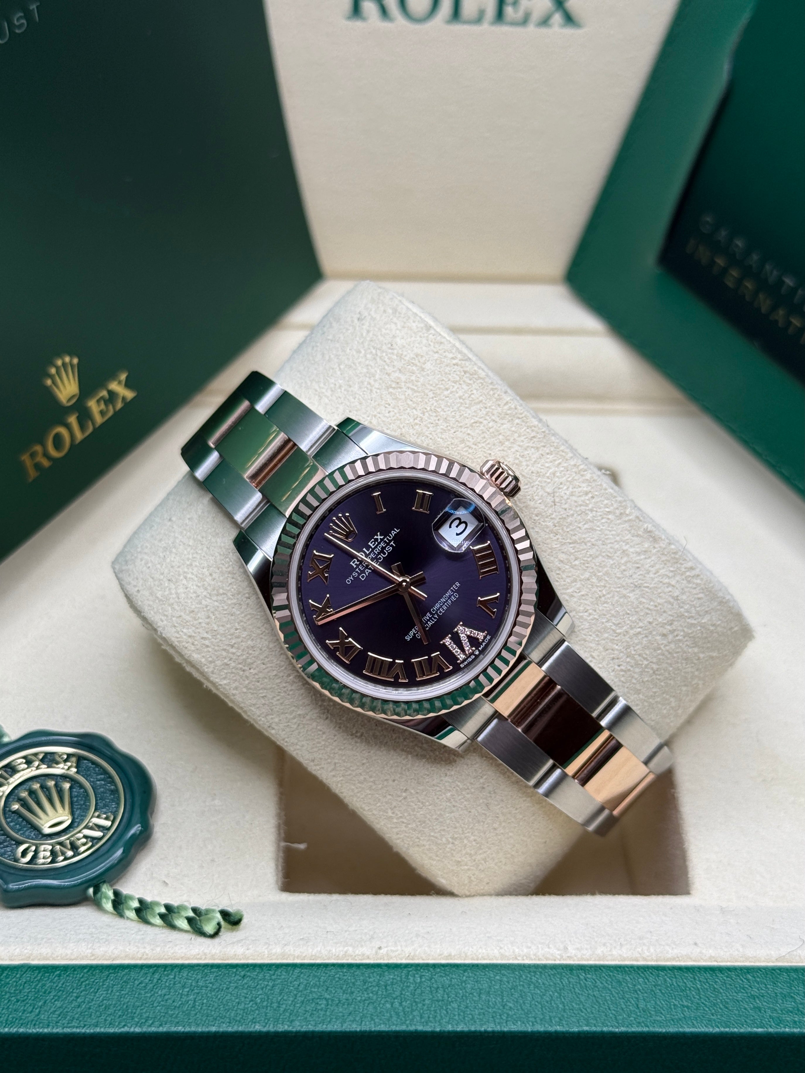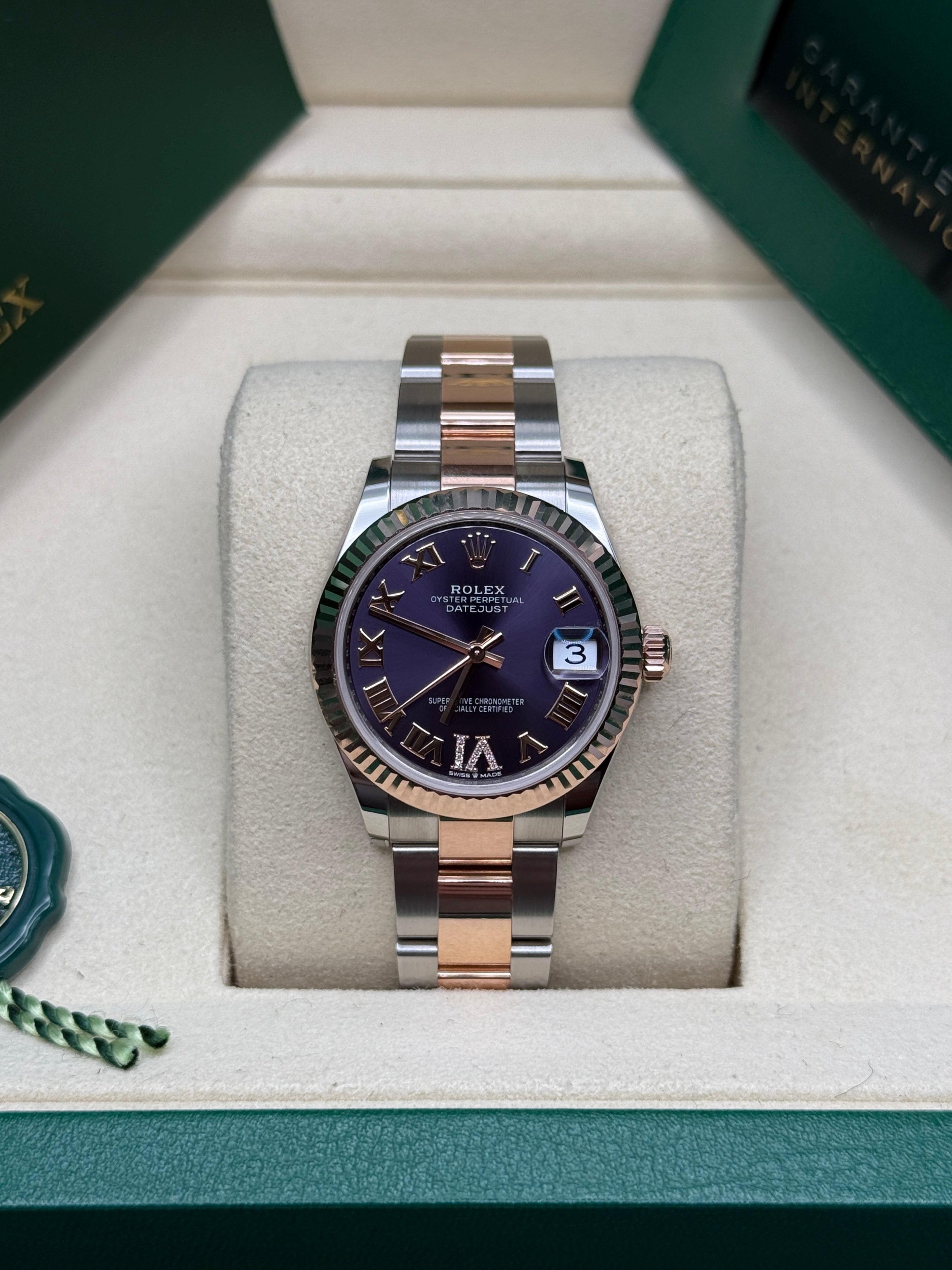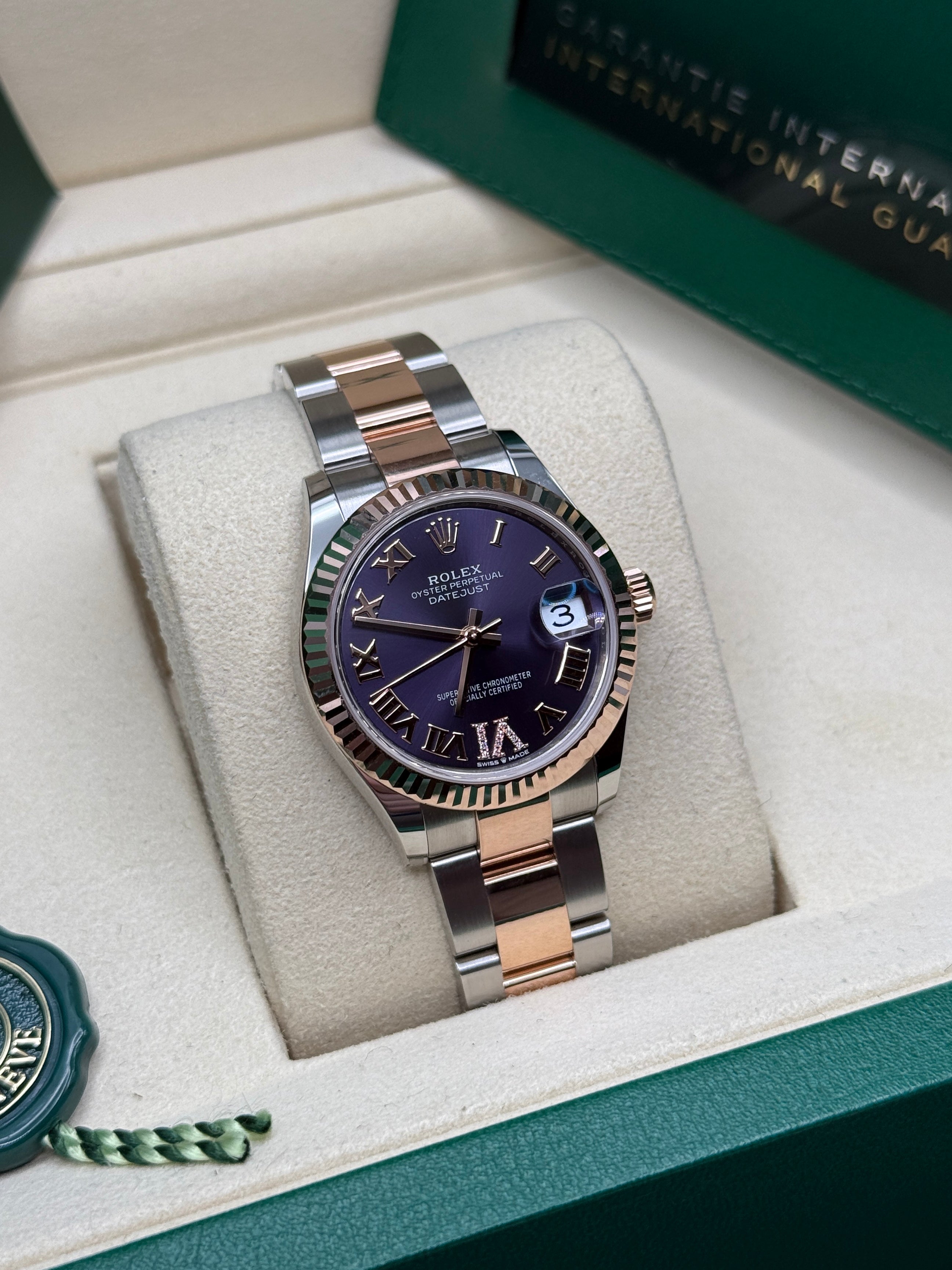 Datejust 31 Everose Gold Two-Tone Aubergine Roman Diamond