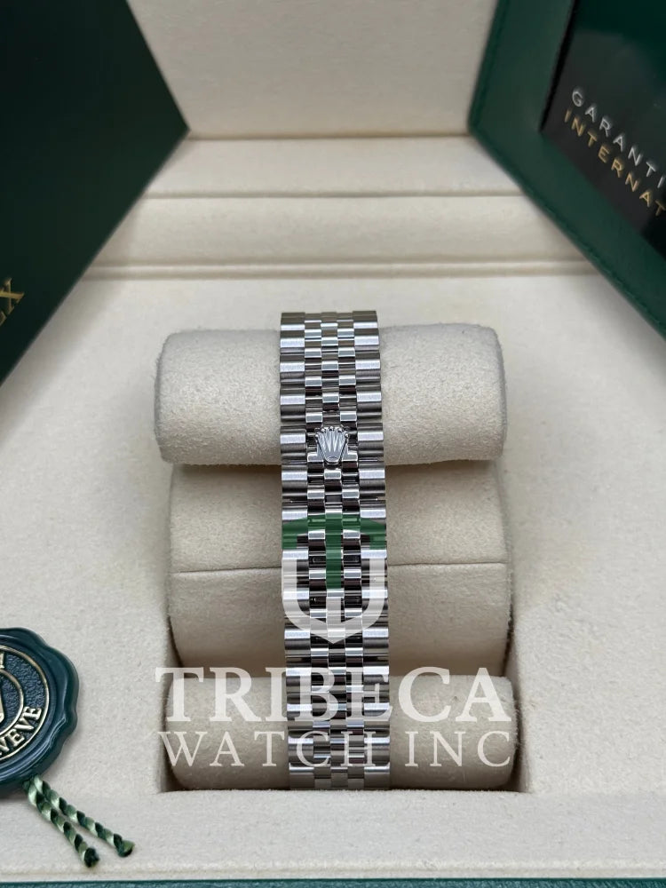 Rolex’s Datejust is the archetype of the classic watch thanks to functions and aesthetics that never go out of fashion. Launched in 1945, it was the first self-winding waterproof chronometer wristwatch to display the date in a window at 3 o’clock on the dial, and consolidated all the major innovations that Rolex had contributed to the modern wristwatch until then. The Datejust has spanned eras while retaining the enduring aesthetic characteristics that make it so instantly recognizable. A paragon of robustness and elegance, the Oyster case of the Datejust 31 is guaranteed waterproof to a depth of 100 metres (330 feet) and is equipped with calibre 2236, a movement entirely developed and manufactured by Rolex.