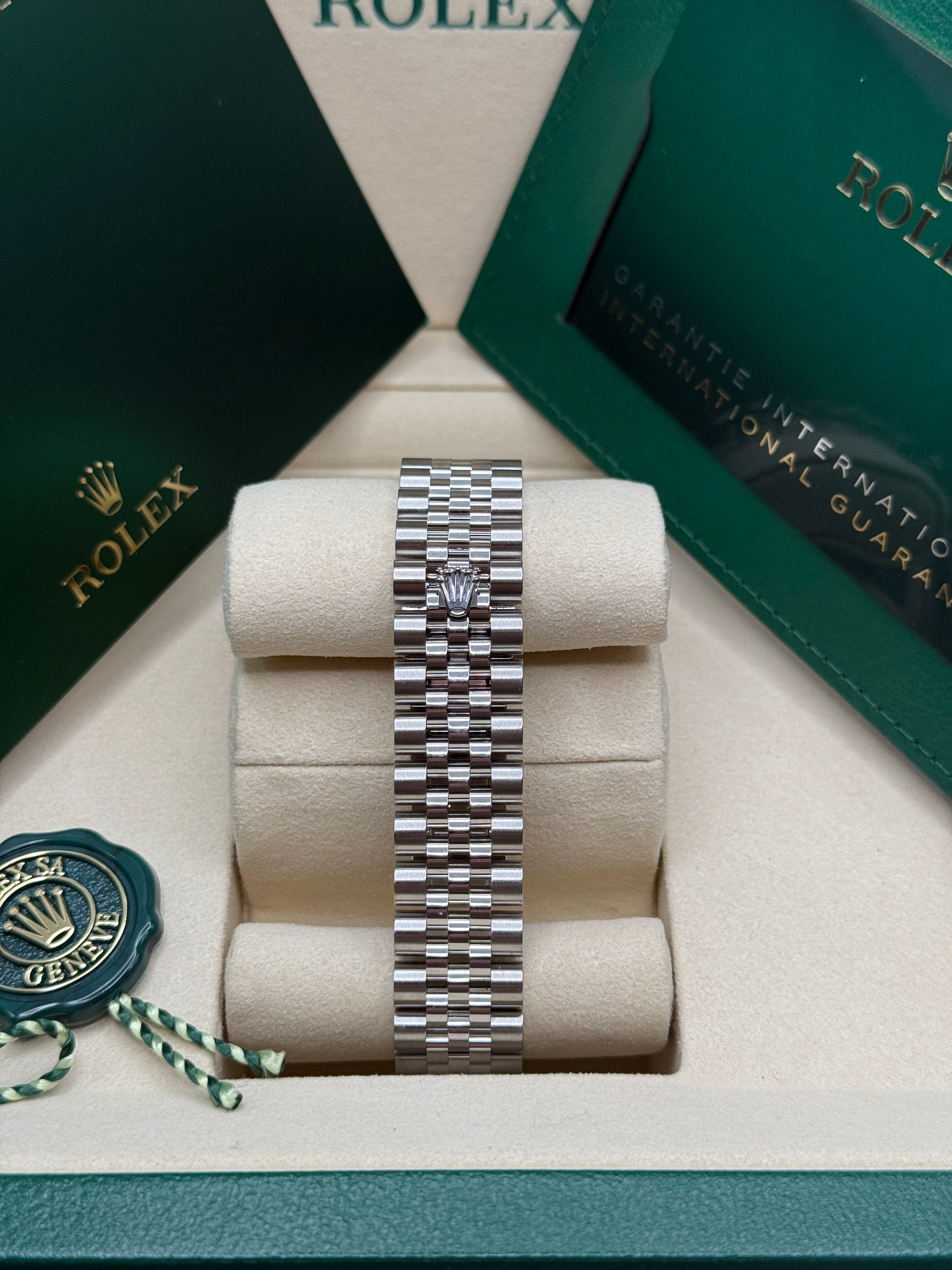 Rolex’s Datejust is the archetype of the classic watch thanks to functions and aesthetics that never go out of fashion. Launched in 1945, it was the first self-winding waterproof chronometer wristwatch to display the date in a window at 3 o’clock on the dial, and consolidated all the major innovations that Rolex had contributed to the modern wristwatch until then. The Datejust has spanned eras while retaining the enduring aesthetic characteristics that make it so instantly recognizable. A paragon of robustness and elegance, the Oyster case of the Datejust 31 is guaranteed waterproof to a depth of 100 meters (330 feet) and is equipped with calibre 2236, a movement entirely developed and manufactured by Rolex.