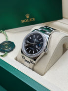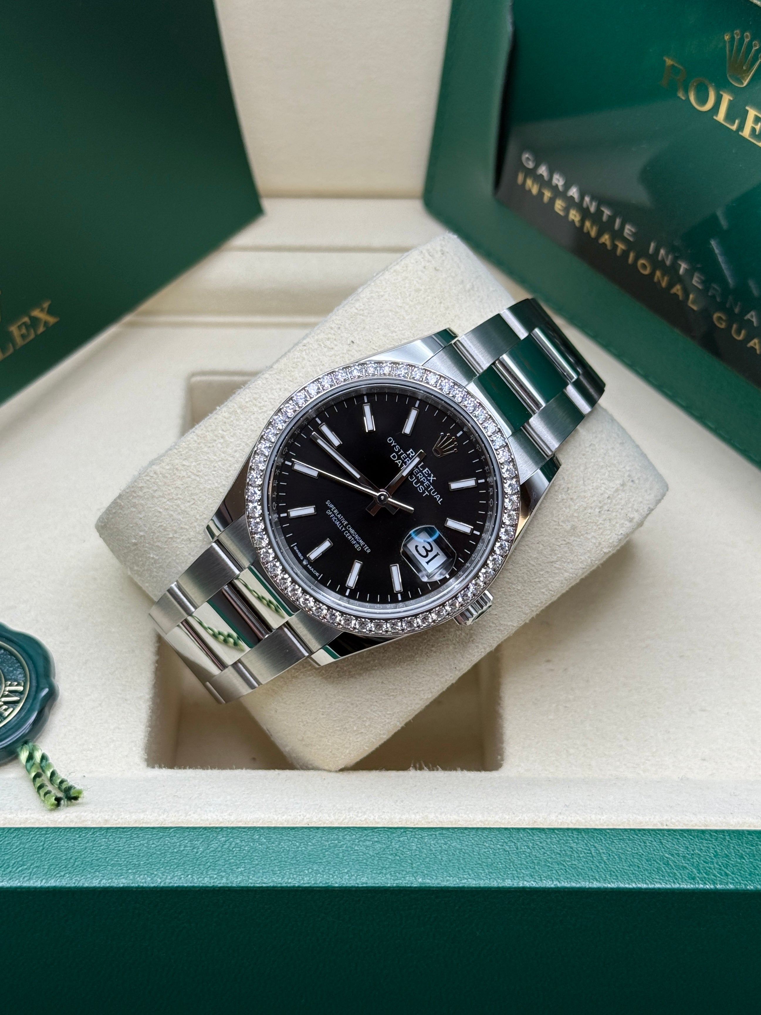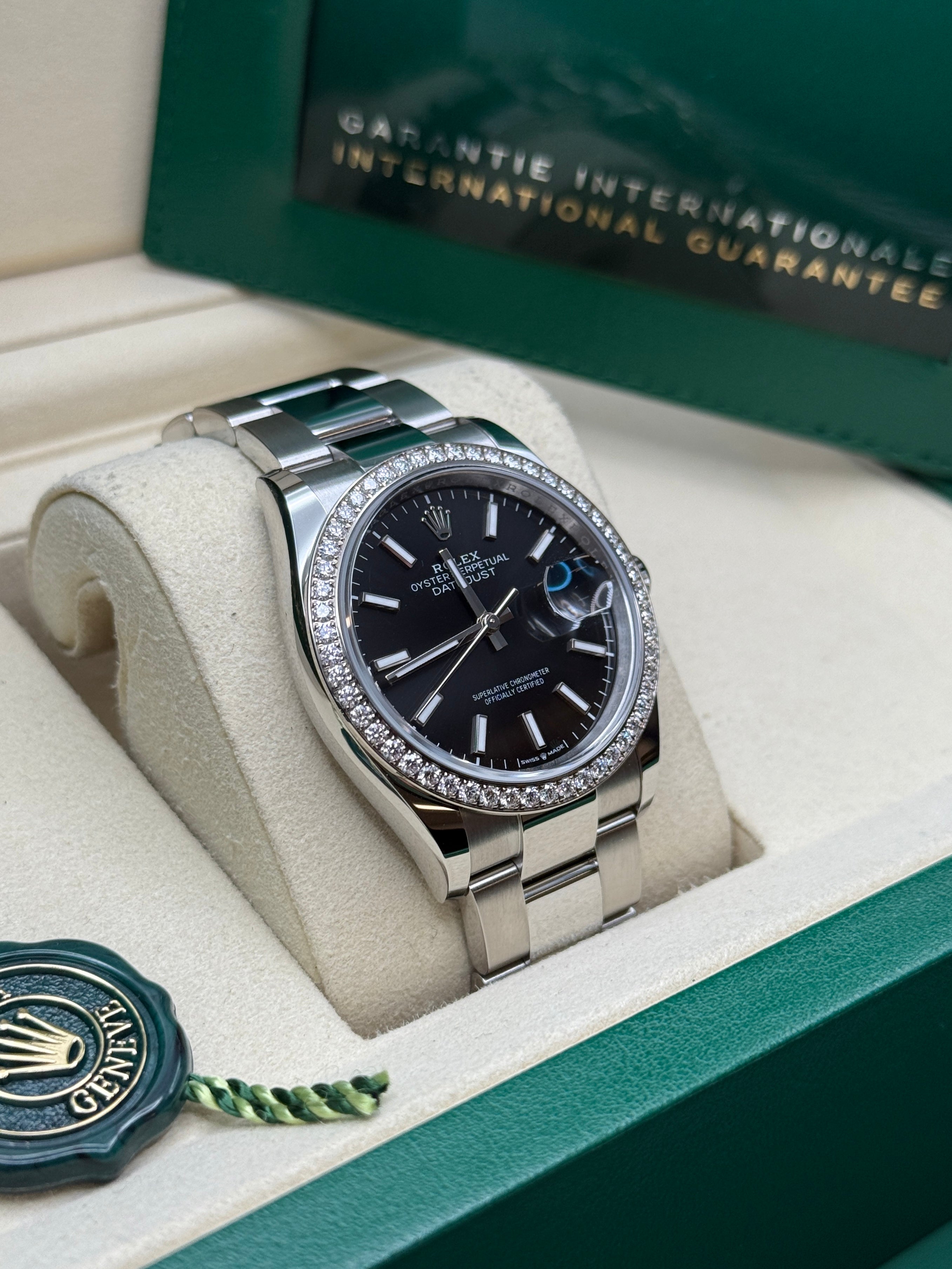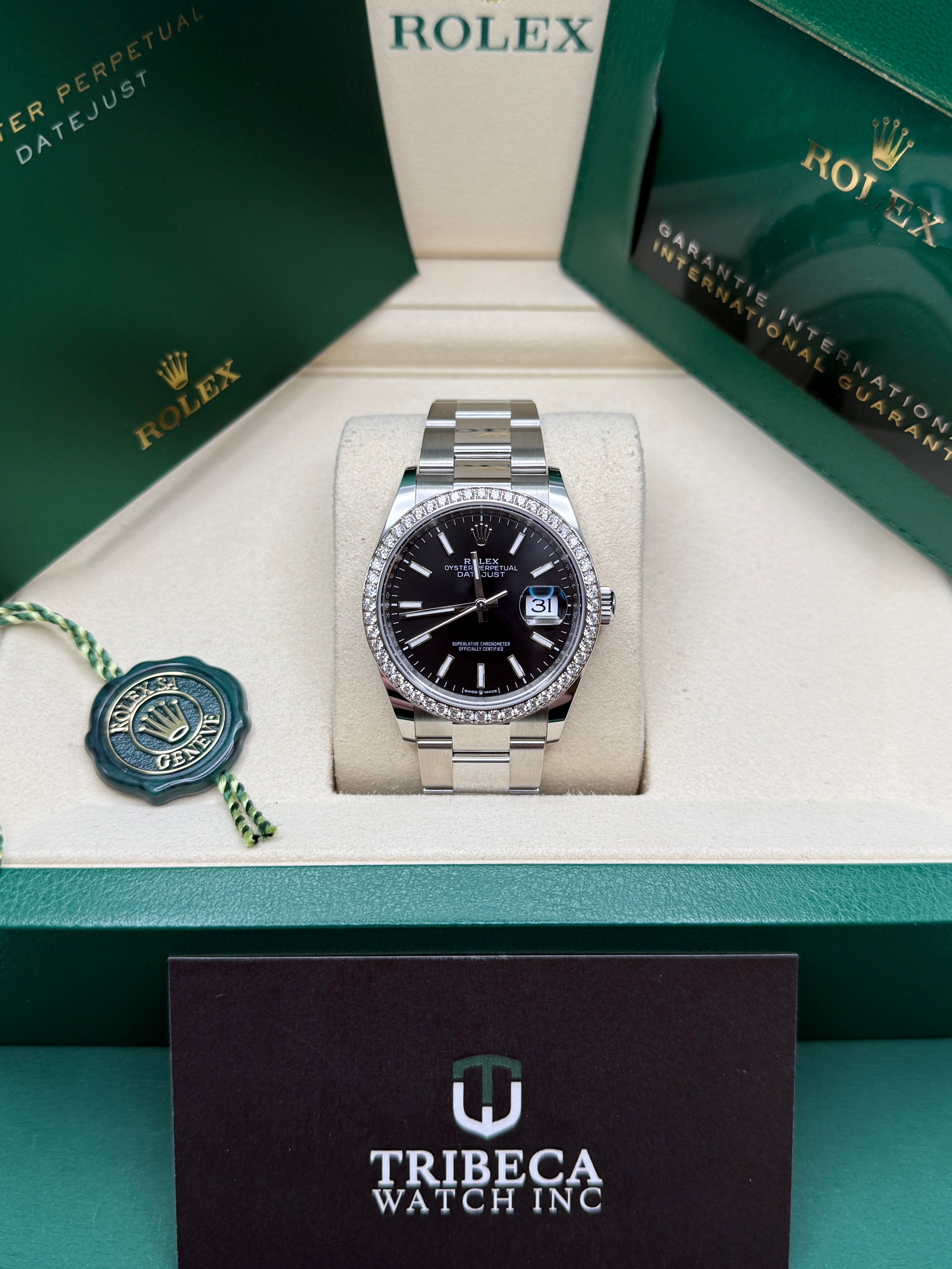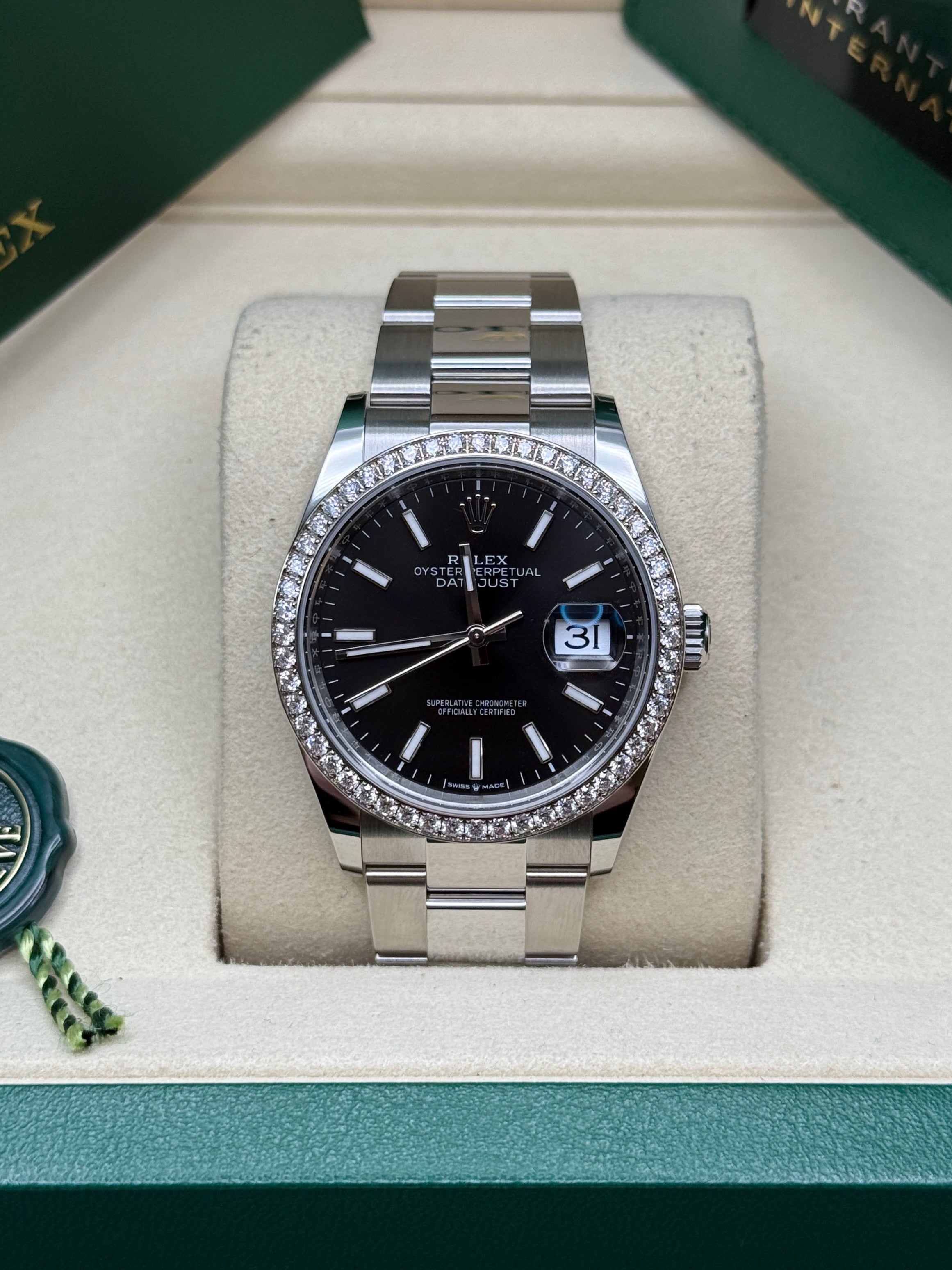 Rolex’s Datejust is the archetype of the classic watch thanks to functions and aesthetics that never go out of fashion. Launched in 1945, it was the first self-winding waterproof chronometer wristwatch to display the date in a window at 3 o’clock on the dial, and consolidated all the major innovations that Rolex had contributed to the modern wristwatch until then. The Datejust has spanned eras while retaining the enduring aesthetic characteristics that make it so instantly recognizable. A paragon of robustness and elegance, the Oyster case of the Datejust 36 is guaranteed waterproof to a depth of 100 meters (330 feet) and is equipped with calibre 3235, a movement entirely developed and manufactured by Rolex.