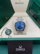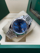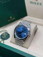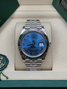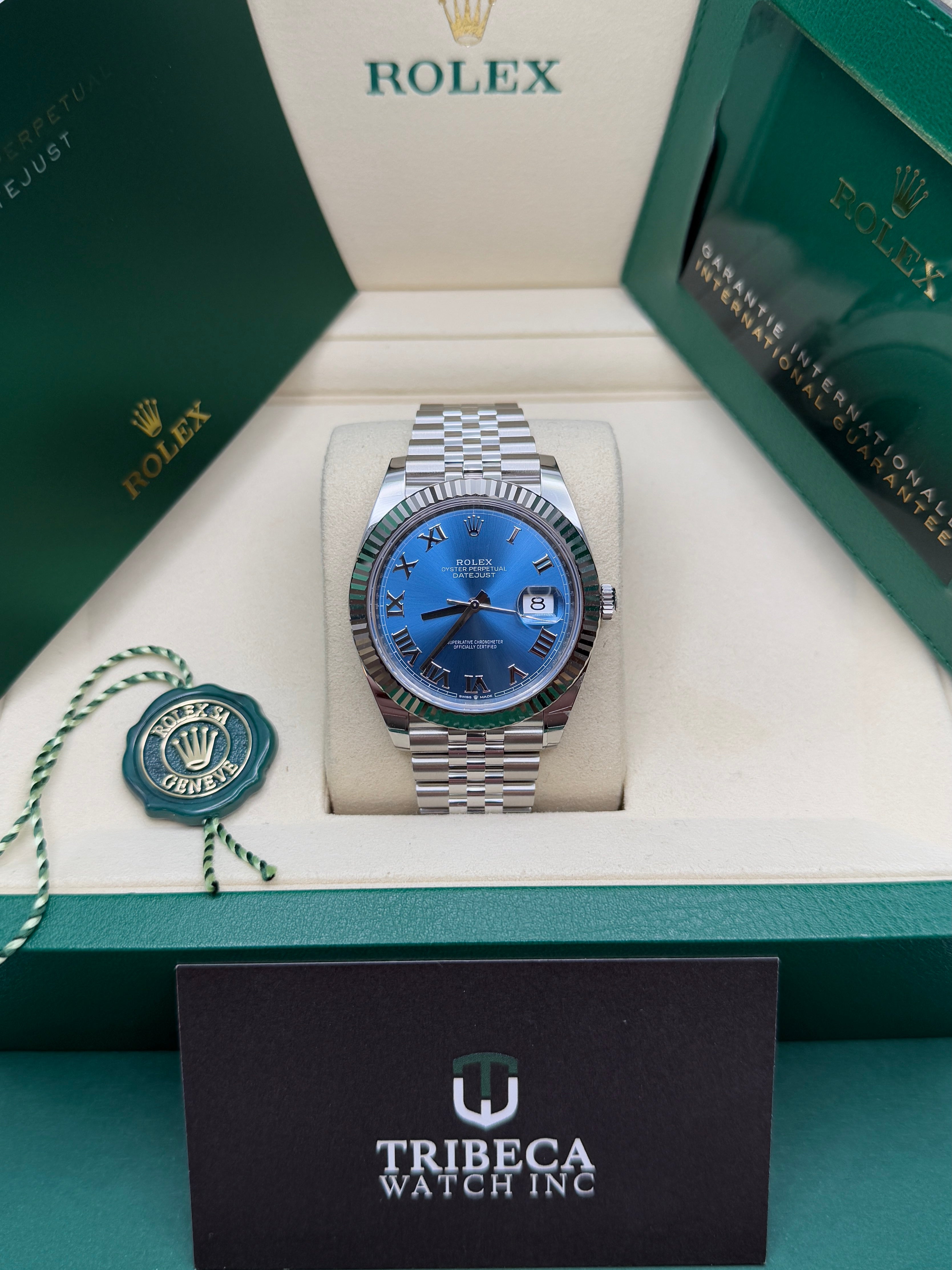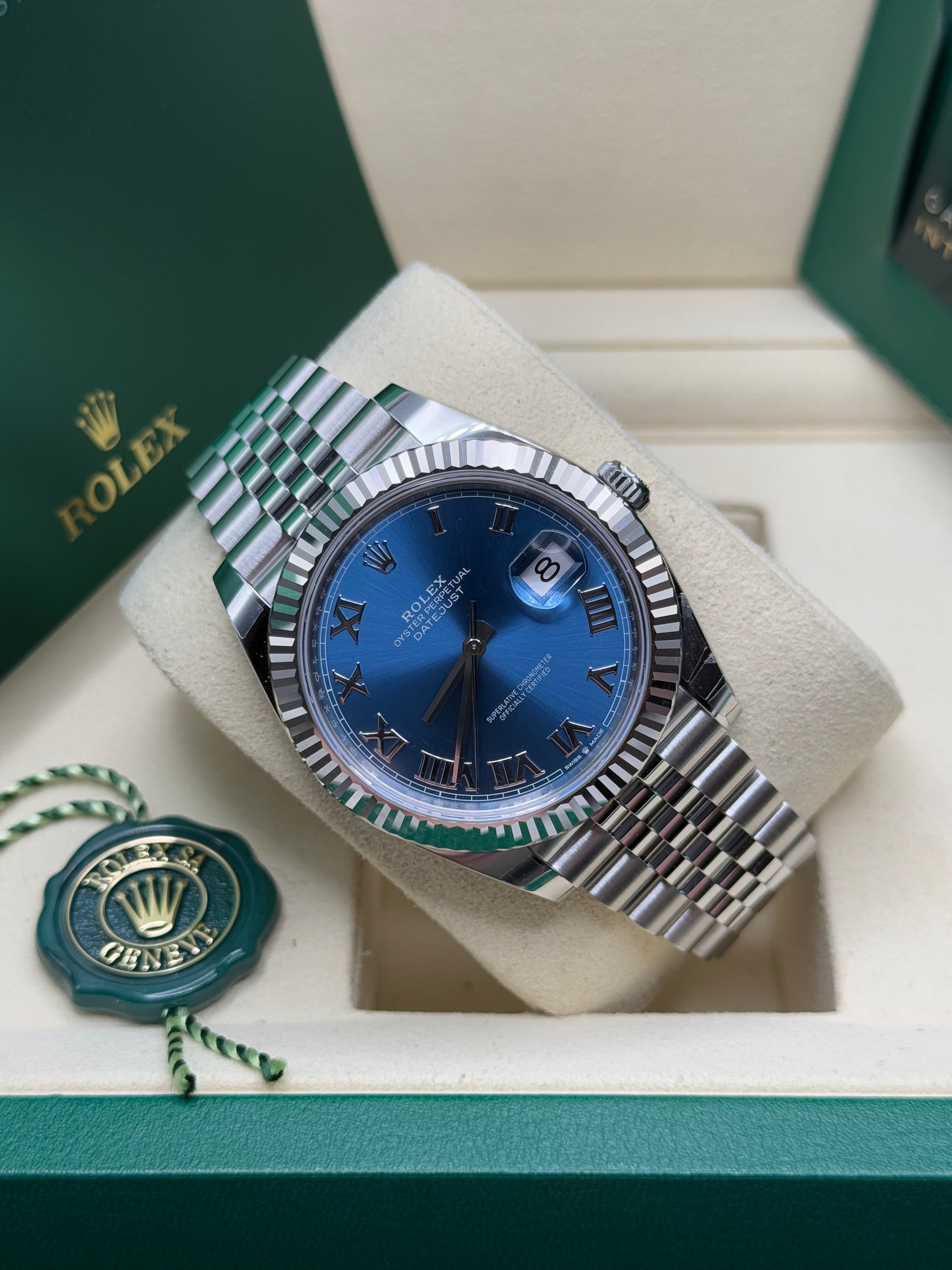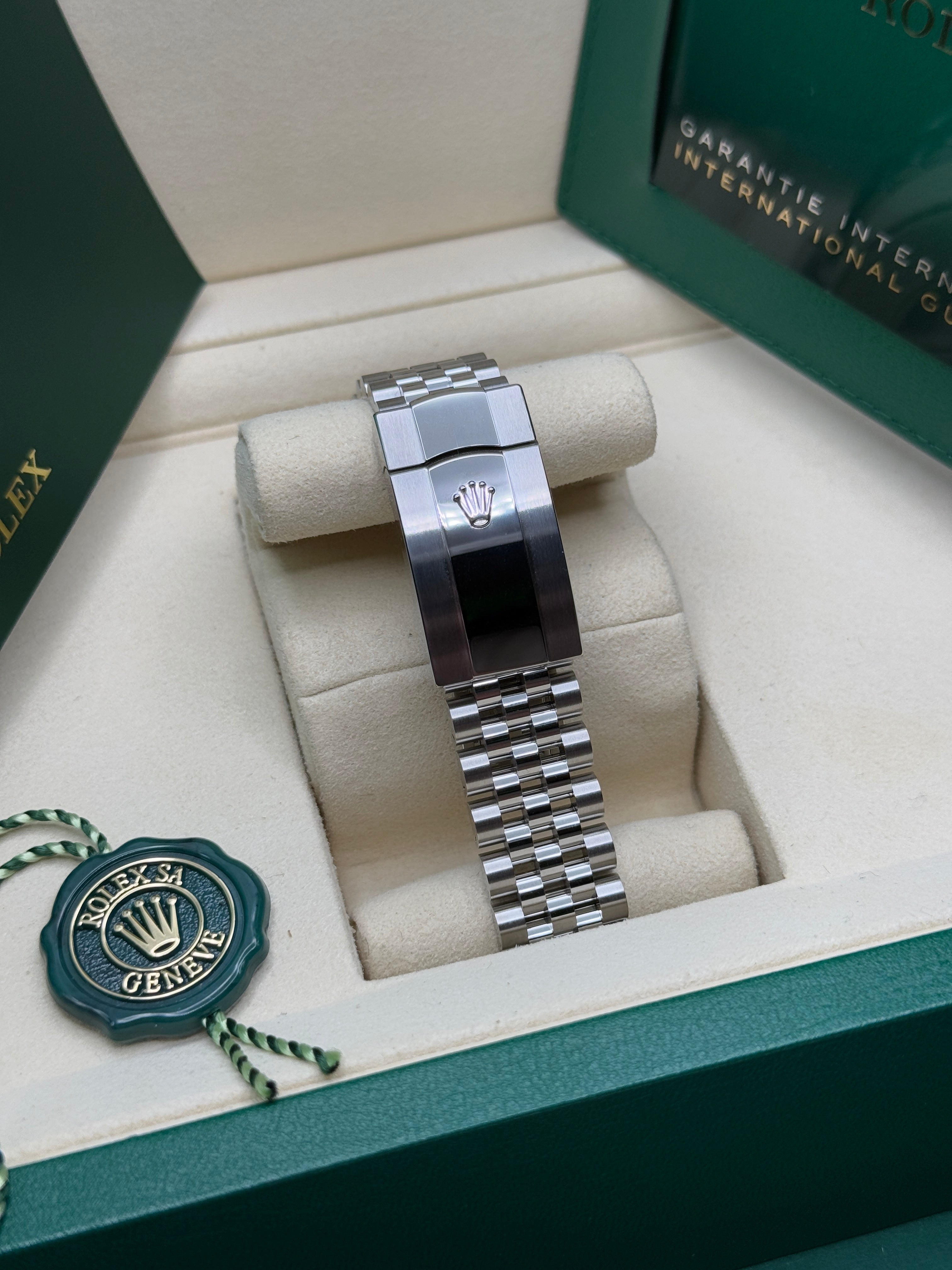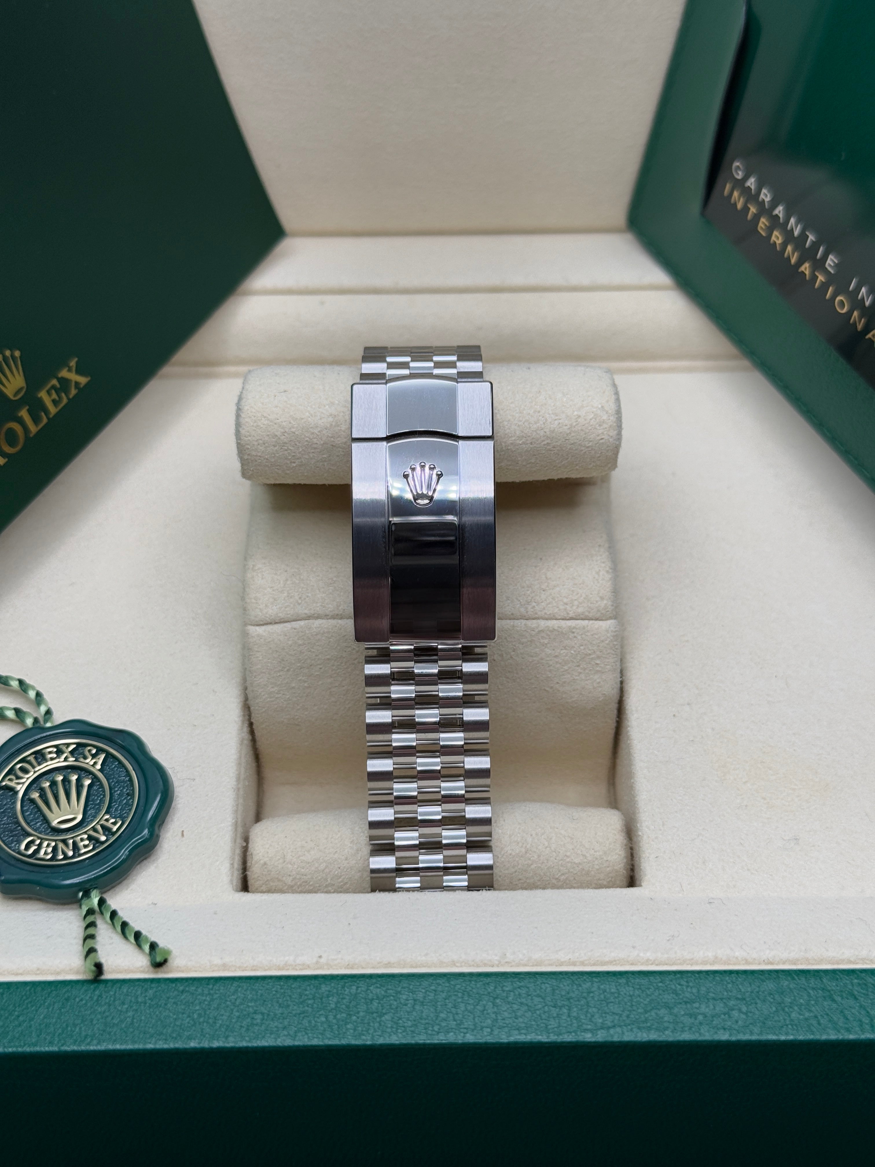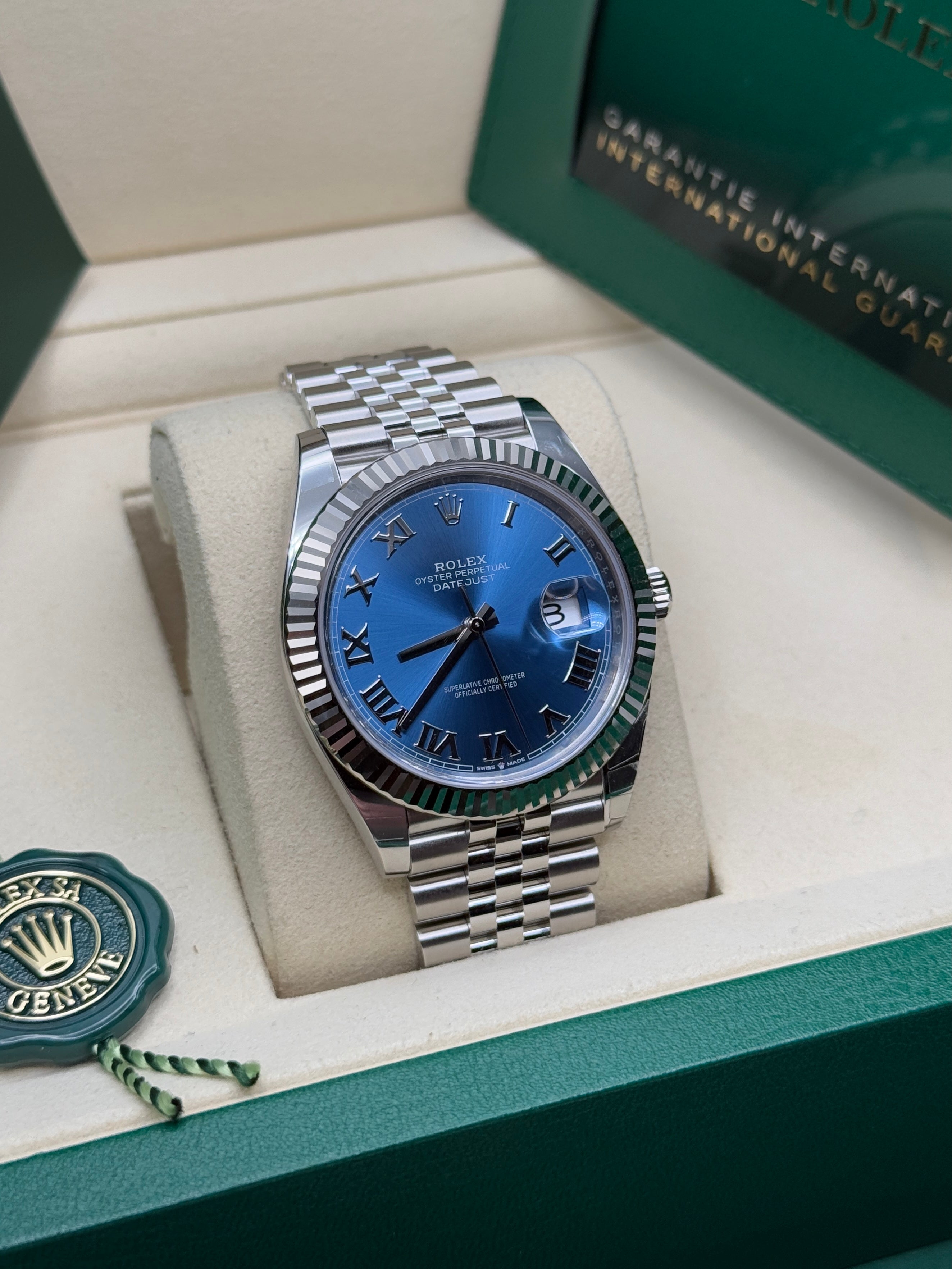 Rolex’s Datejust is the archetype of the classic watch thanks to functions and aesthetics that never go out of fashion. Launched in 1945, it was the first self-winding waterproof chronometer wristwatch to display the date in a window at 3 o’clock on the dial, and consolidated all the major innovations that Rolex had contributed to the modern wristwatch until then. The Datejust has spanned eras while retaining the enduring aesthetic characteristics that make it so instantly recognizable. A paragon of robustness and elegance, the Oyster case of the Datejust 41 is guaranteed waterproof to a depth of 100 meters (330 feet) and is equipped with calibre 3235, a movement entirely developed and manufactured by Rolex.