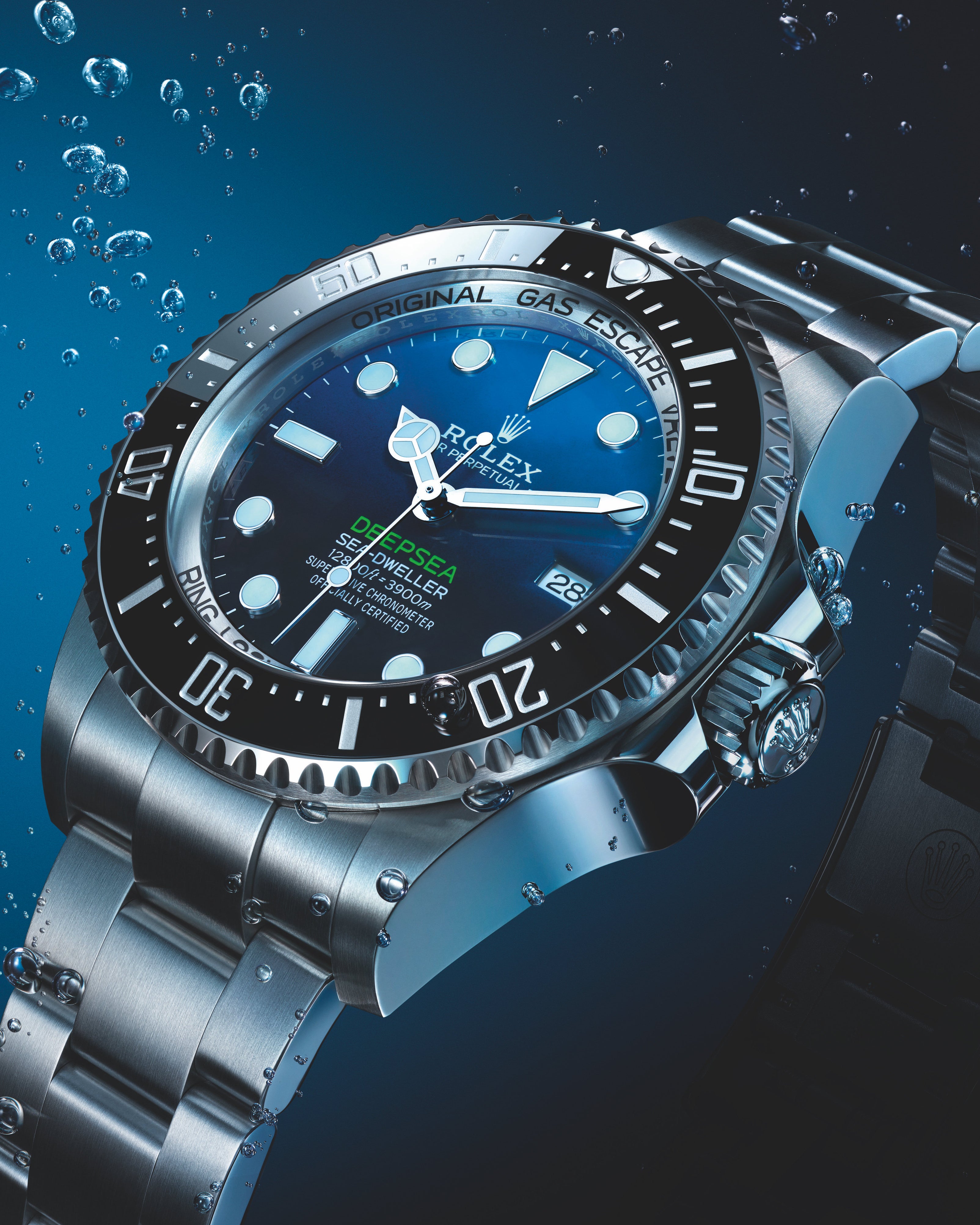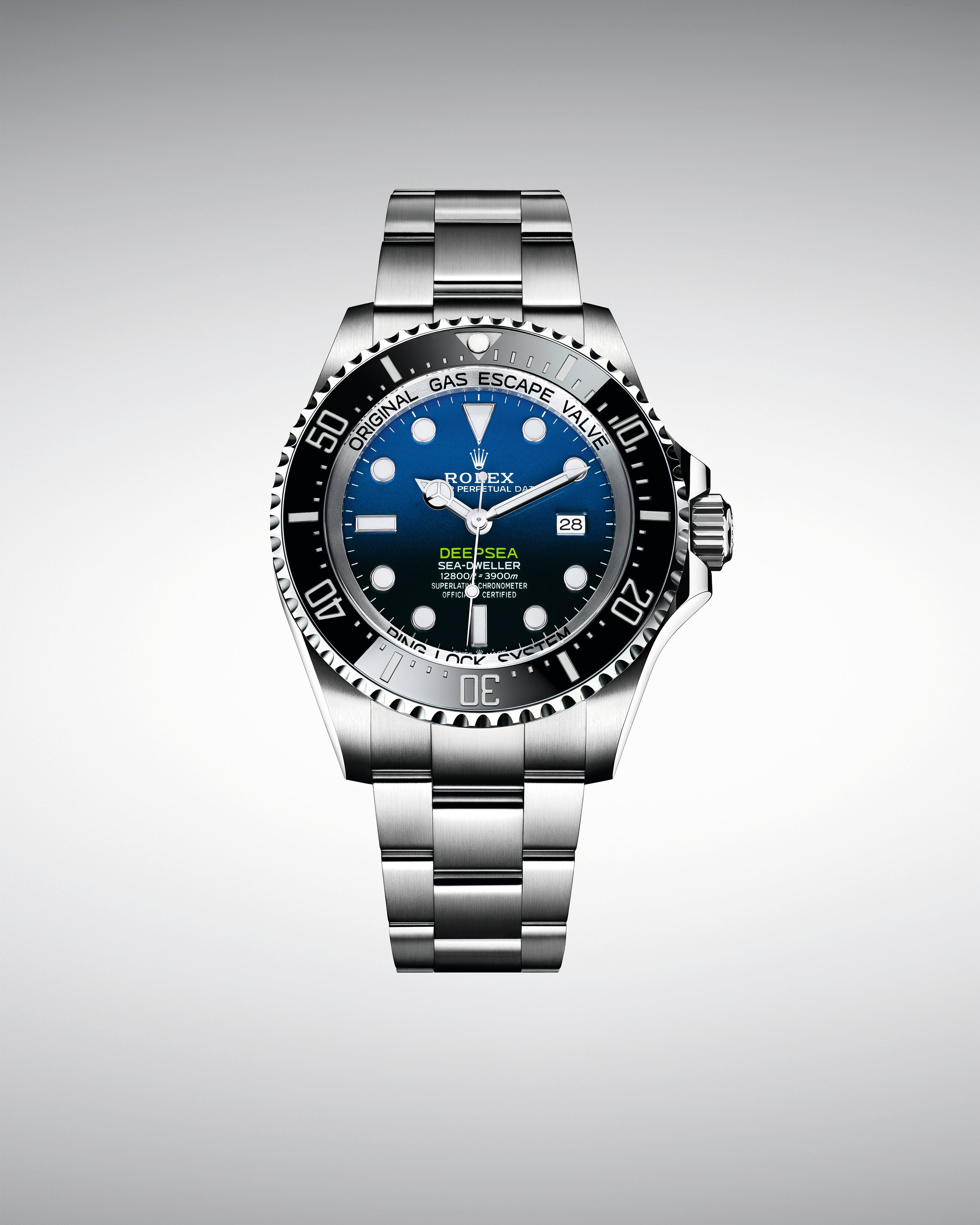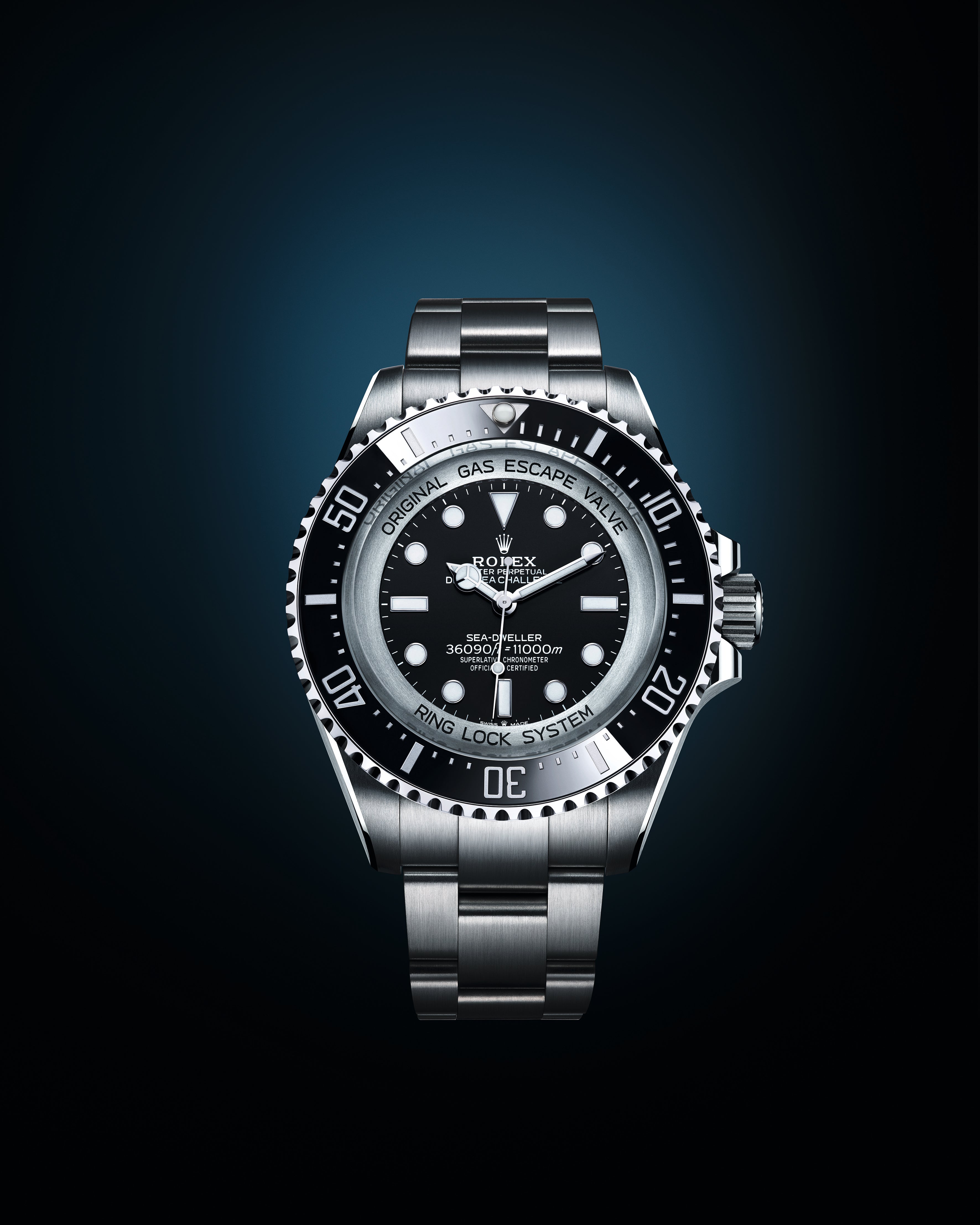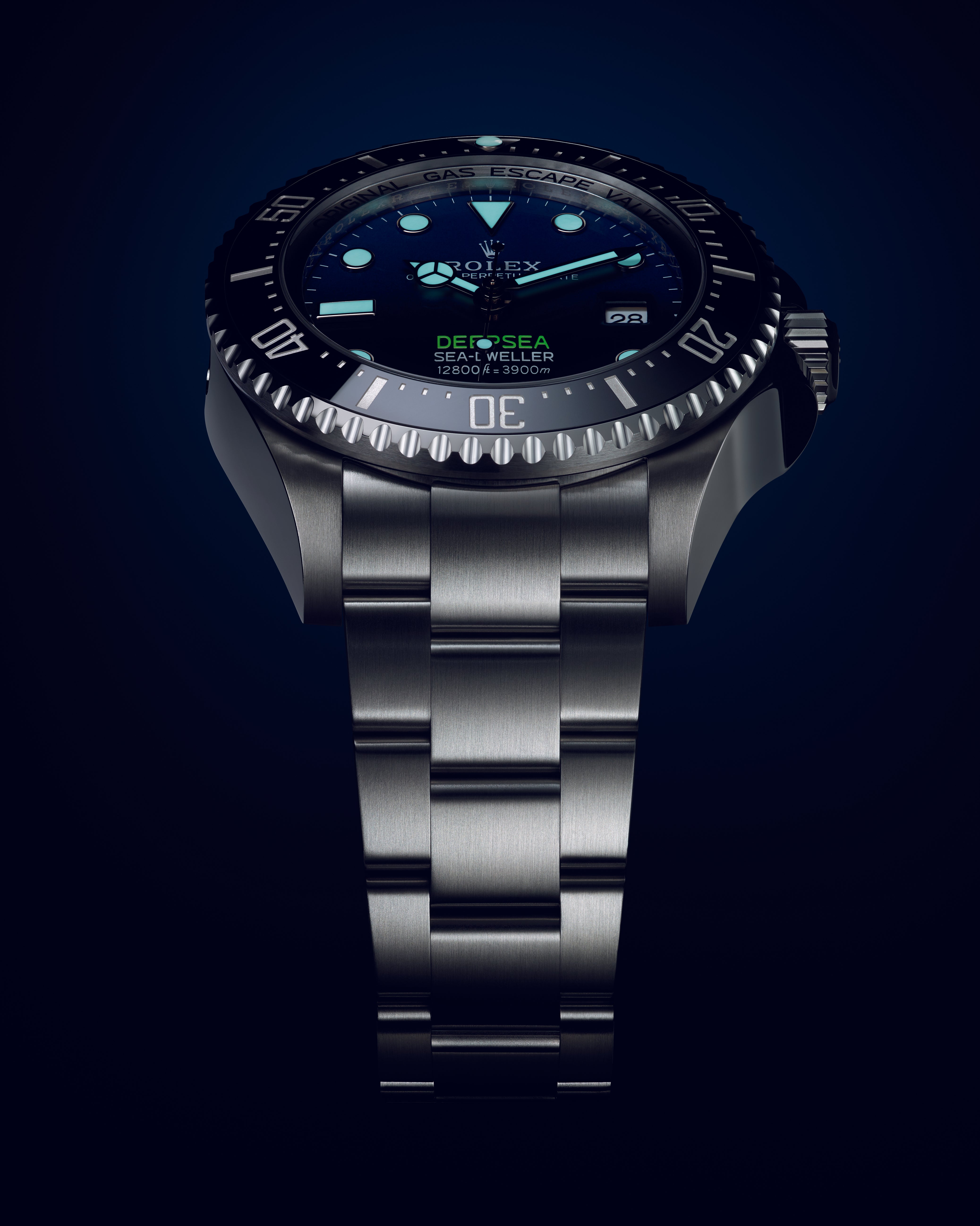 The Oyster Perpetual Rolex Deepsea fully illustrates the innovative ability of Rolex. At its launch, this deep-sea divers’ watch, waterproof to a depth of 3,900 metres (12,800 feet), inaugurated the Ringlock system – a unique case architecture that allows it to withstand the pressure exerted at this extreme depth.