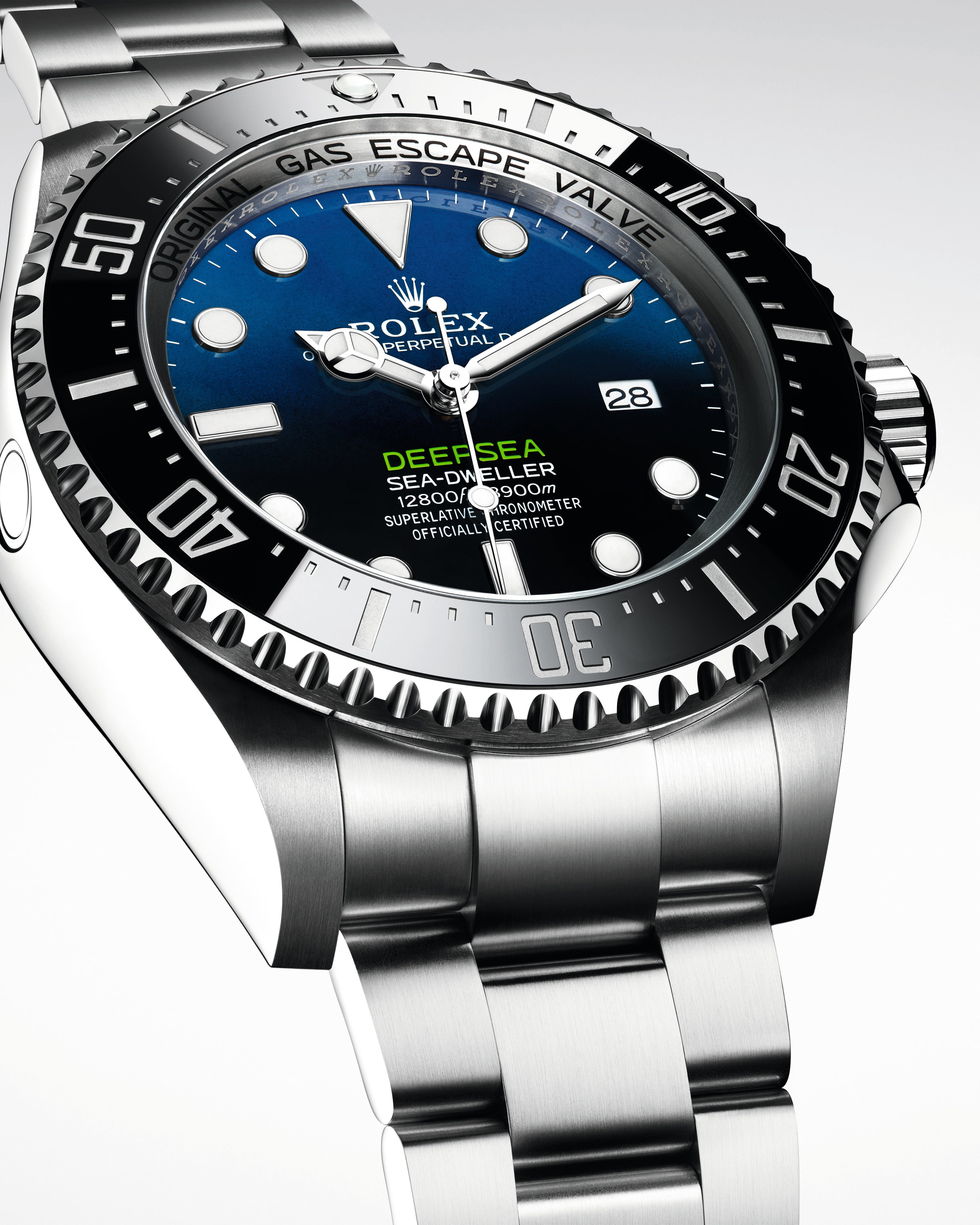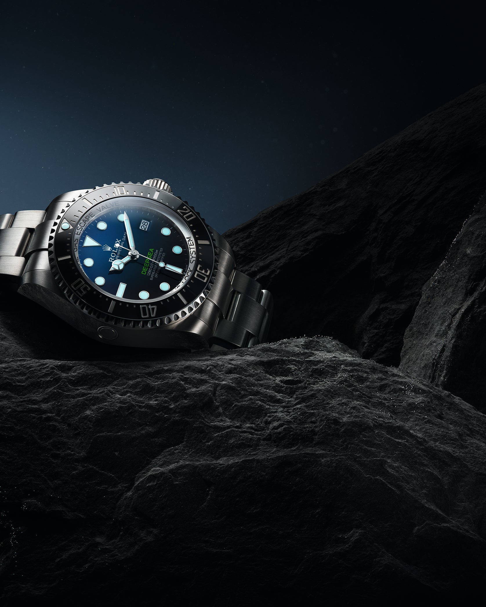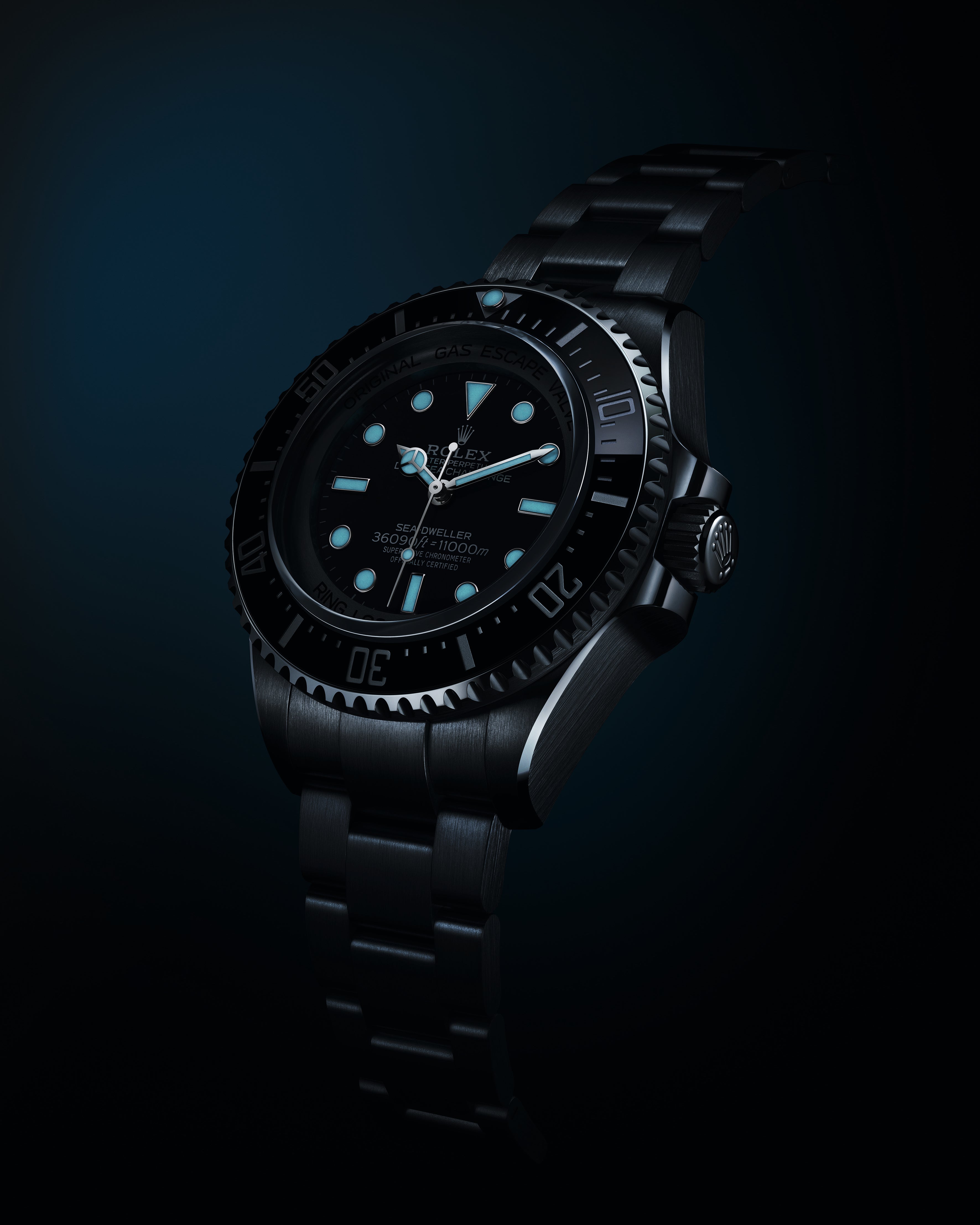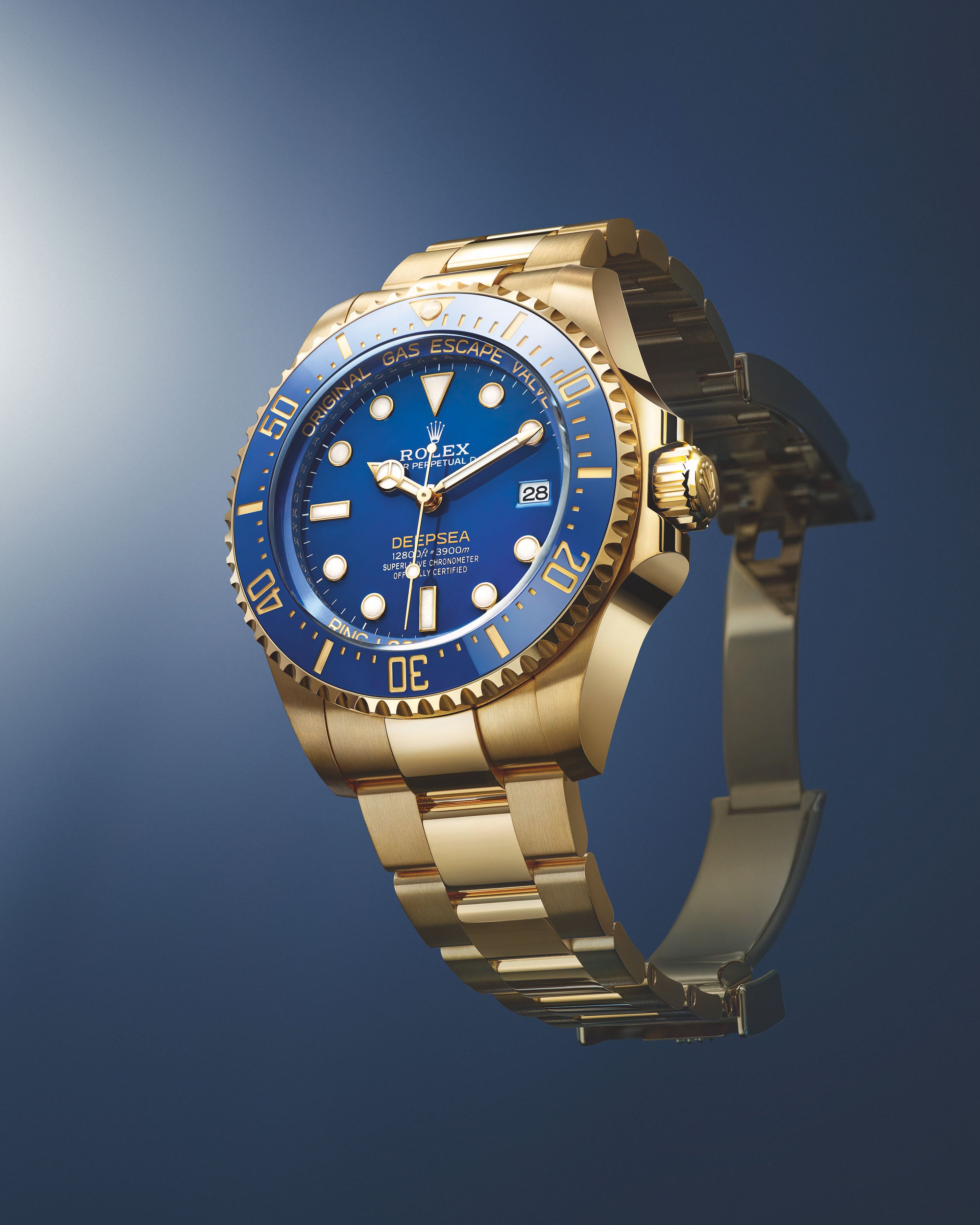 The Oyster Perpetual Rolex Deepsea fully illustrates the innovative ability of Rolex. At its launch, this deep-sea divers’ watch, waterproof to a depth of 3,900 metres (12,800 feet), inaugurated the Ringlock system – a unique case architecture that allows it to withstand the pressure exerted at this extreme depth.
