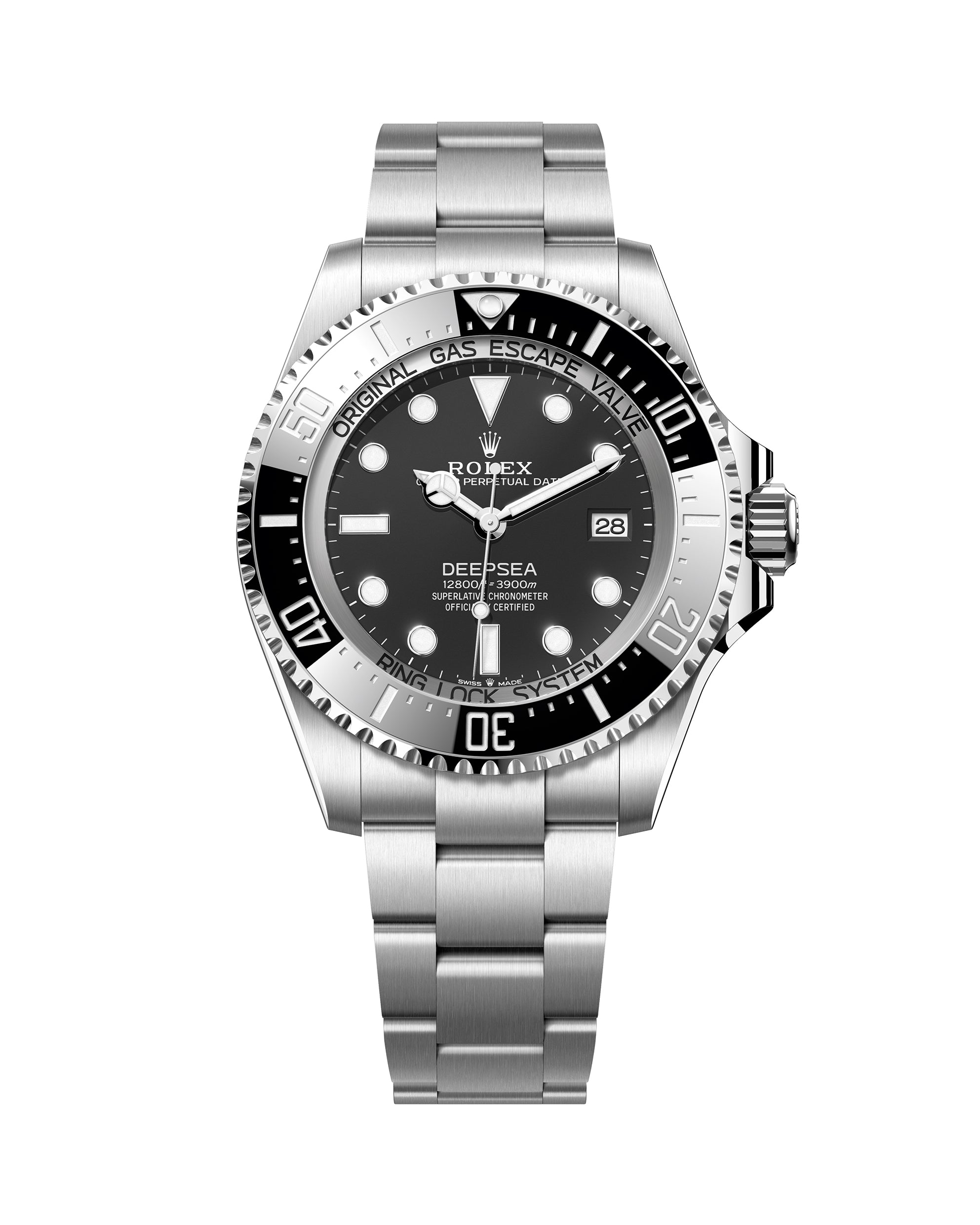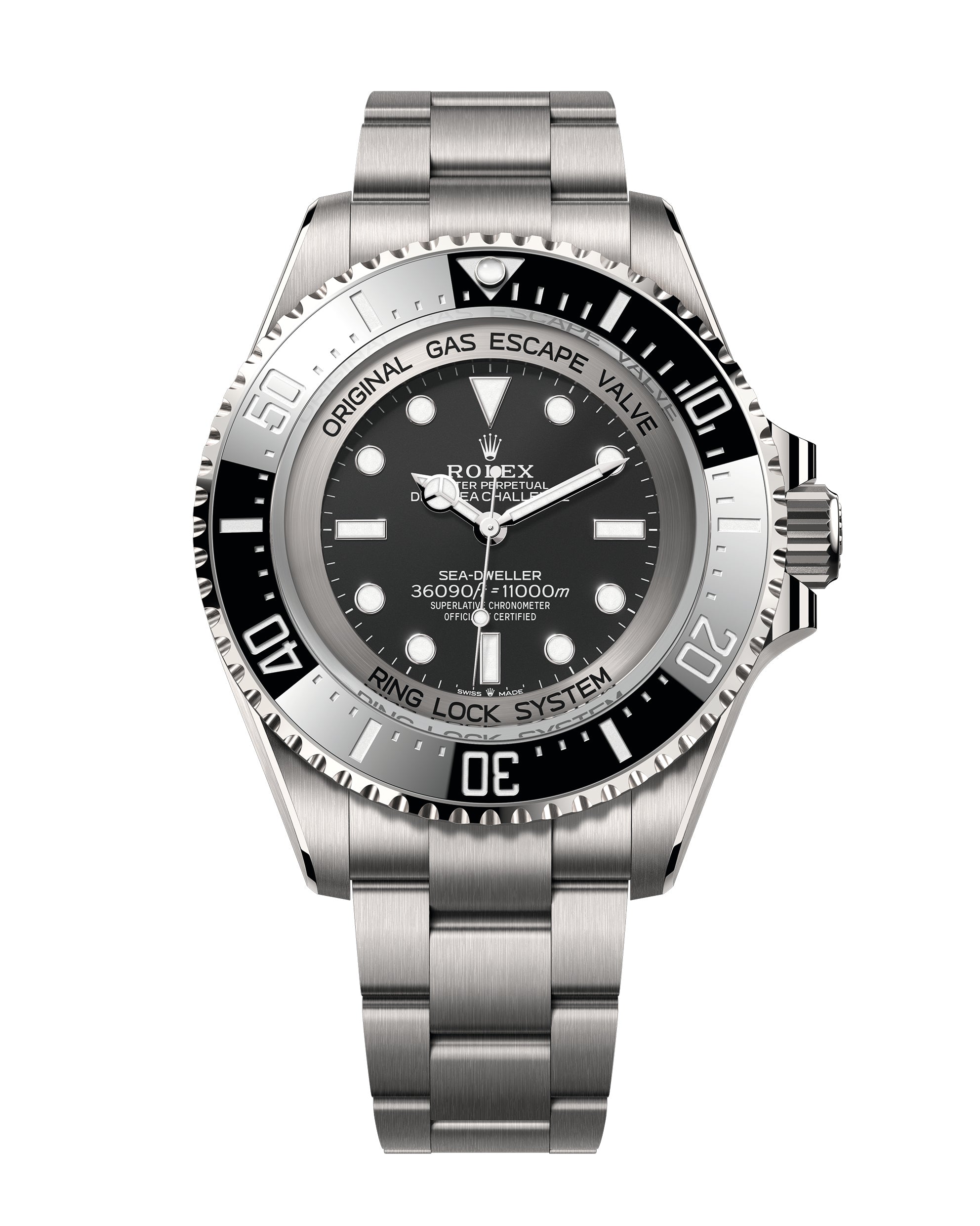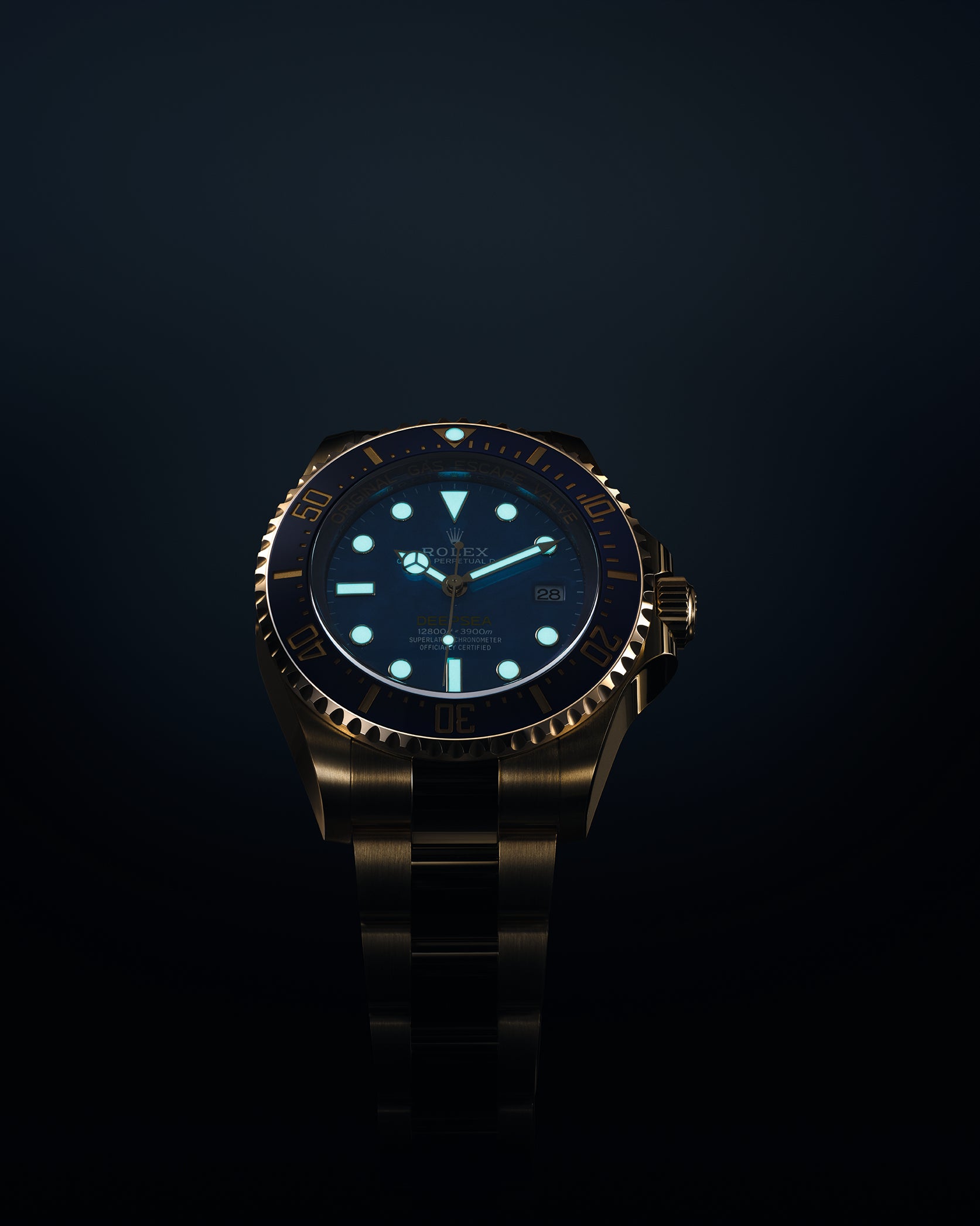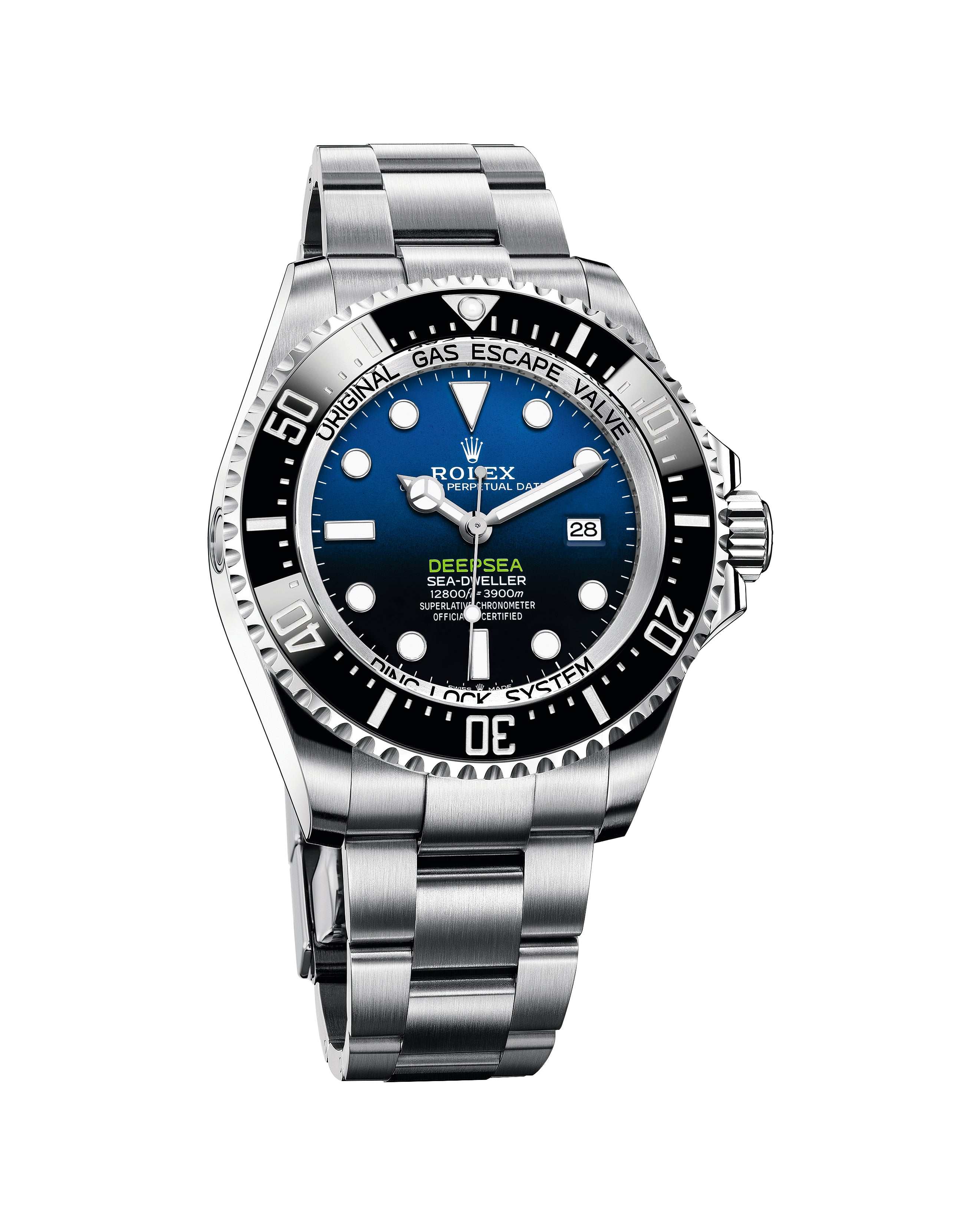The Oyster Perpetual Rolex Deepsea fully illustrates the innovative ability of Rolex. At its launch, this deep-sea divers’ watch, waterproof to a depth of 3,900 metres (12,800 feet), inaugurated the Ringlock system – a unique case architecture that allows it to withstand the pressure exerted at this extreme depth.