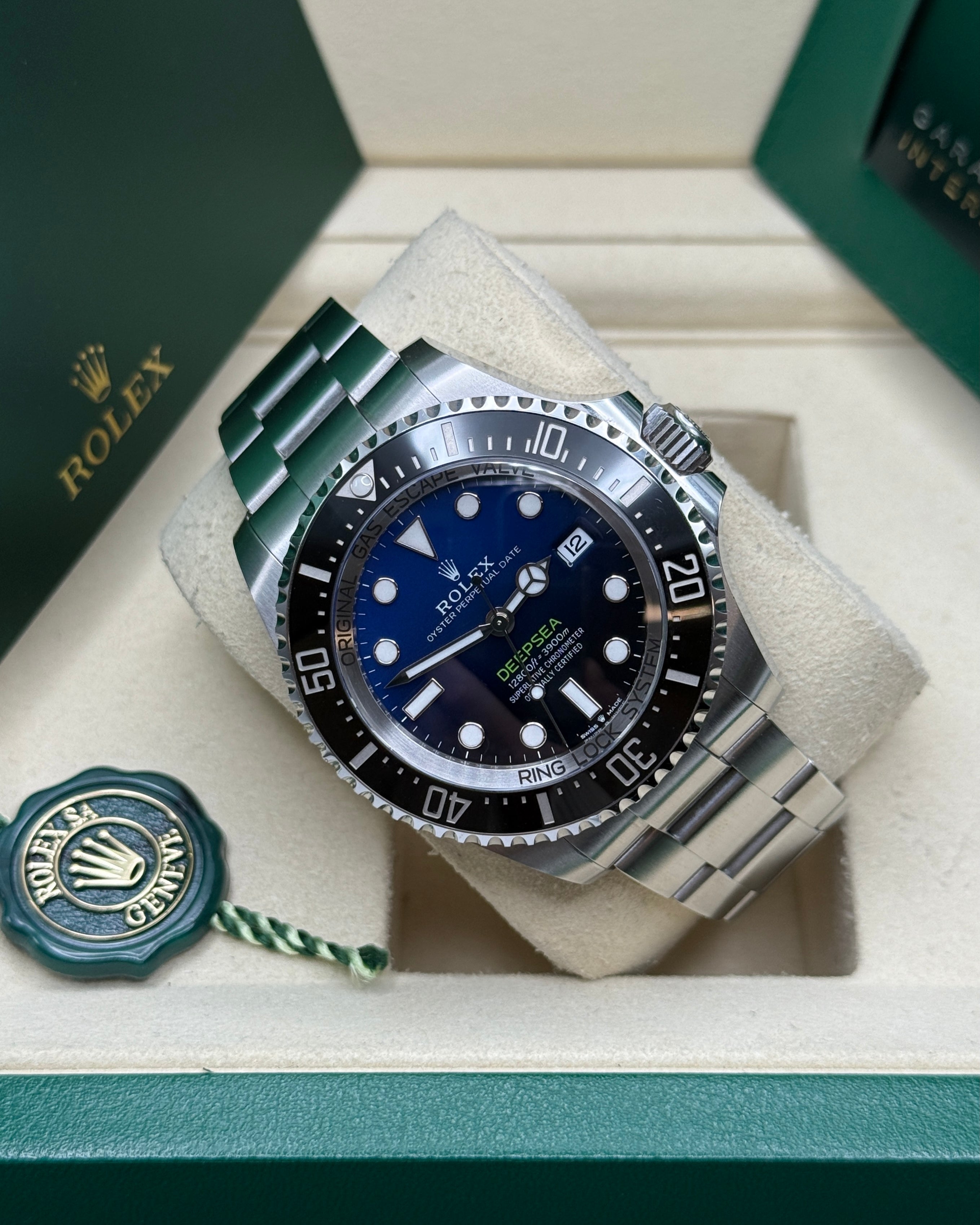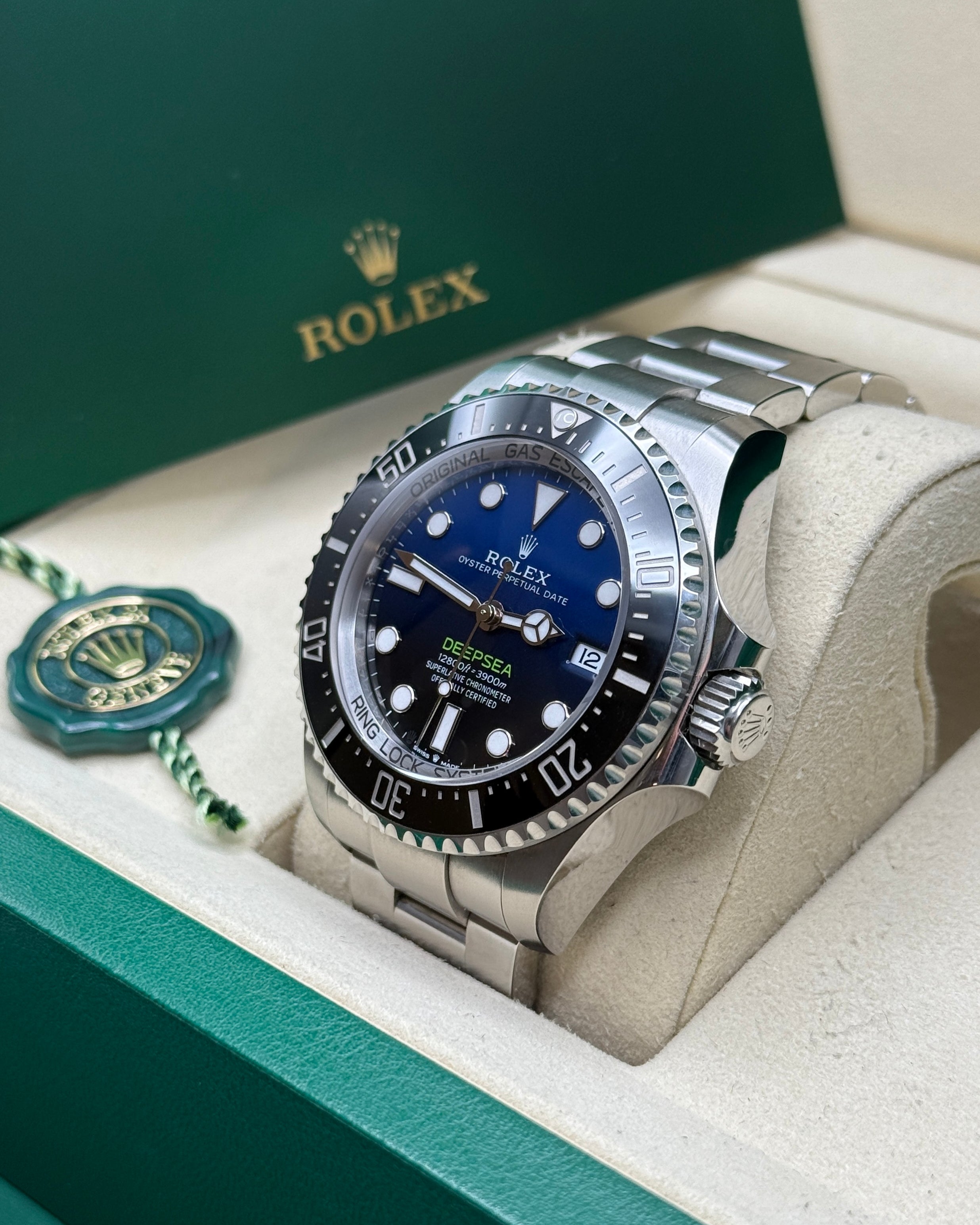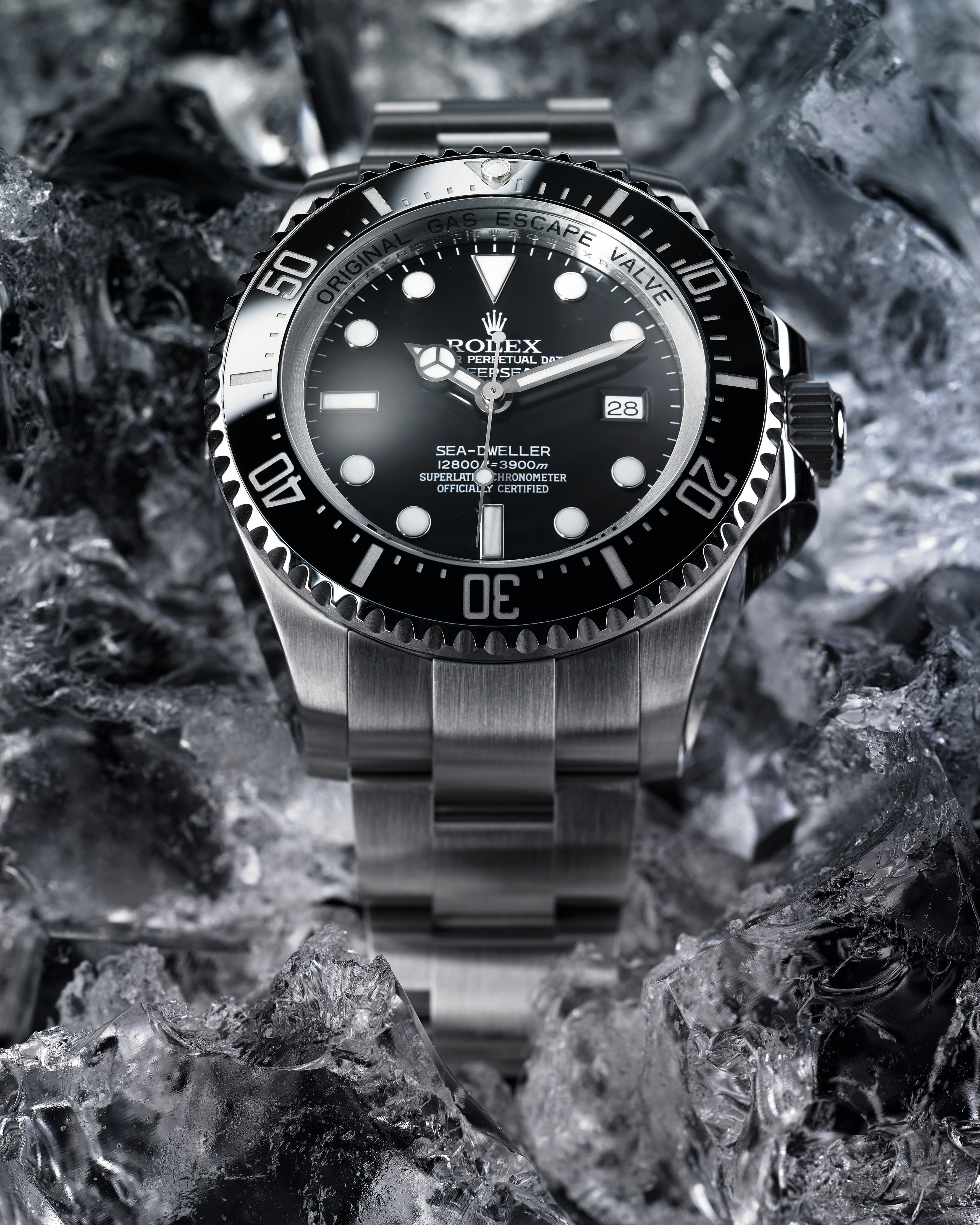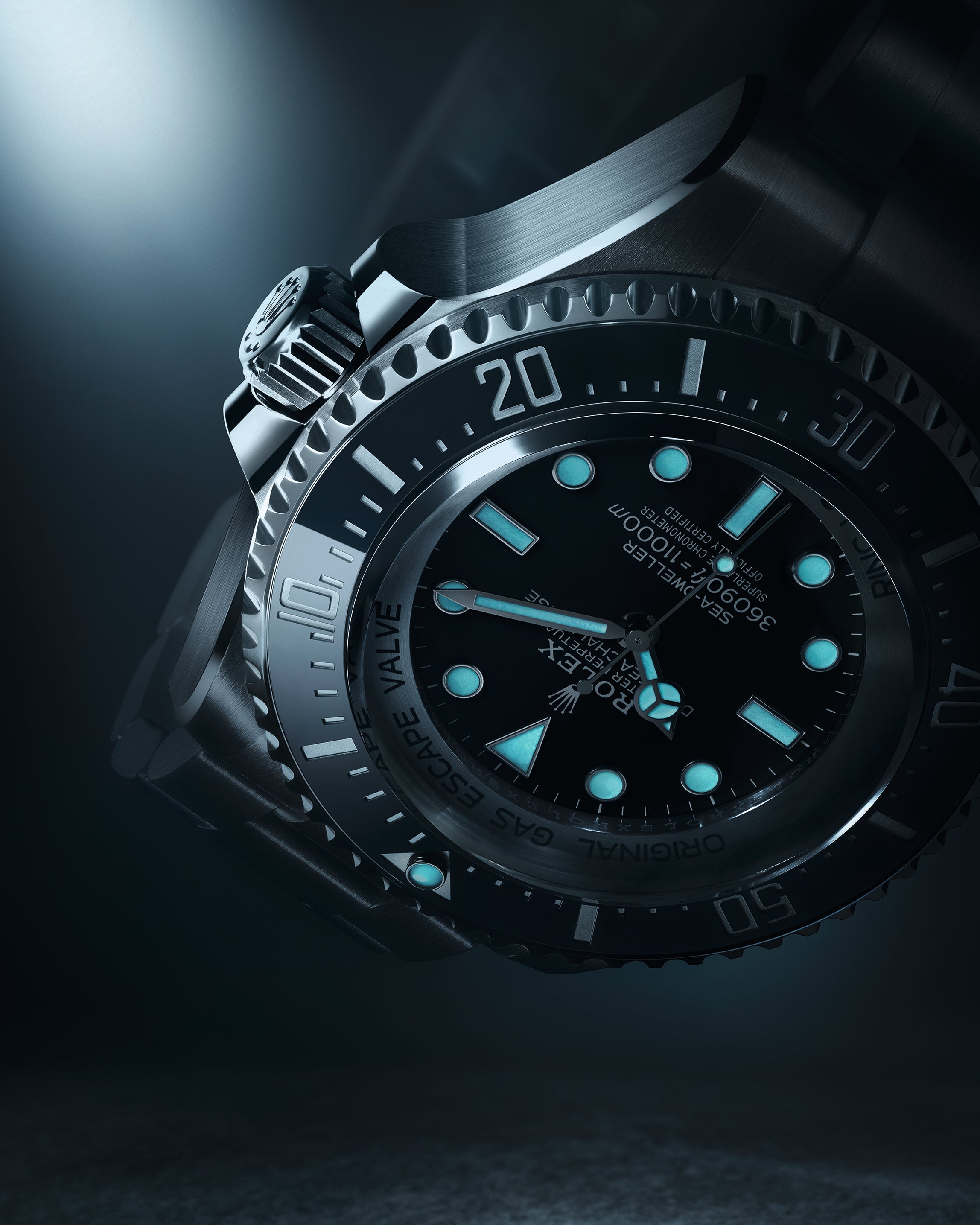 The Oyster Perpetual Rolex Deepsea fully illustrates the innovative ability of Rolex. At its launch, this deep-sea divers’ watch, waterproof to a depth of 3,900 metres (12,800 feet), inaugurated the Ringlock system – a unique case architecture that allows it to withstand the pressure exerted at this extreme depth.