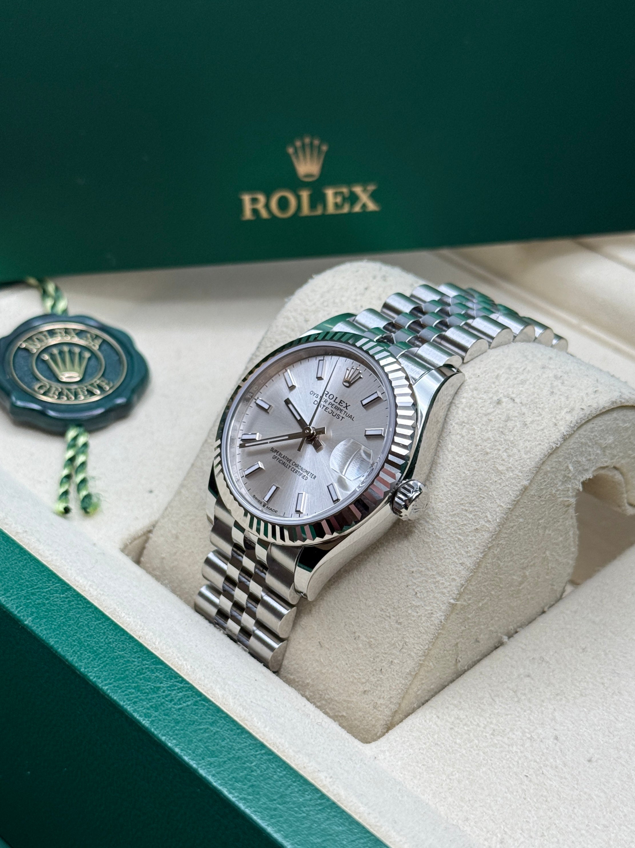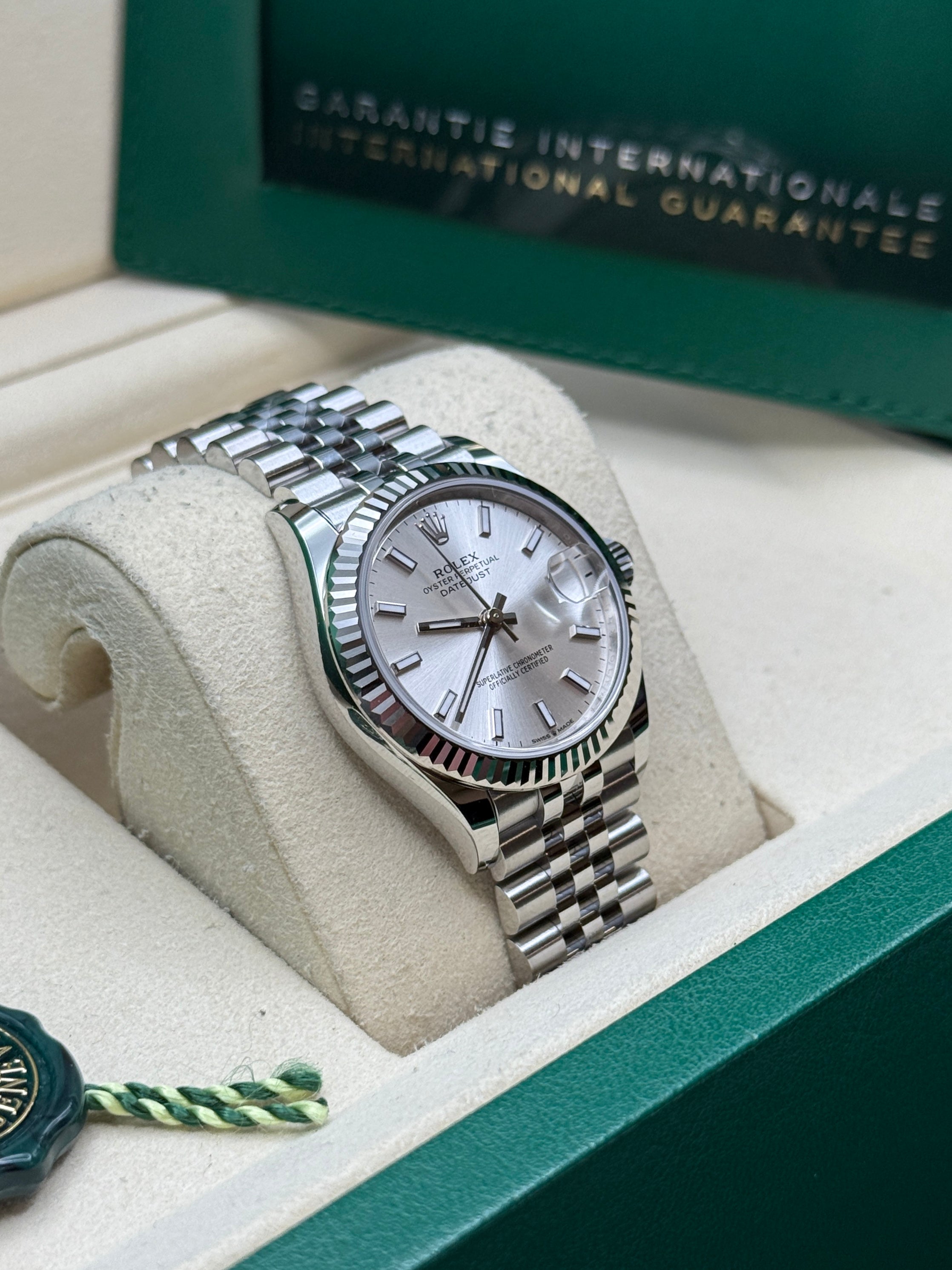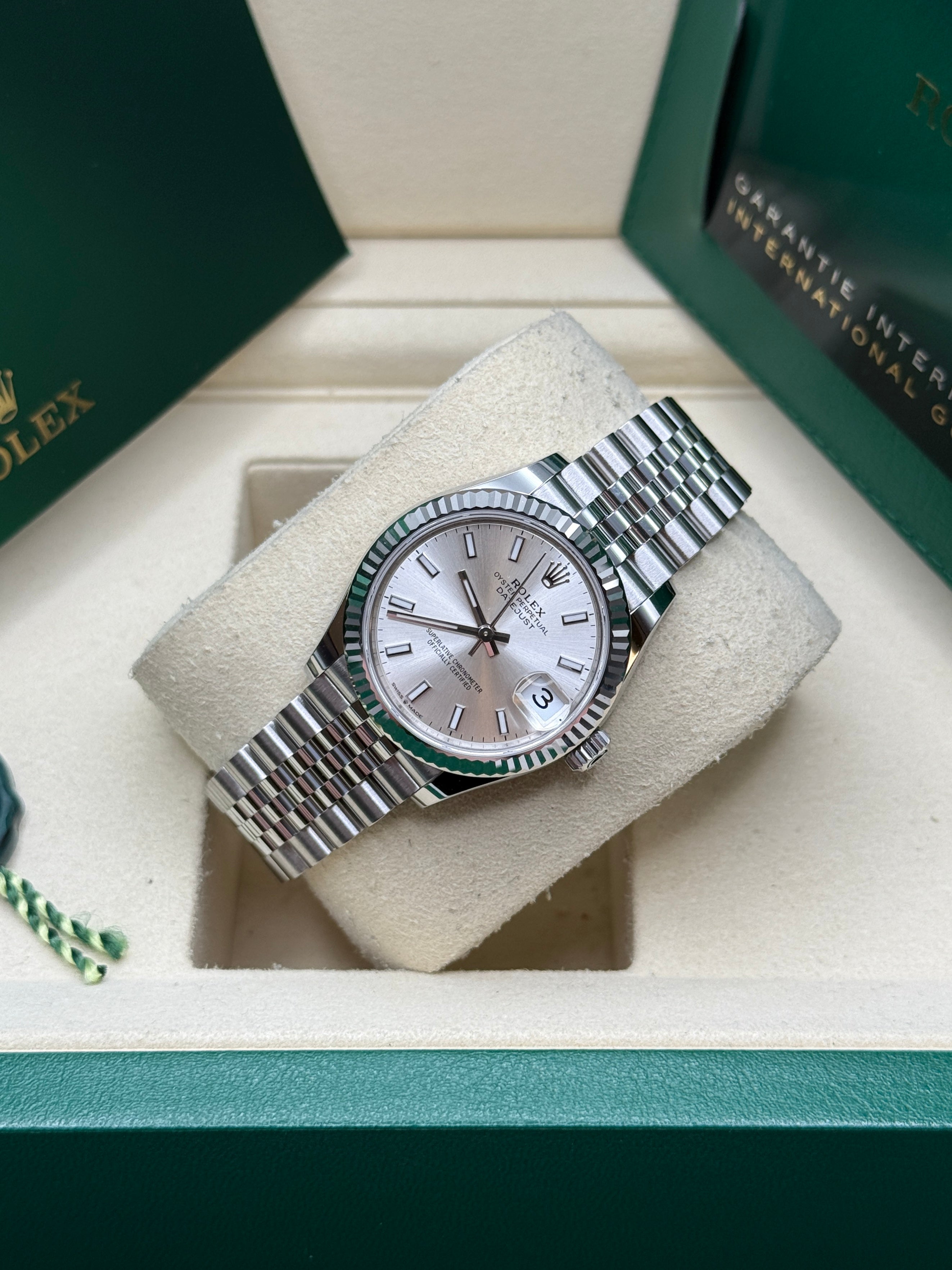 Rolex’s Datejust is the archetype of the classic watch thanks to functions and aesthetics that never go out of fashion. Launched in 1945, it was the first self-winding waterproof chronometer wristwatch to display the date in a window at 3 o’clock on the dial, and consolidated all the major innovations that Rolex had contributed to the modern wristwatch until then. The Datejust has spanned eras while retaining the enduring aesthetic characteristics that make it so instantly recognizable. A paragon of robustness and elegance, the Oyster case of the Datejust 31 is guaranteed waterproof to a depth of 100 meters (330 feet) and is equipped with calibre 2236, a movement entirely developed and manufactured by Rolex.