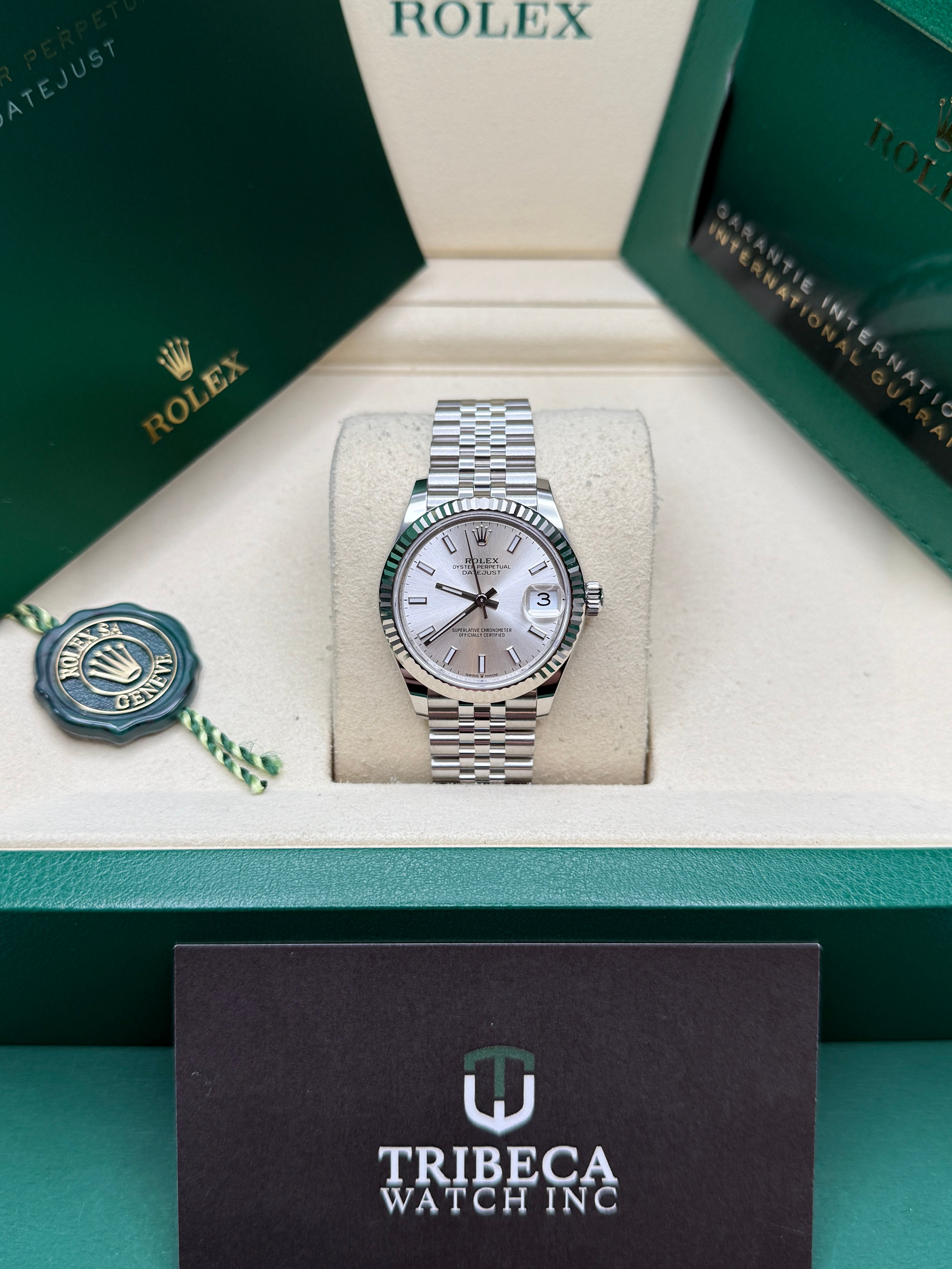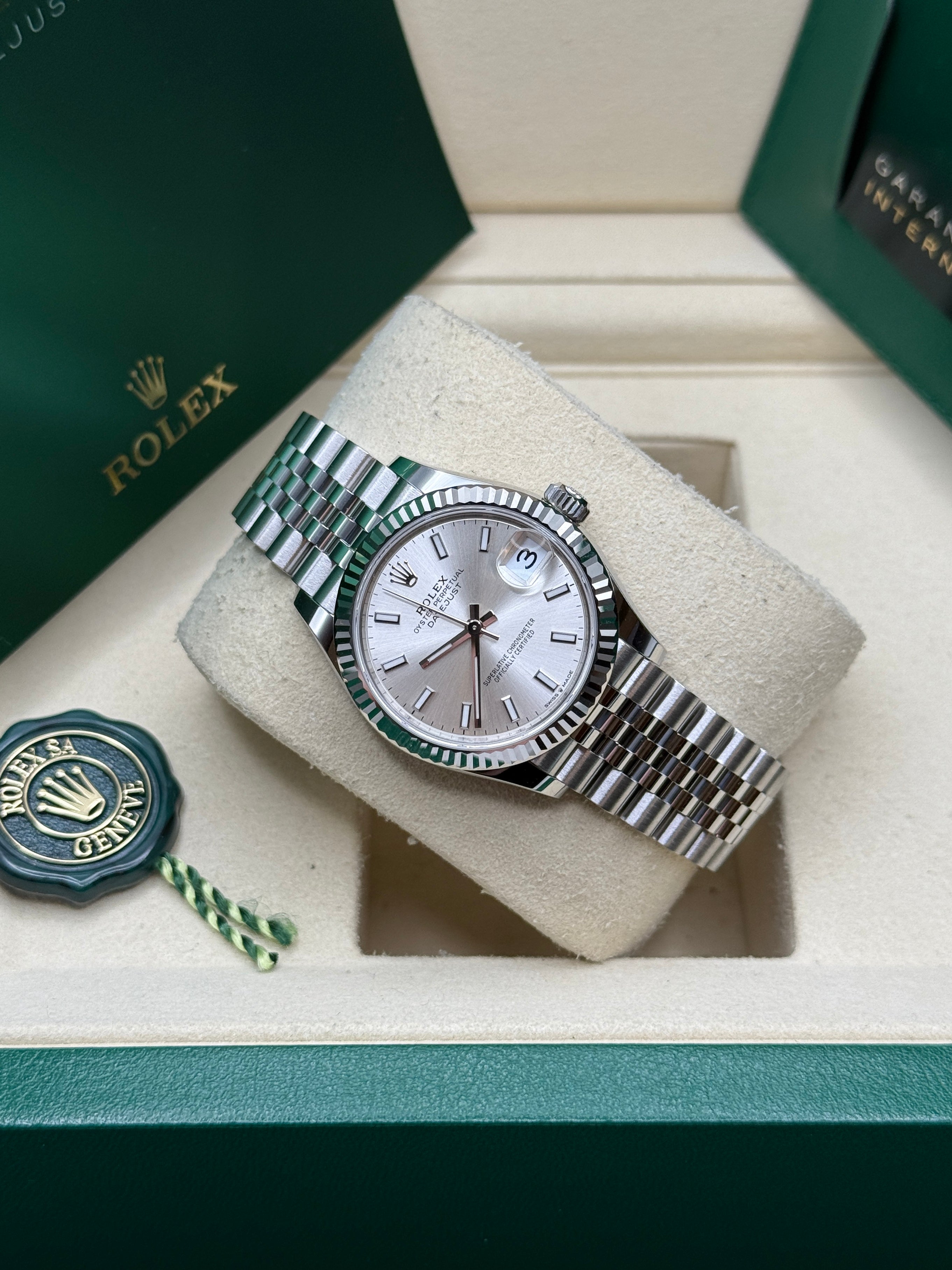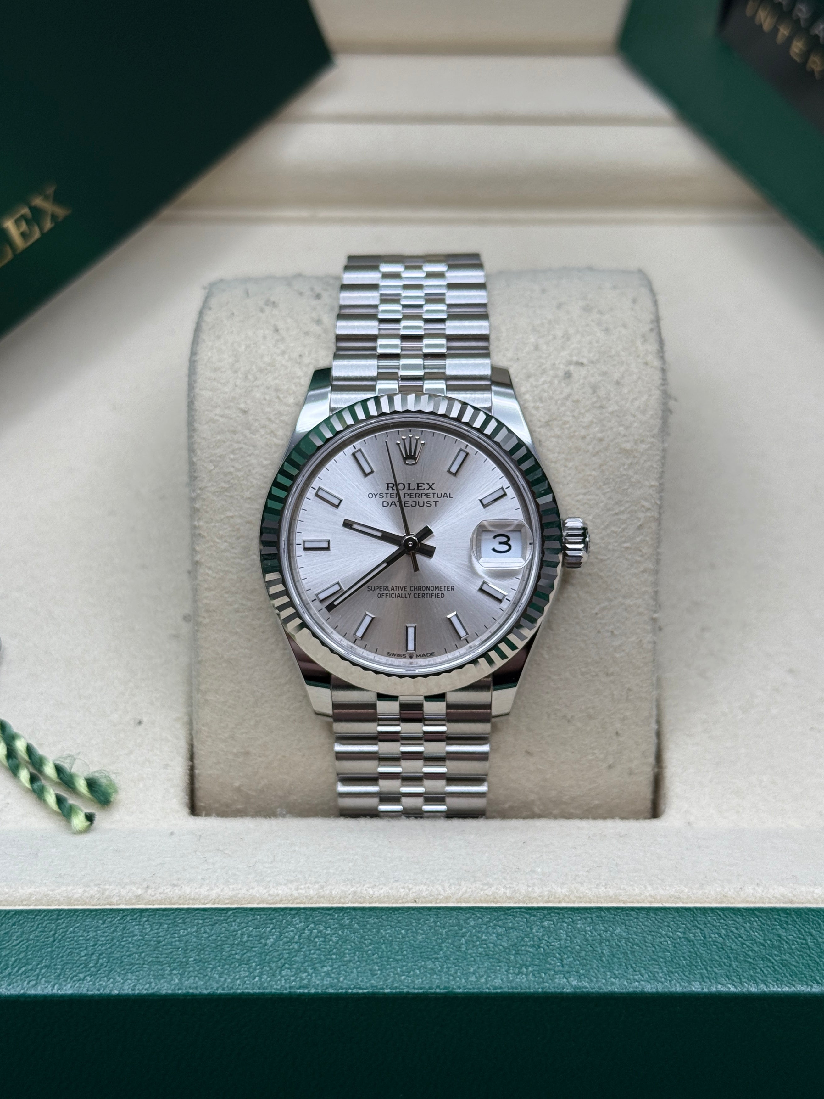 Rolex’s Datejust is the archetype of the classic watch thanks to functions and aesthetics that never go out of fashion. Launched in 1945, it was the first self-winding waterproof chronometer wristwatch to display the date in a window at 3 o’clock on the dial, and consolidated all the major innovations that Rolex had contributed to the modern wristwatch until then. The Datejust has spanned eras while retaining the enduring aesthetic characteristics that make it so instantly recognizable. A paragon of robustness and elegance, the Oyster case of the Datejust 31 is guaranteed waterproof to a depth of 100 meters (330 feet) and is equipped with calibre 2236, a movement entirely developed and manufactured by Rolex.