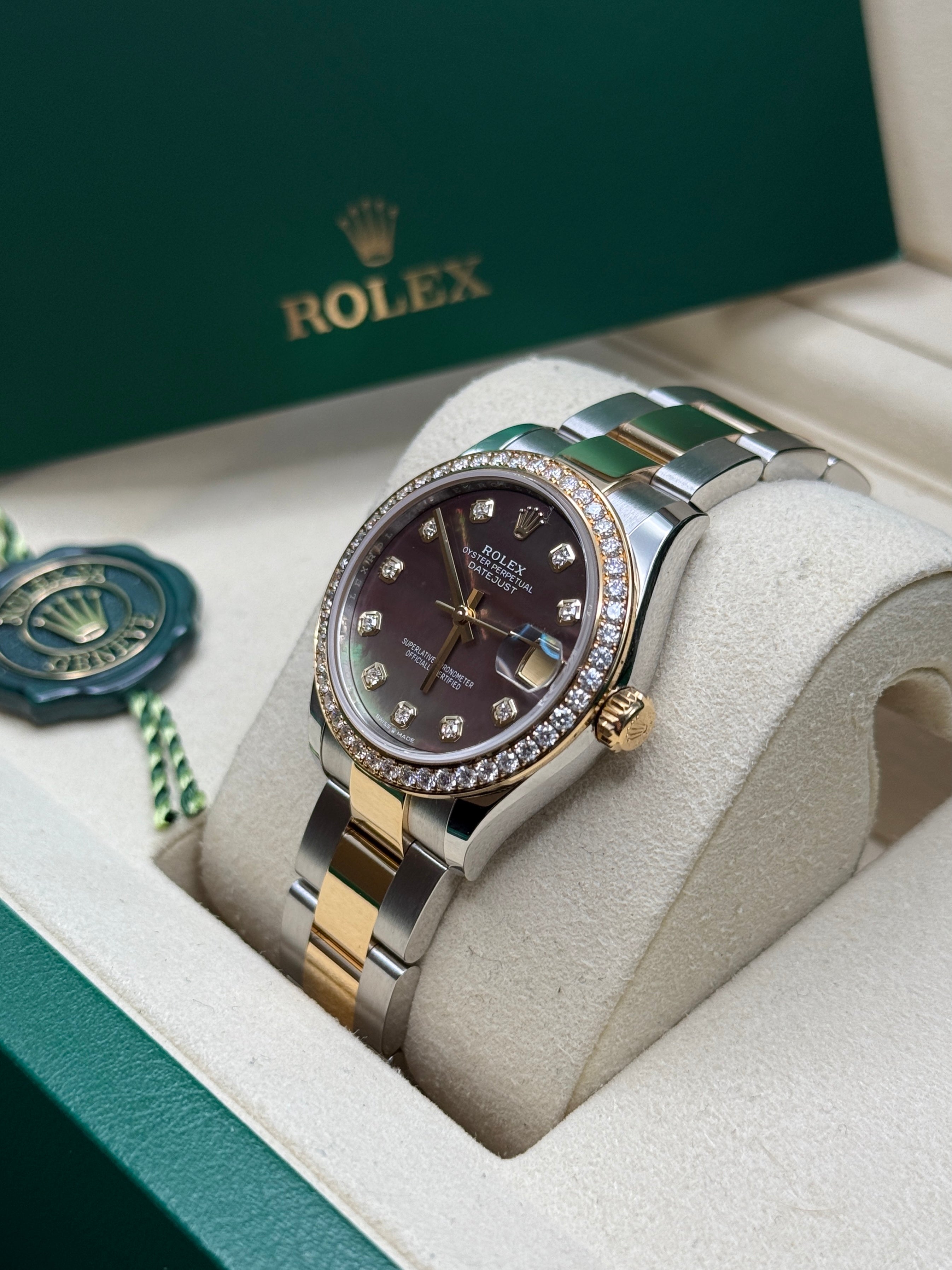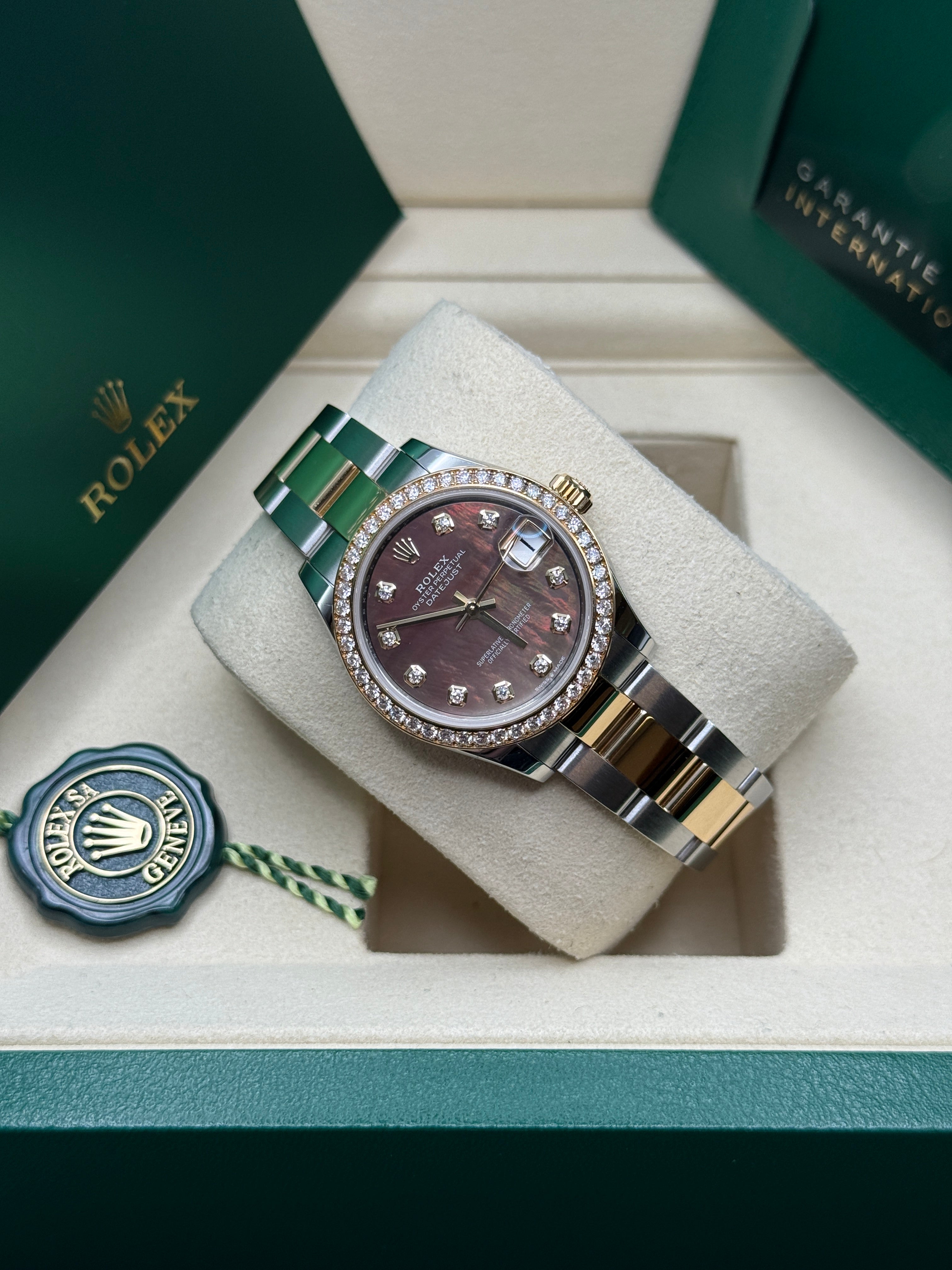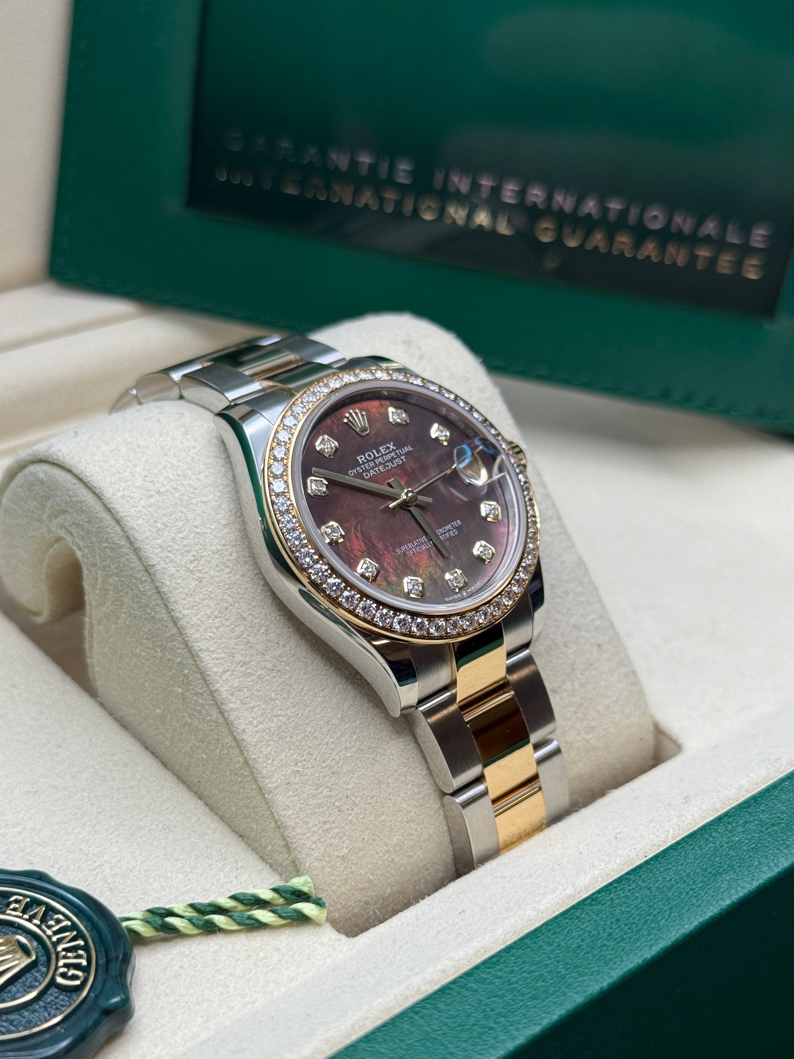 Datejust 31 Yellow Gold Two-Tone Black Mother of Pearl Diamond