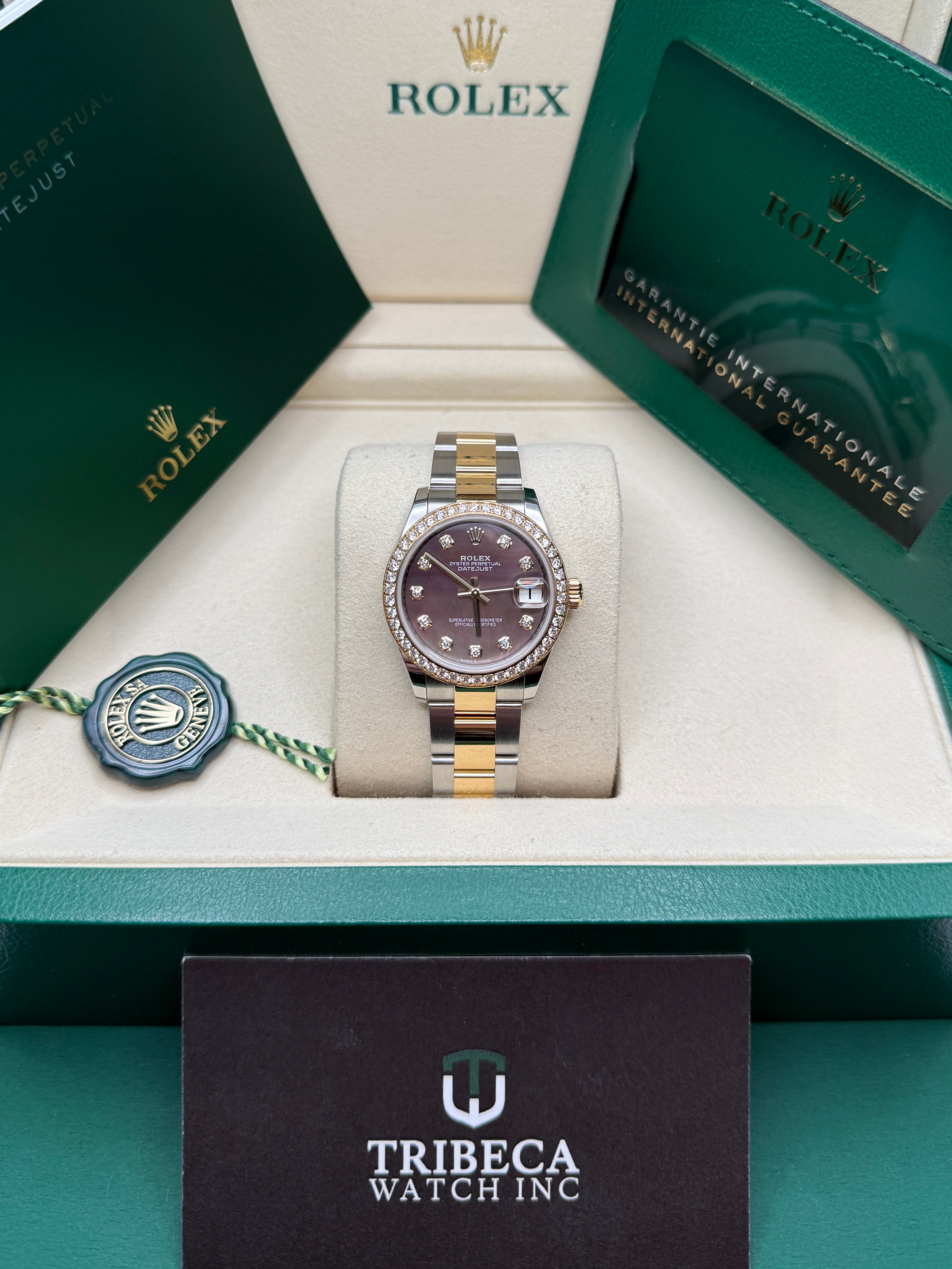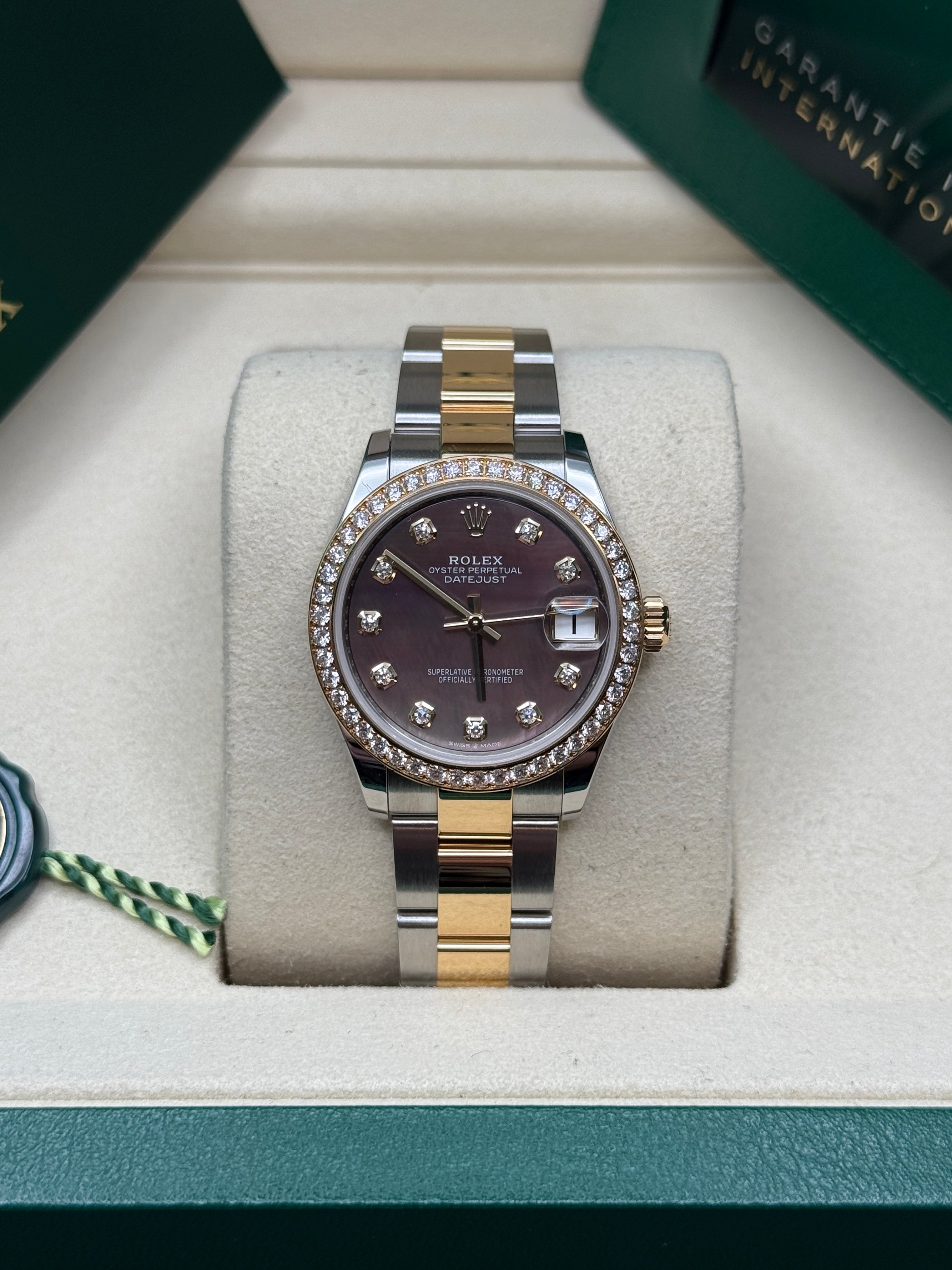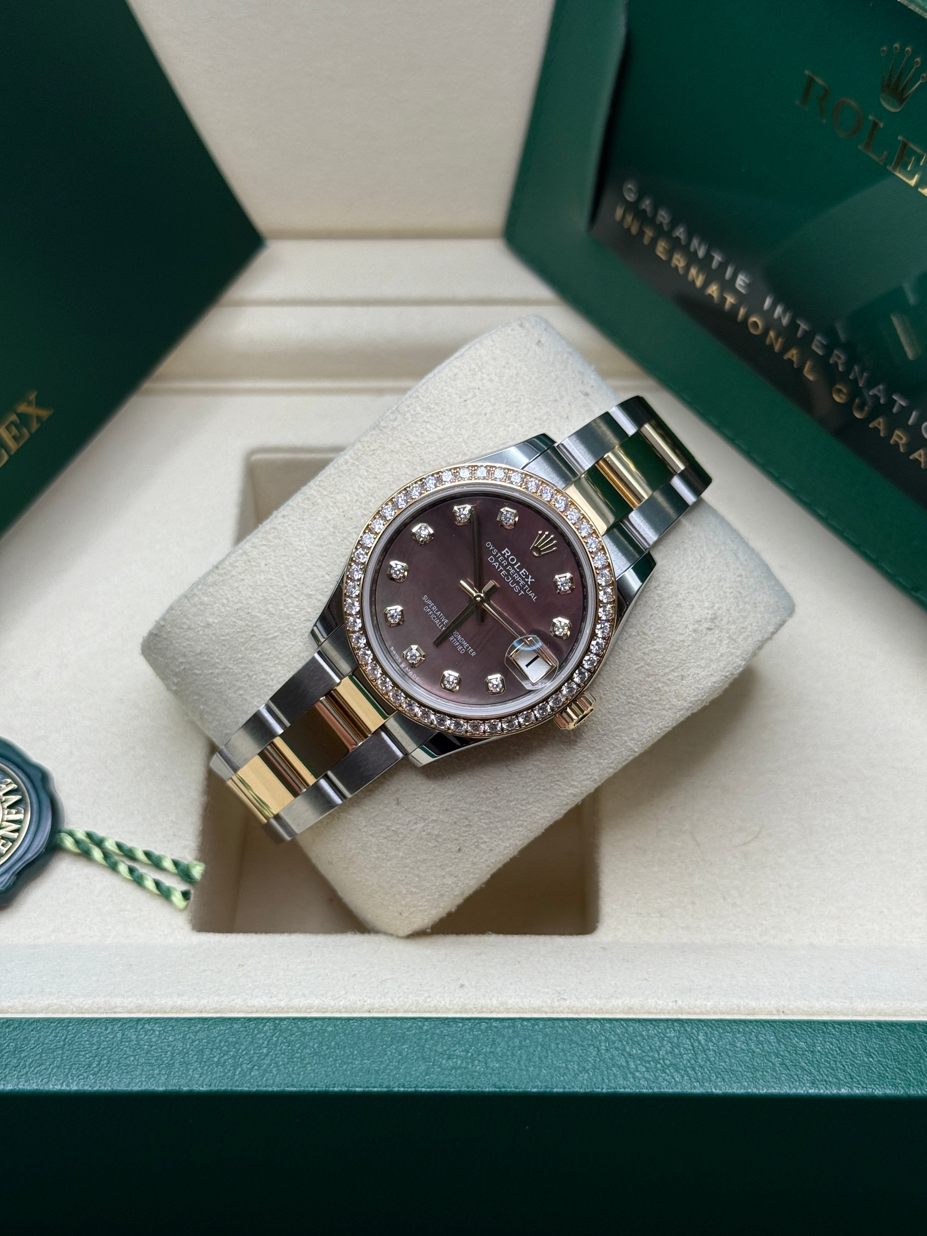 Datejust 31 Yellow Gold Two-Tone Black Mother of Pearl Diamond