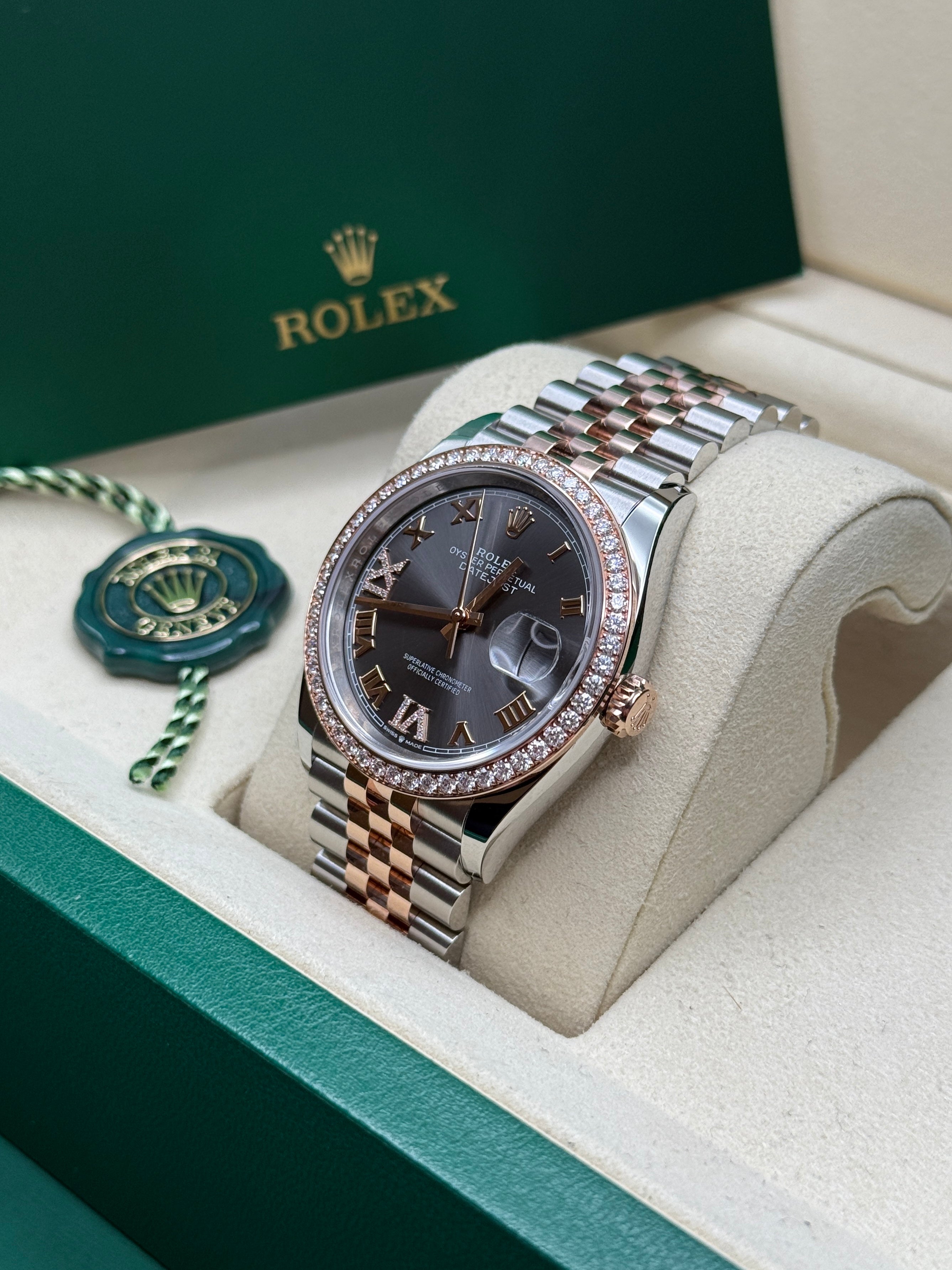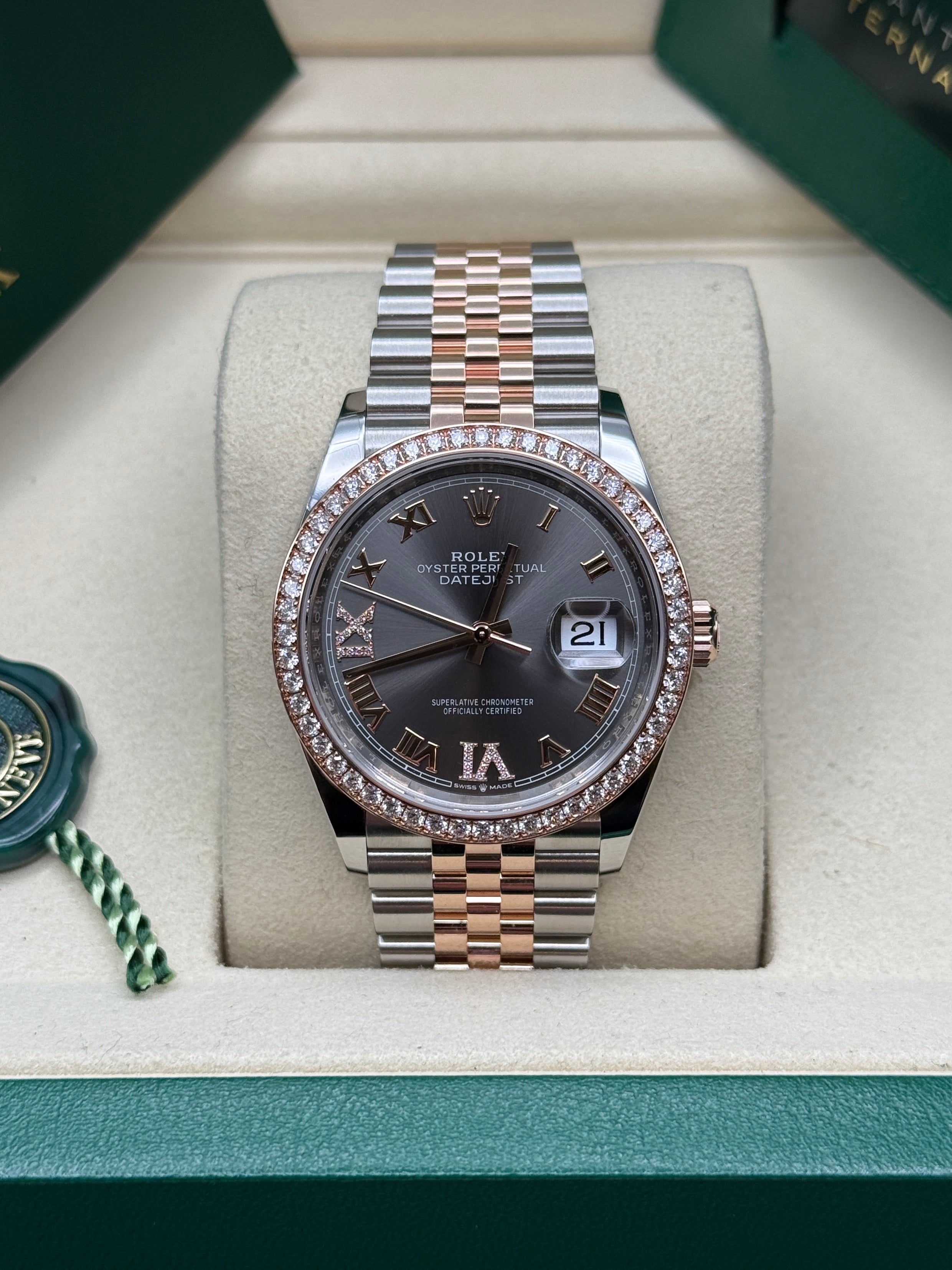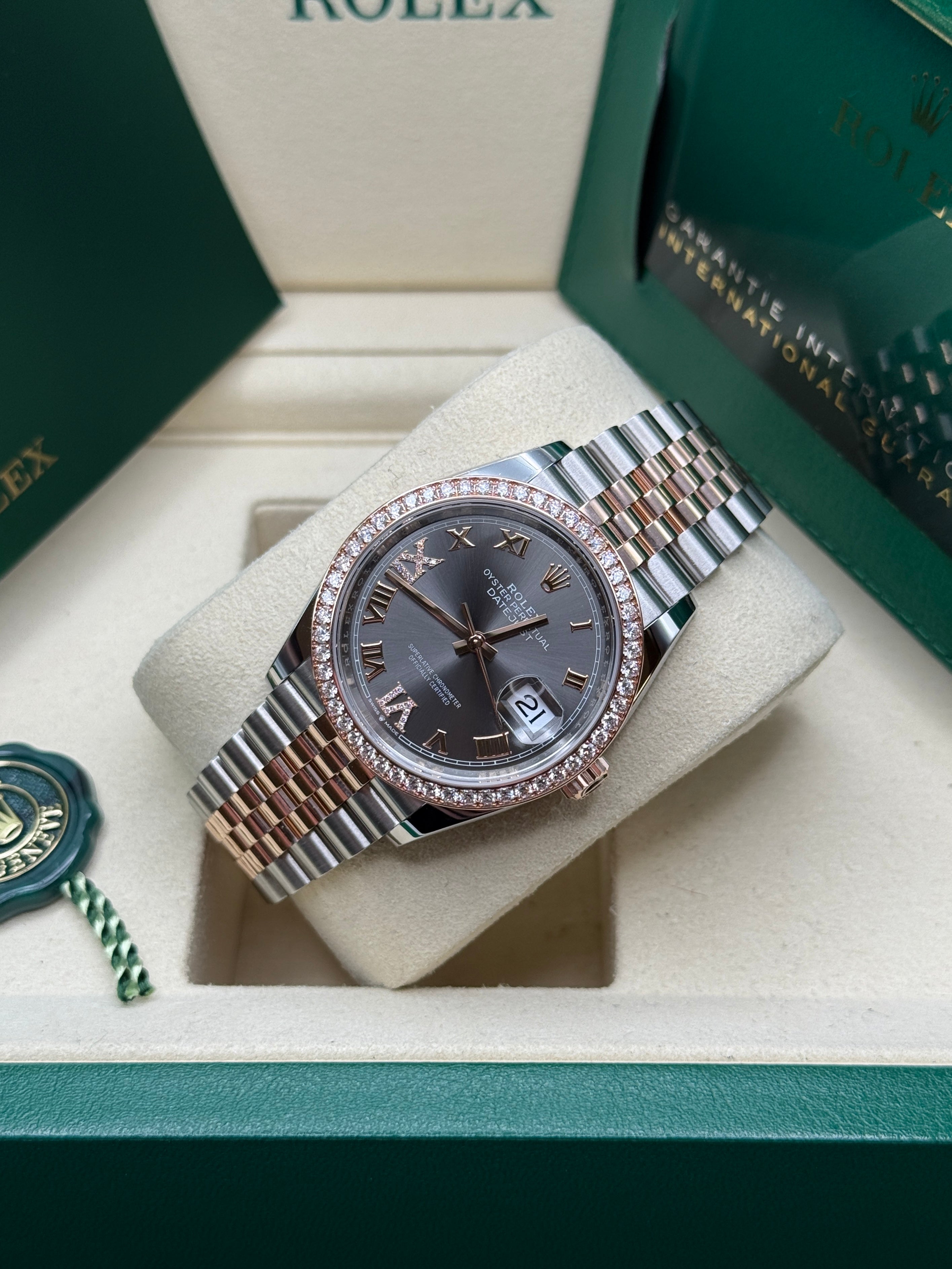 Datejust 36 Everose Gold Two-Tone Slate Roman Diamond
