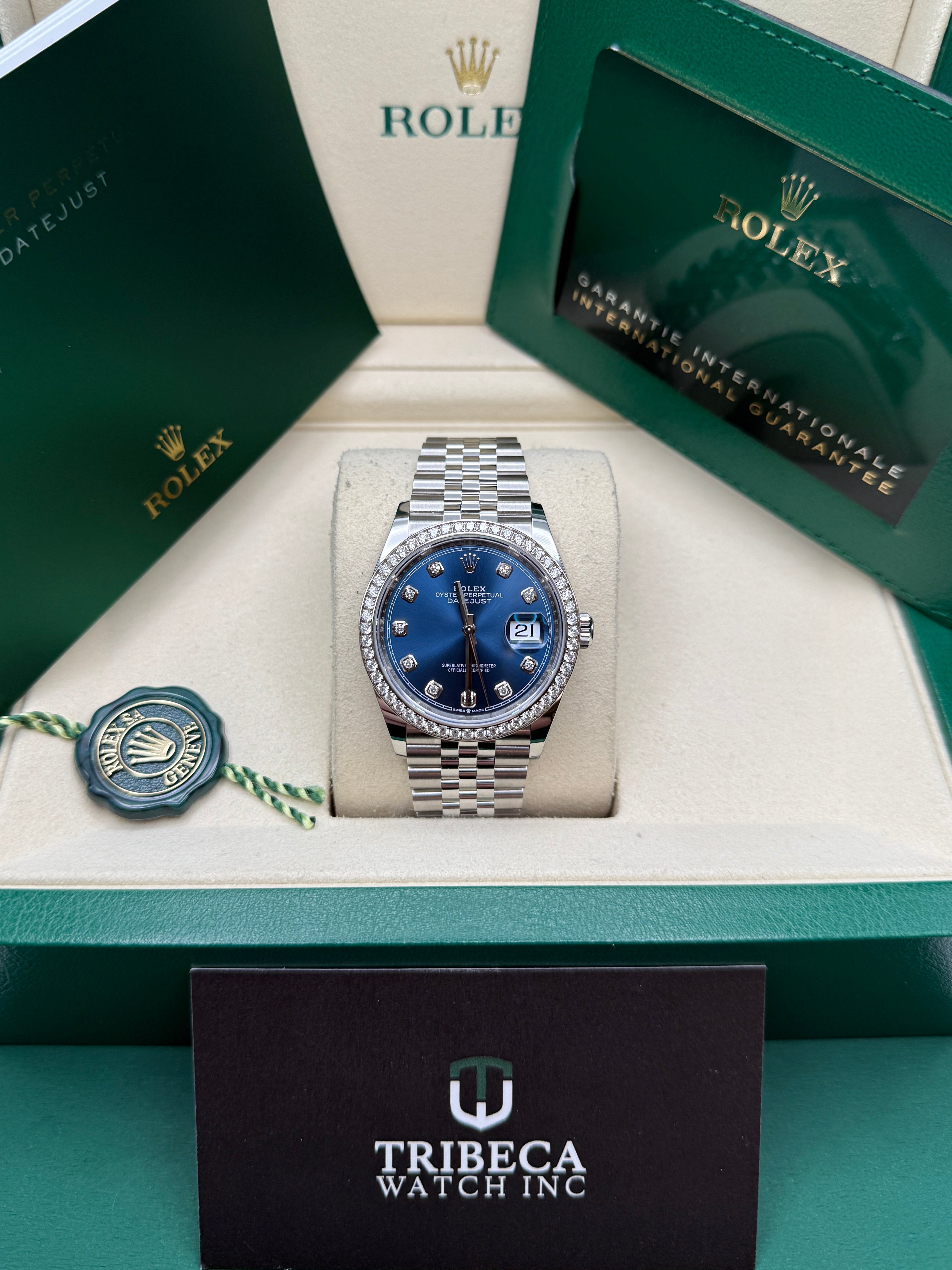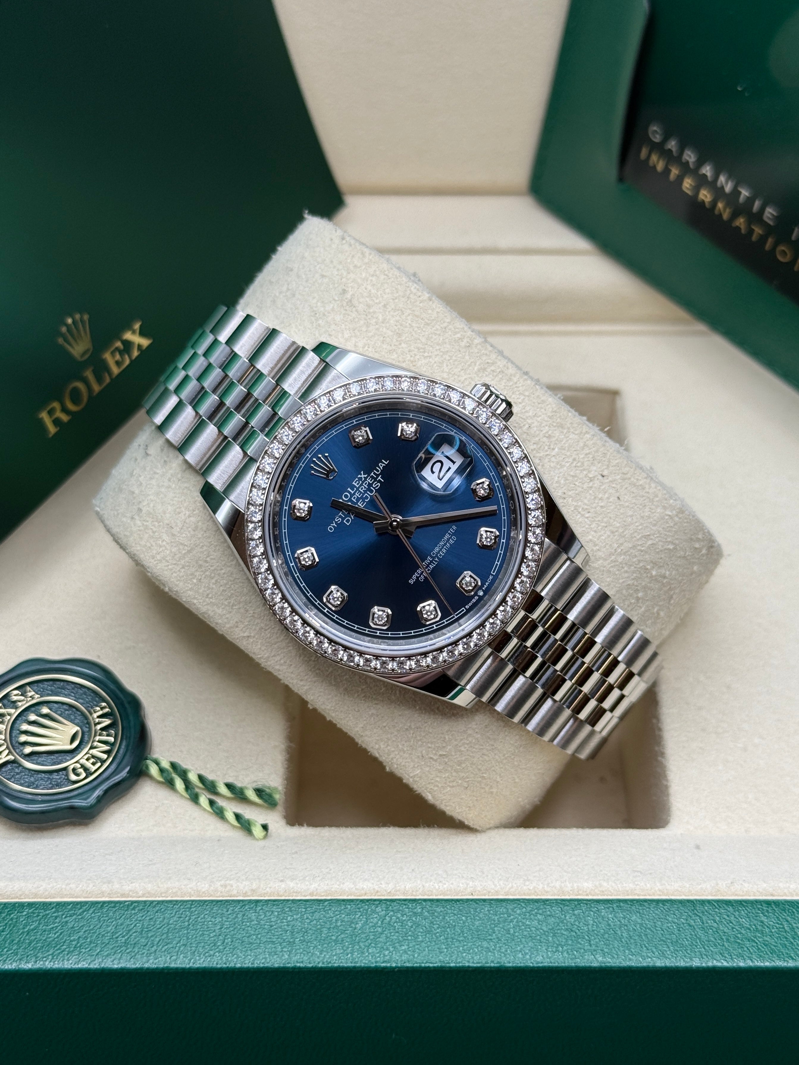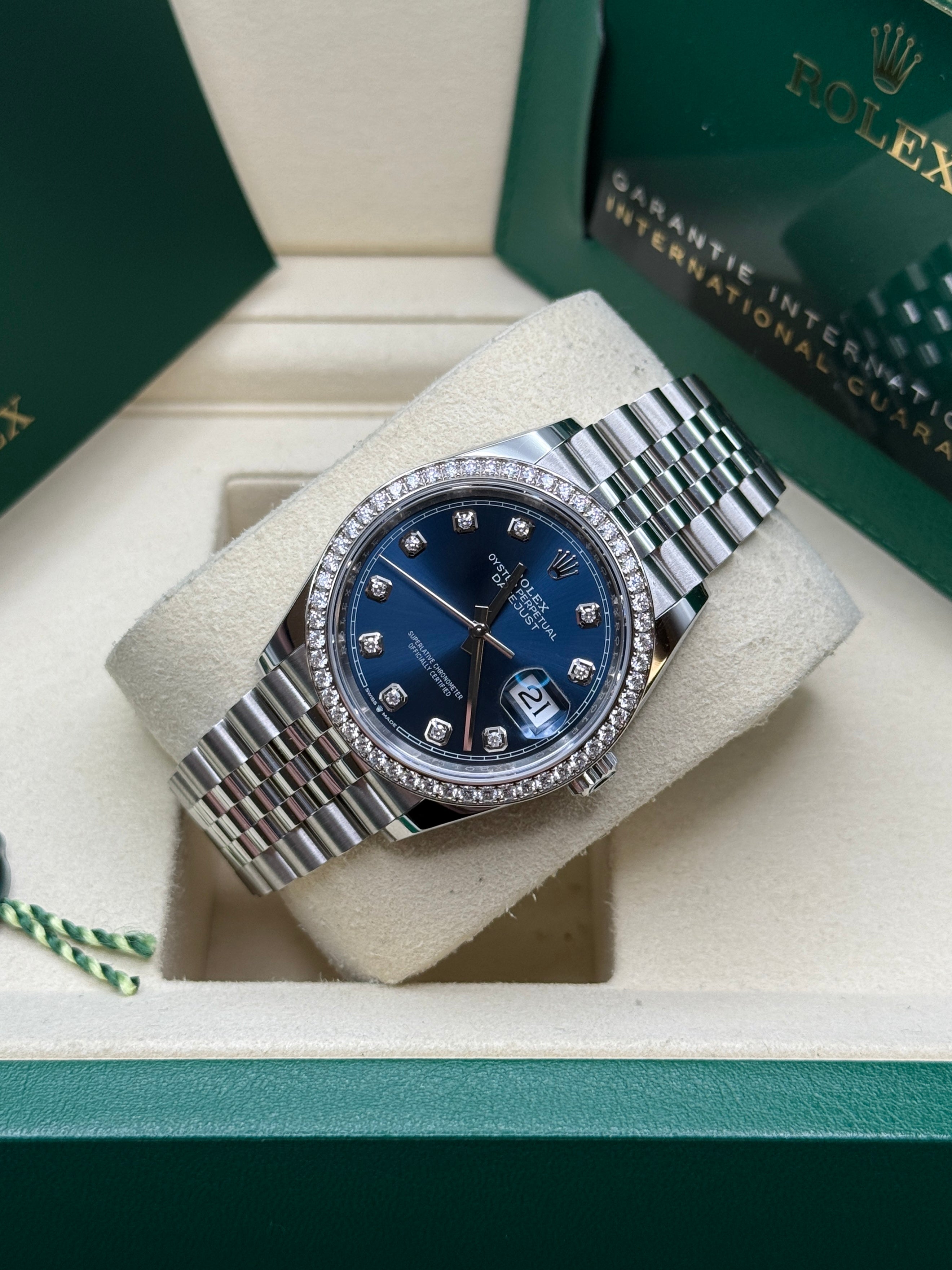 Rolex’s Datejust is the archetype of the classic watch thanks to functions and aesthetics that never go out of fashion. Launched in 1945, it was the first self-winding waterproof chronometer wristwatch to display the date in a window at 3 o’clock on the dial, and consolidated all the major innovations that Rolex had contributed to the modern wristwatch until then. The Datejust has spanned eras while retaining the enduring aesthetic characteristics that make it so instantly recognizable. A paragon of robustness and elegance, the Oyster case of the Datejust 36 is guaranteed waterproof to a depth of 100 meters (330 feet) and is equipped with calibre 3235, a movement entirely developed and manufactured by Rolex.