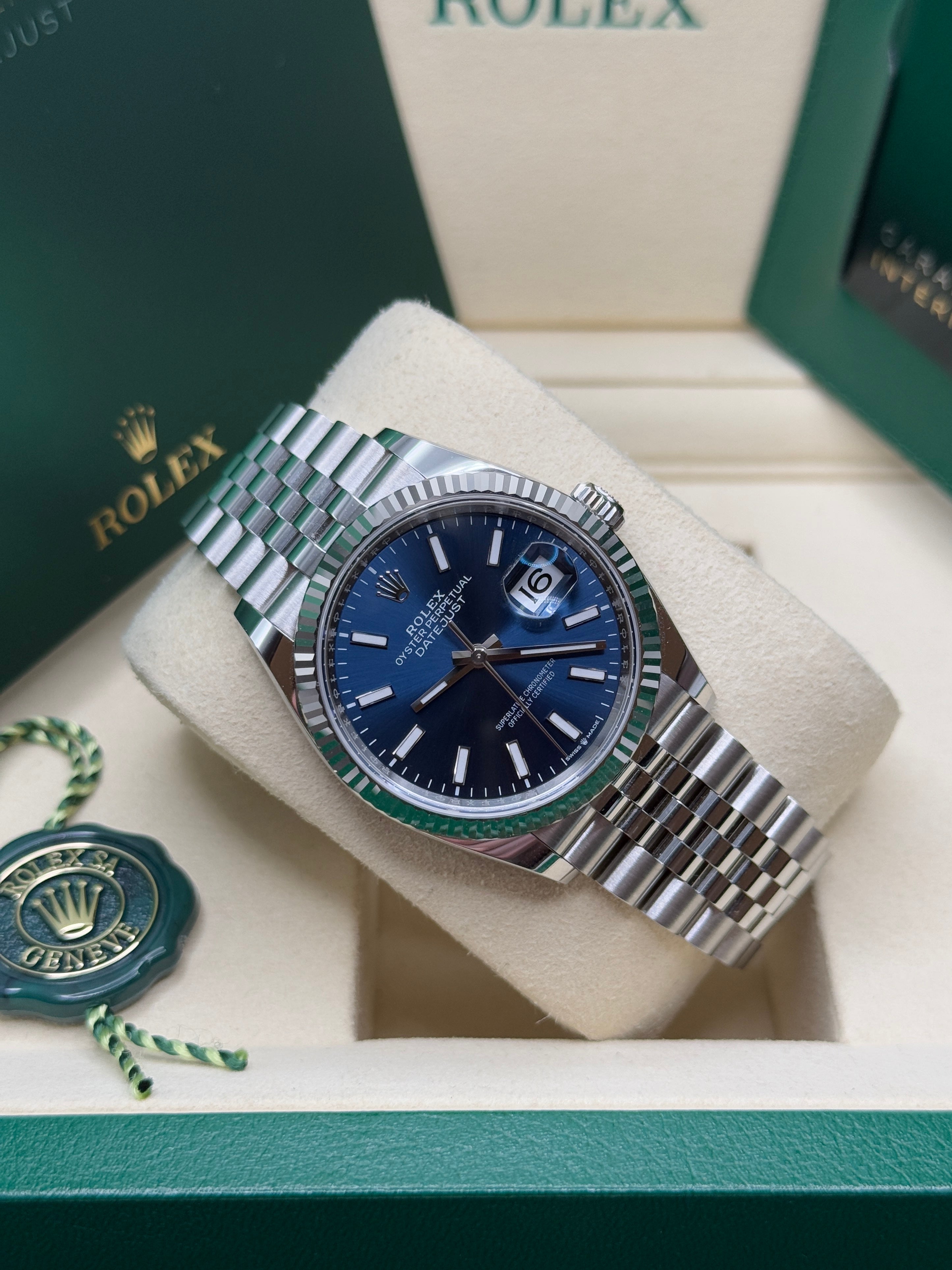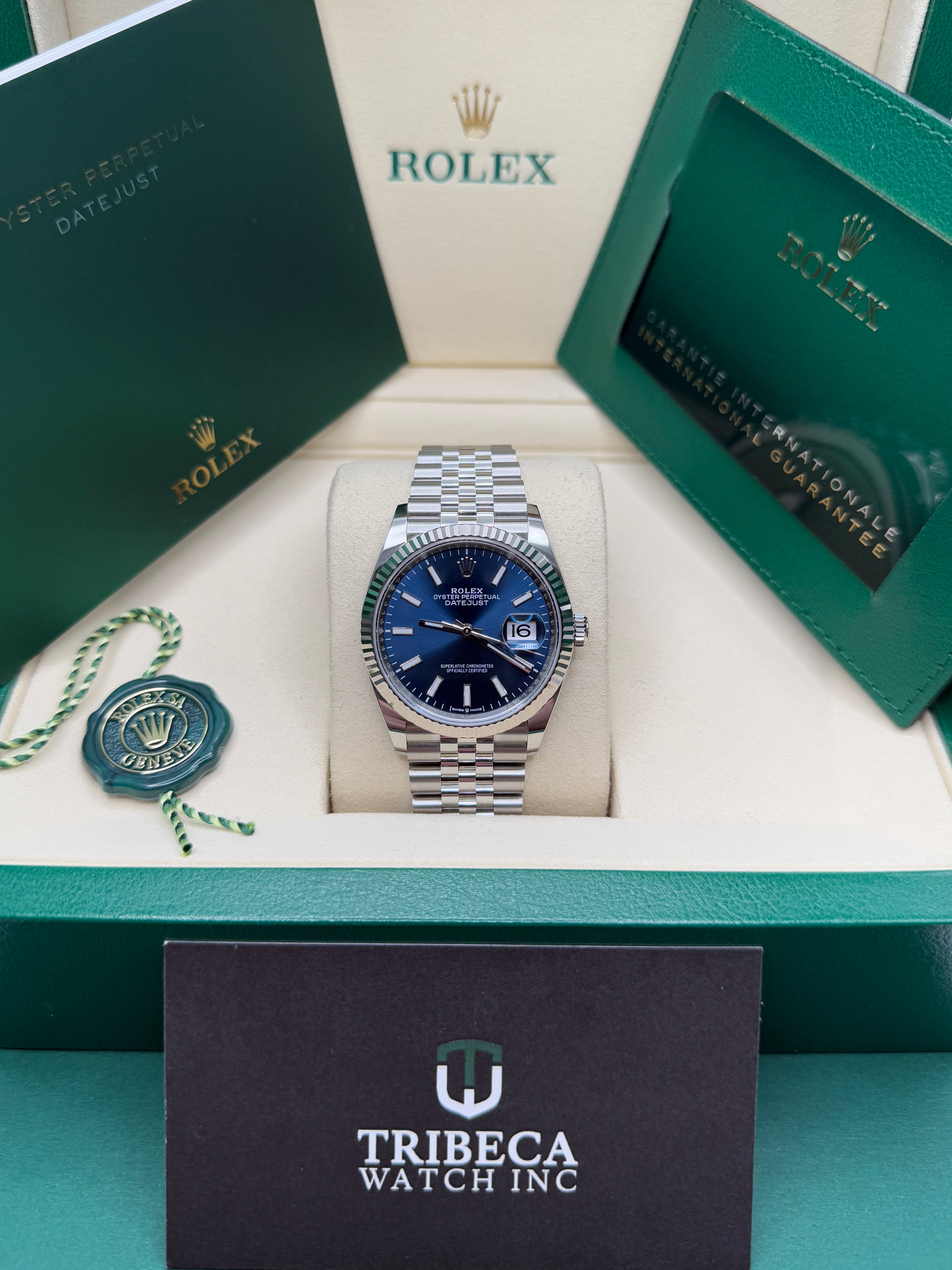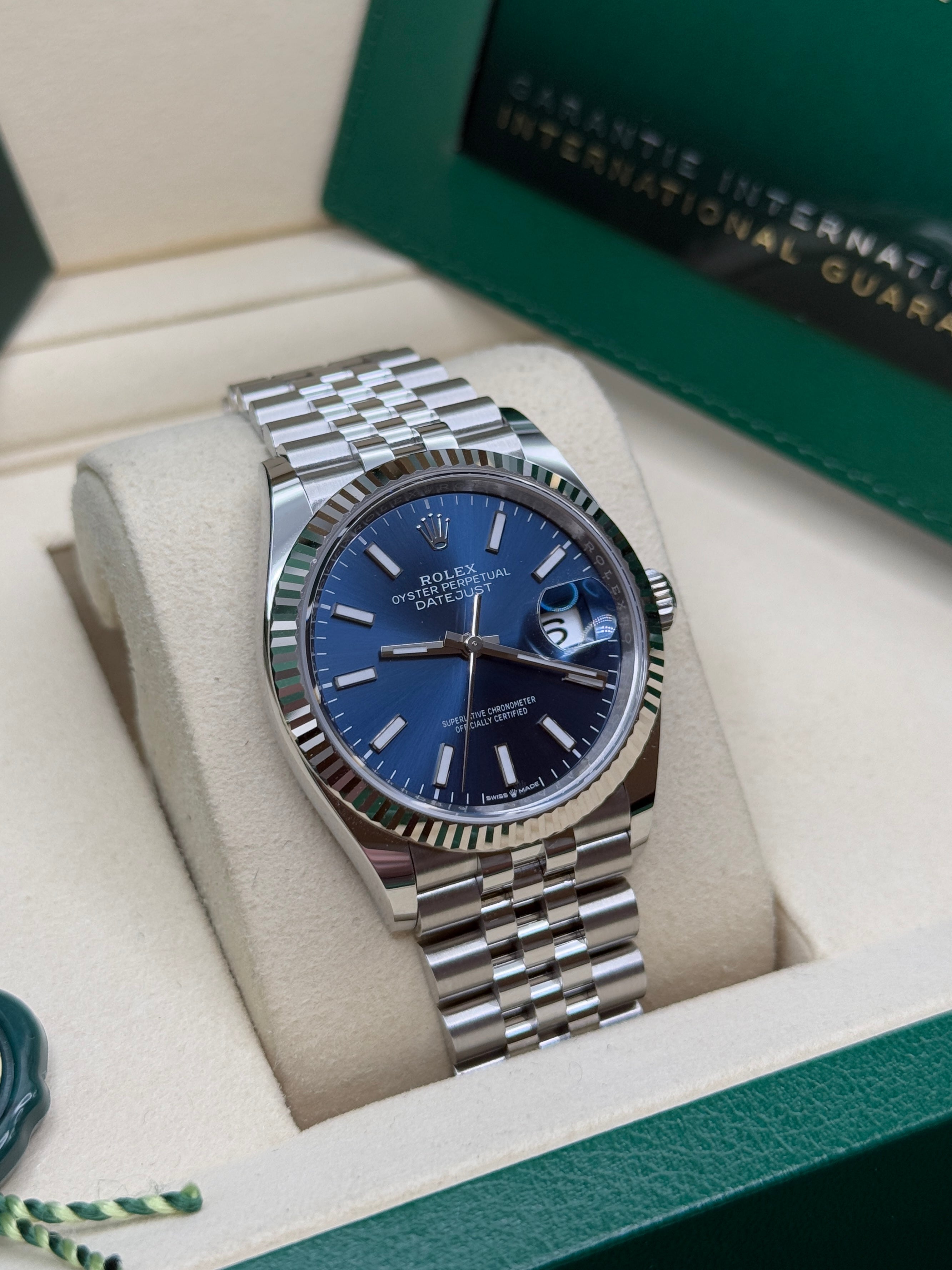 Rolex’s Datejust is the archetype of the classic watch thanks to functions and aesthetics that never go out of fashion. Launched in 1945, it was the first self-winding waterproof chronometer wristwatch to display the date in a window at 3 o’clock on the dial, and consolidated all the major innovations that Rolex had contributed to the modern wristwatch until then. The Datejust has spanned eras while retaining the enduring aesthetic characteristics that make it so instantly recognizable. A paragon of robustness and elegance, the Oyster case of the Datejust 36 is guaranteed waterproof to a depth of 100 meters (330 feet) and is equipped with calibre 3235, a movement entirely developed and manufactured by Rolex.