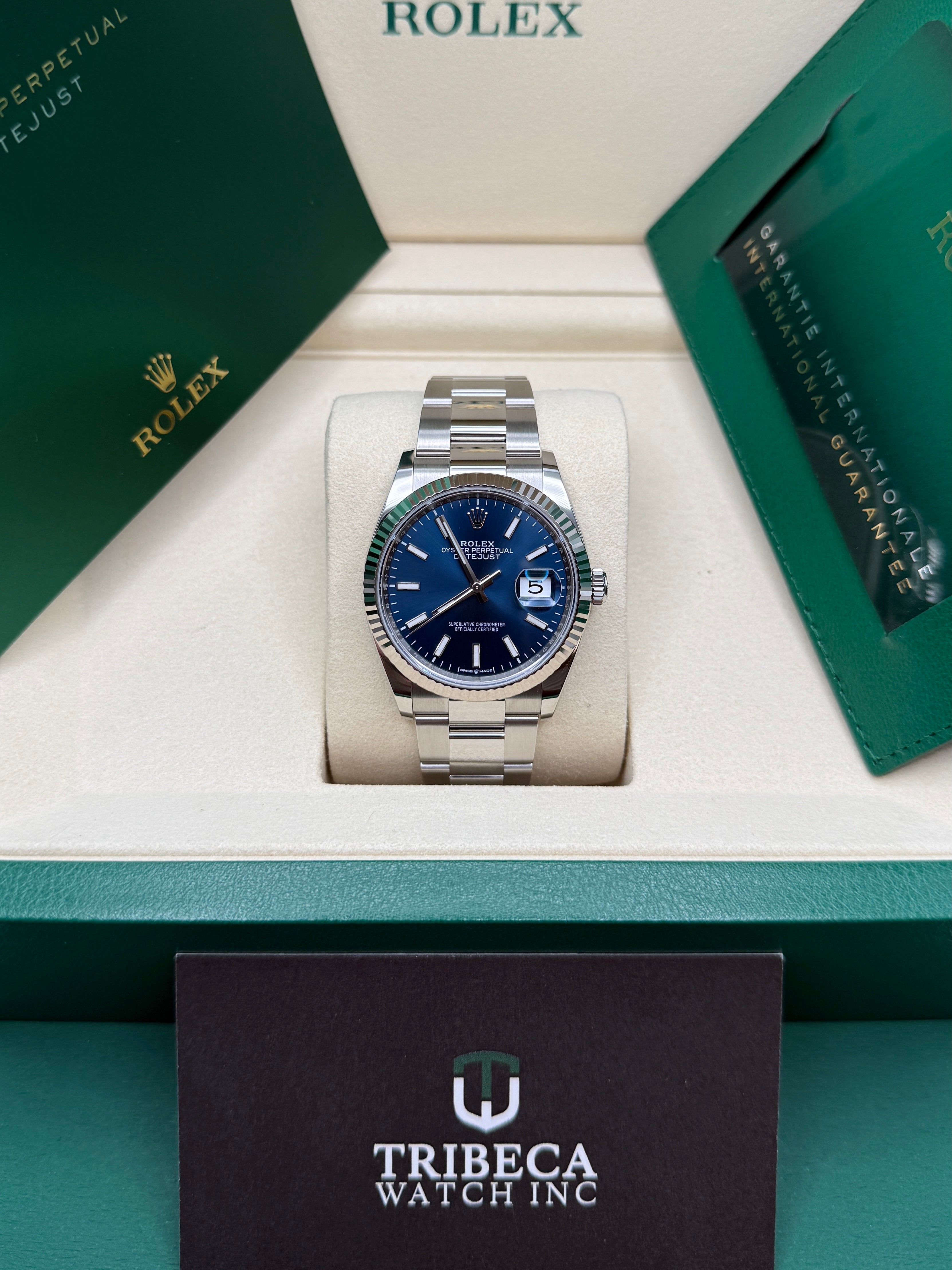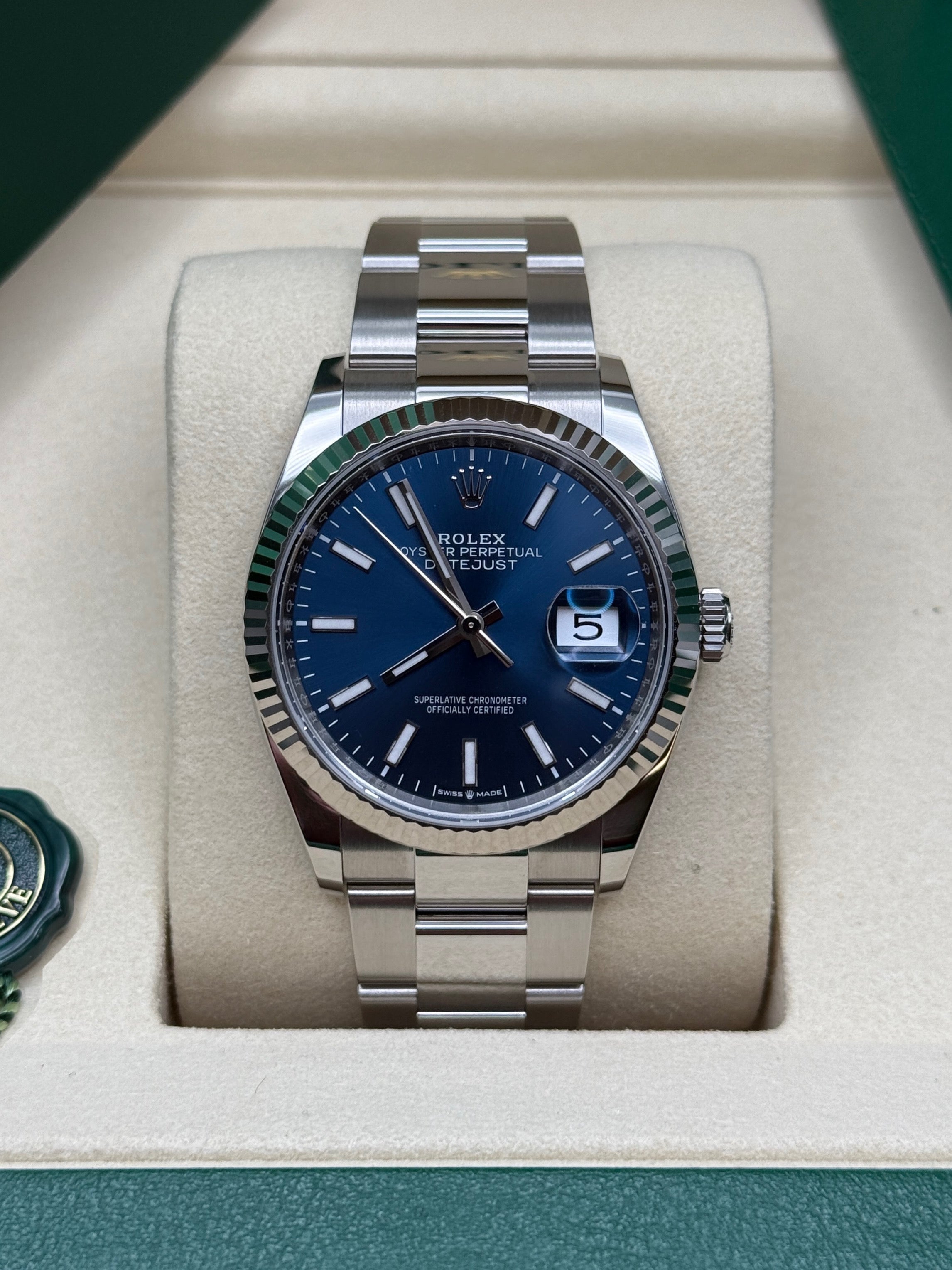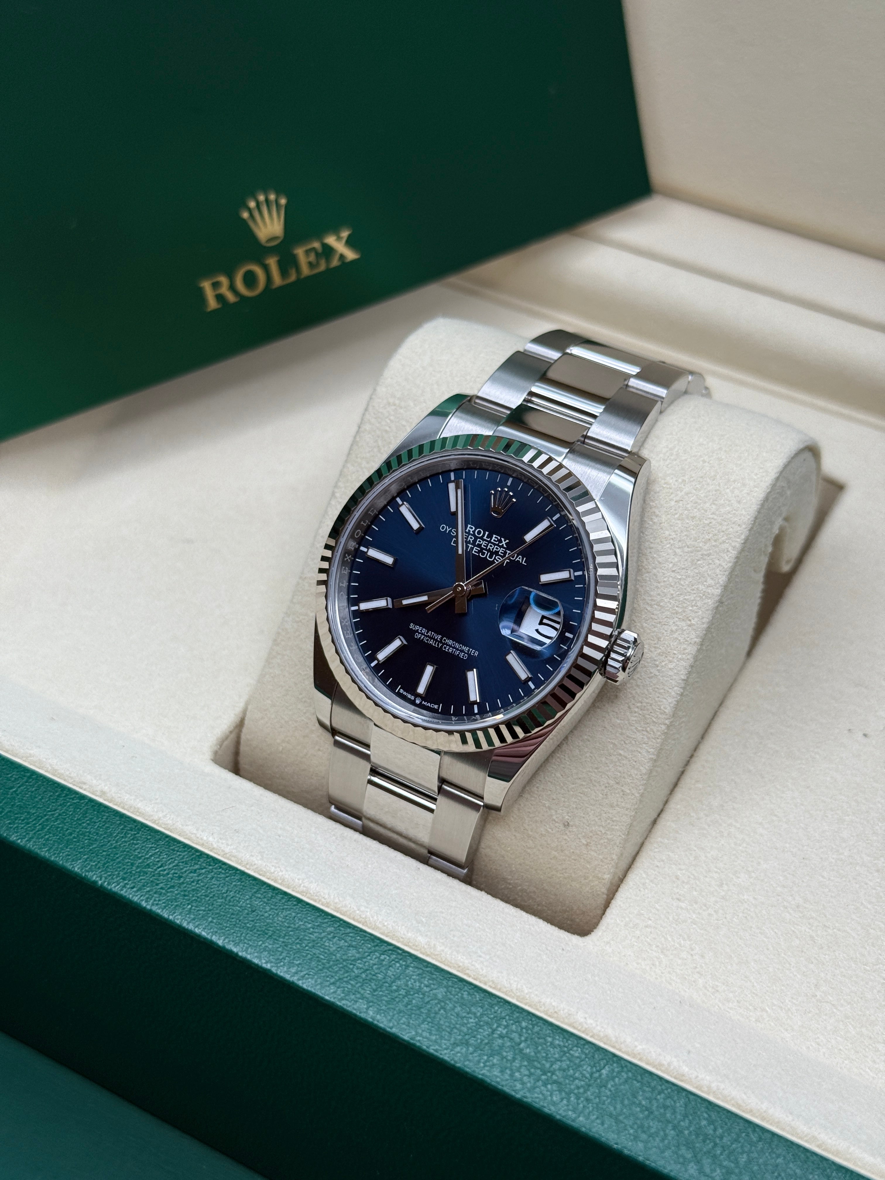 Oystersteel | Oyster Bracelet | Bright Blue Index Dial | Fluted Bezel | 36.0mm