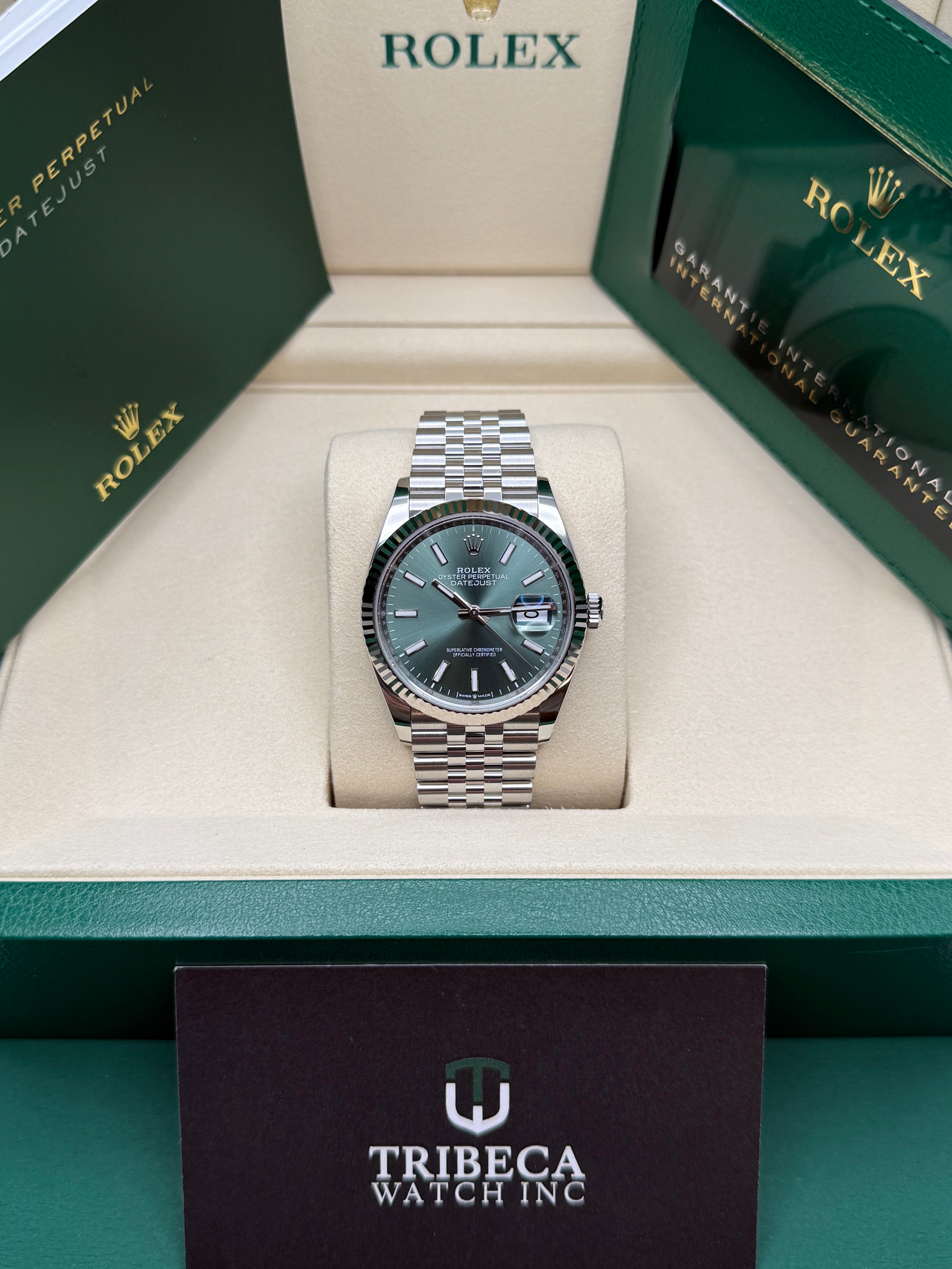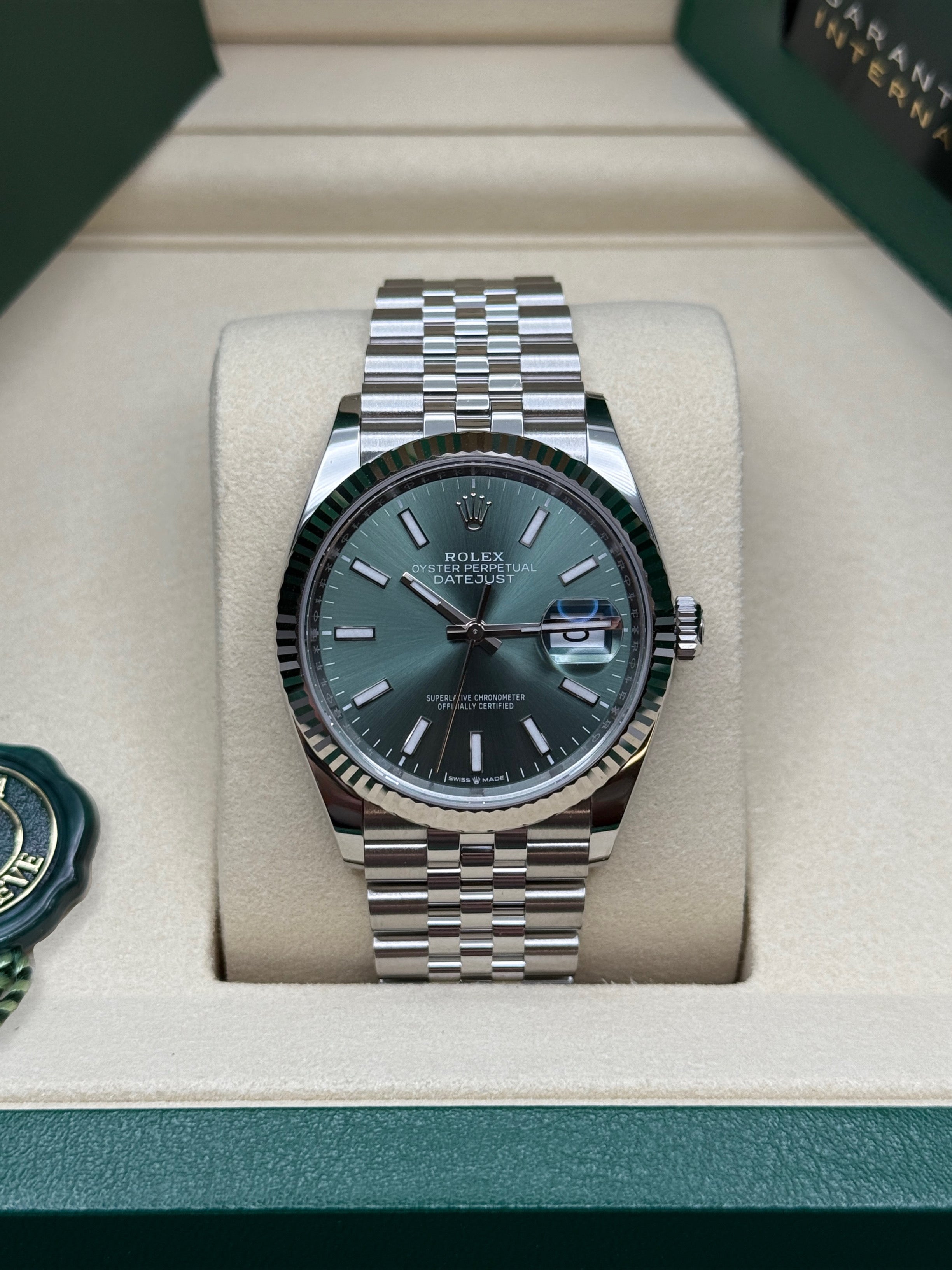 Oystersteel | Jubilee Bracelet | Mint Green Index Dial | Fluted Bezel | 36.0mm