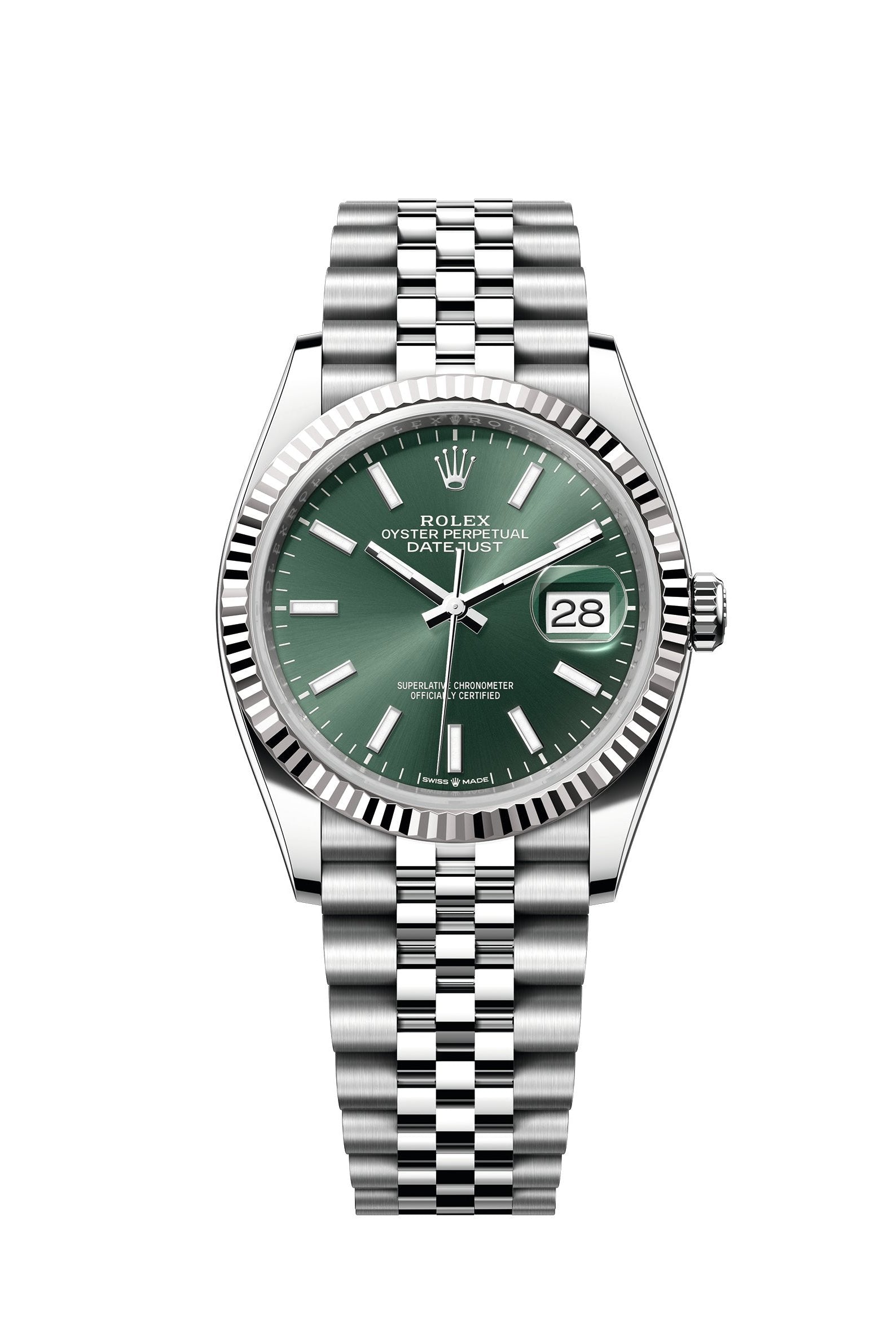Rolex’s Datejust is the archetype of the classic watch thanks to functions and aesthetics that never go out of fashion. Launched in 1945, it was the first self-winding waterproof chronometer wristwatch to display the date in a window at 3 o’clock on the dial, and consolidated all the major innovations that Rolex had contributed to the modern wristwatch until then. The Datejust has spanned eras while retaining the enduring aesthetic characteristics that make it so instantly recognizable. A paragon of robustness and elegance, the Oyster case of the Datejust 36 is guaranteed waterproof to a depth of 100 meters (330 feet) and is equipped with calibre 3235, a movement entirely developed and manufactured by Rolex.