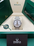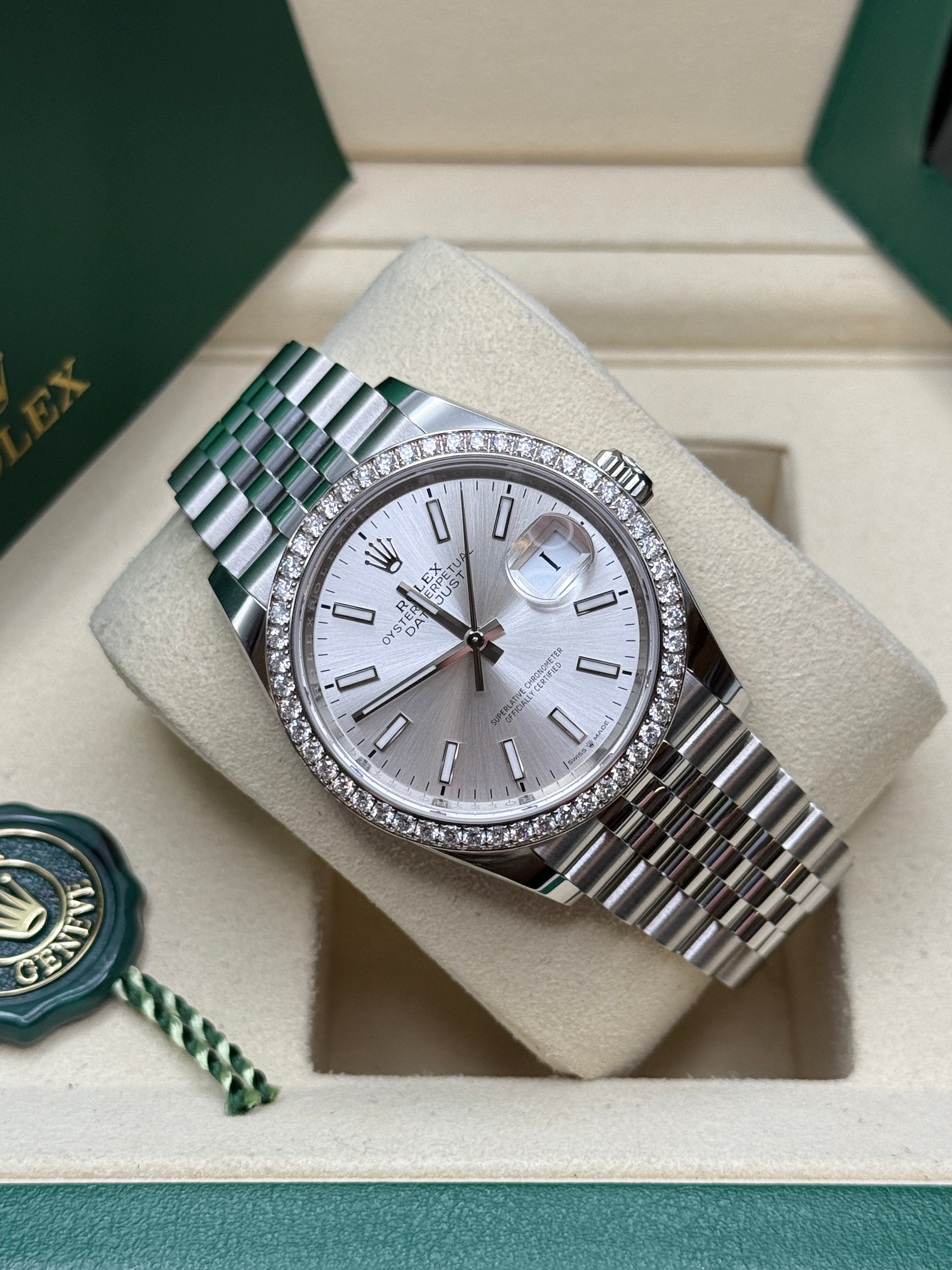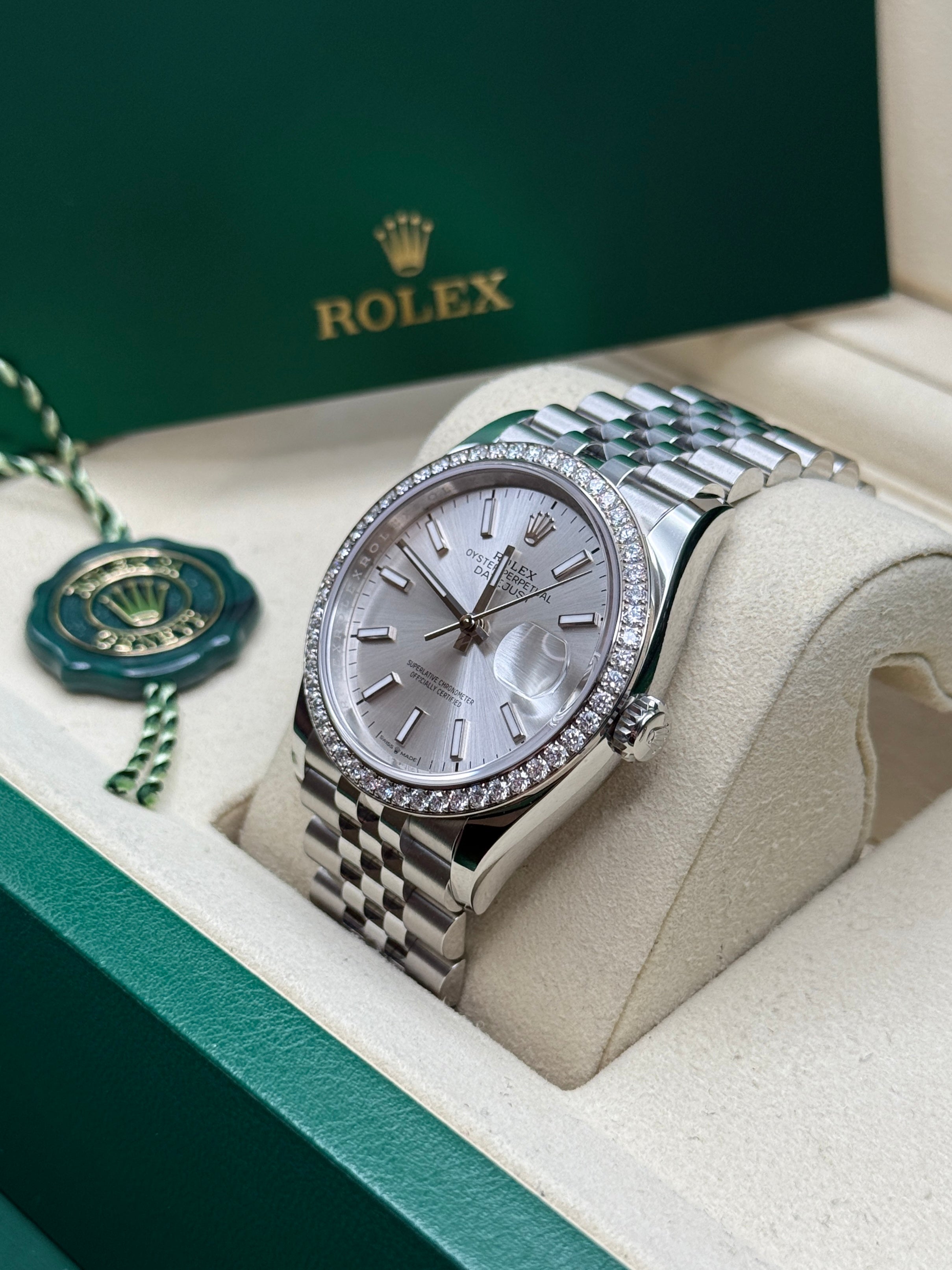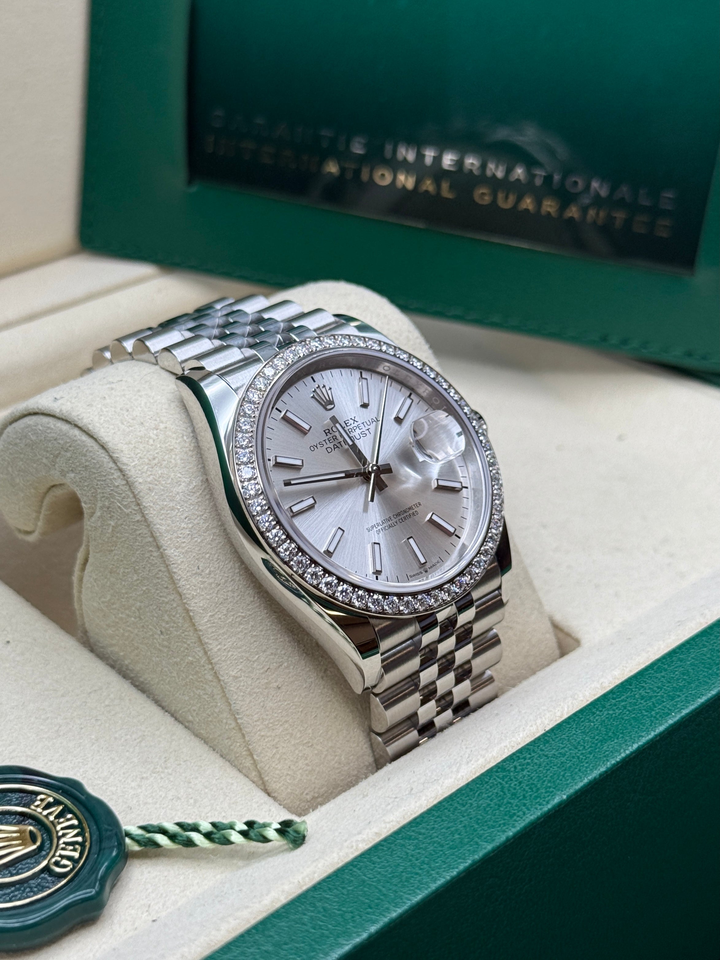 Rolex’s Datejust is the archetype of the classic watch thanks to functions and aesthetics that never go out of fashion. Launched in 1945, it was the first self-winding waterproof chronometer wristwatch to display the date in a window at 3 o’clock on the dial, and consolidated all the major innovations that Rolex had contributed to the modern wristwatch until then. The Datejust has spanned eras while retaining the enduring aesthetic characteristics that make it so instantly recognizable. A paragon of robustness and elegance, the Oyster case of the Datejust 36 is guaranteed waterproof to a depth of 100 meters (330 feet) and is equipped with calibre 3235, a movement entirely developed and manufactured by Rolex.