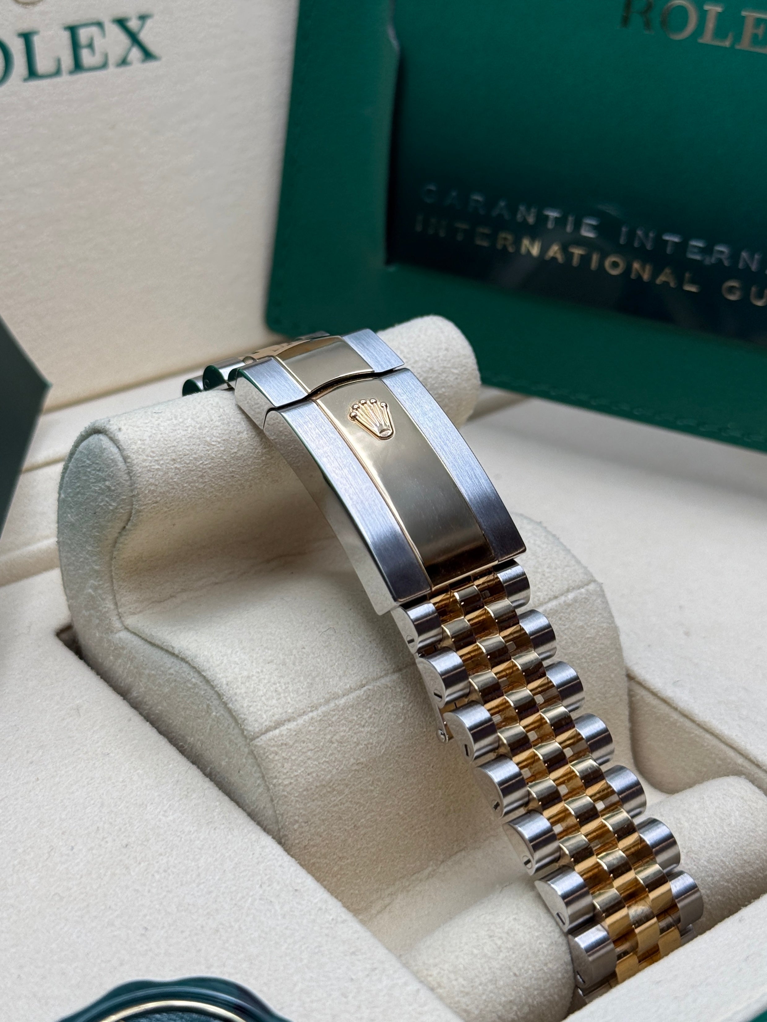 Rolex’s Datejust is the archetype of the classic watch thanks to functions and aesthetics that never go out of fashion. Launched in 1945, it was the first self-winding waterproof chronometer wristwatch to display the date in a window at 3 o’clock on the dial, and consolidated all the major innovations that Rolex had contributed to the modern wristwatch until then. The Datejust has spanned eras while retaining the enduring aesthetic characteristics that make it so instantly recognizable. A paragon of robustness and elegance, the Oyster case of the Datejust 36 is guaranteed waterproof to a depth of 100 meters (330 feet) and is equipped with calibre 3235, a movement entirely developed and manufactured by Rolex.