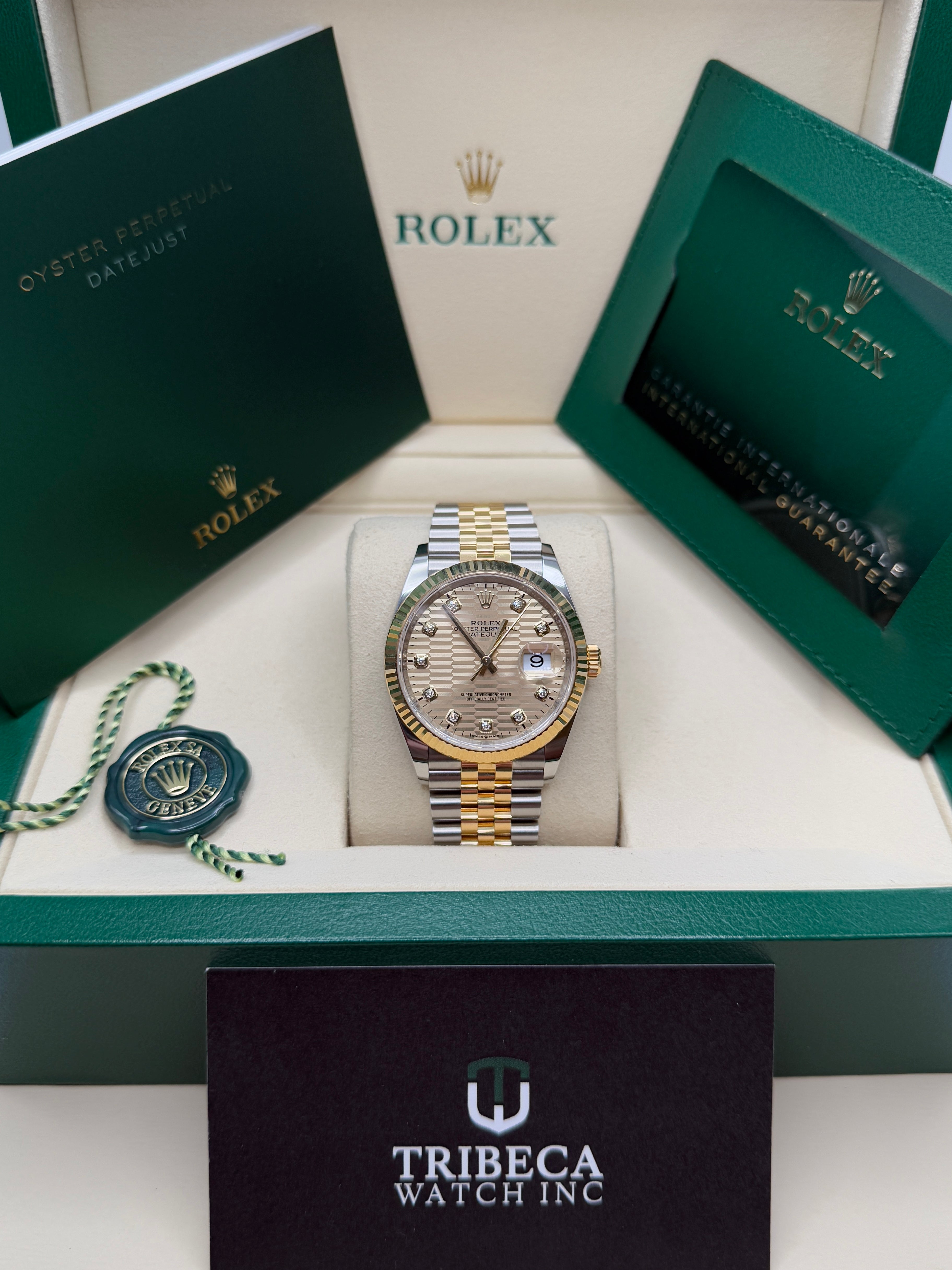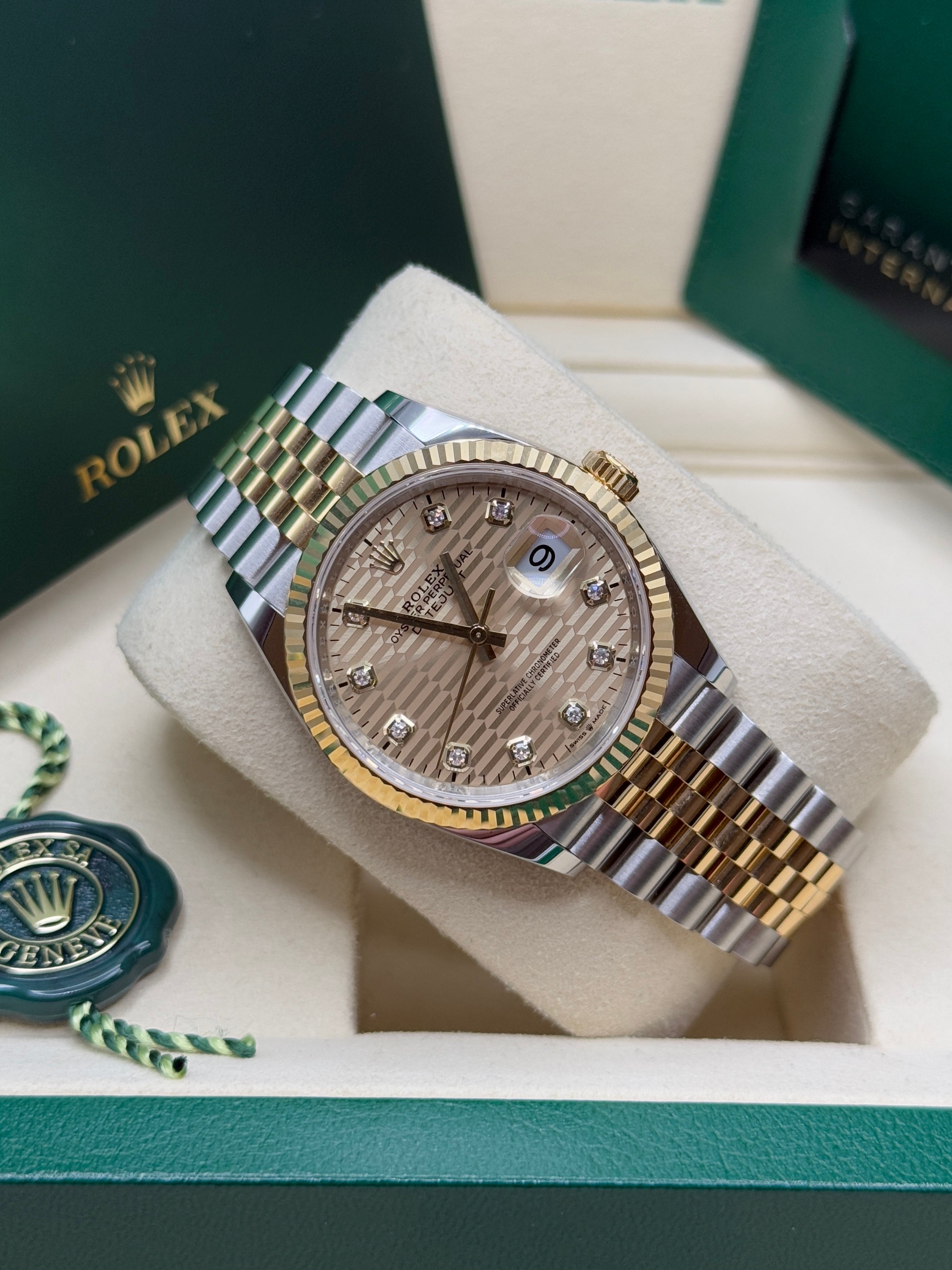 Oystersteel & Yellow Gold | Jubilee Bracelet | Golden Motif Diamond Dial | Fluted Bezel | 36.0mm