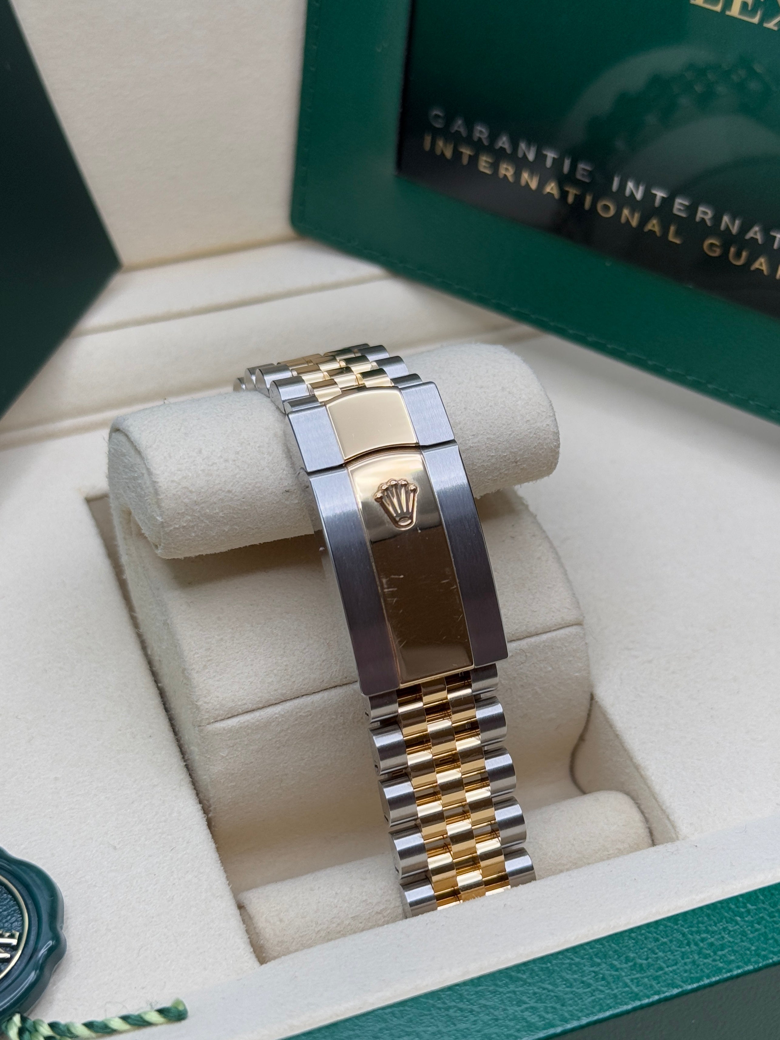 Rolex’s Datejust is the archetype of the classic watch thanks to functions and aesthetics that never go out of fashion. Launched in 1945, it was the first self-winding waterproof chronometer wristwatch to display the date in a window at 3 o’clock on the dial, and consolidated all the major innovations that Rolex had contributed to the modern wristwatch until then. The Datejust has spanned eras while retaining the enduring aesthetic characteristics that make it so instantly recognizable. A paragon of robustness and elegance, the Oyster case of the Datejust 36 is guaranteed waterproof to a depth of 100 meters (330 feet) and is equipped with calibre 3235, a movement entirely developed and manufactured by Rolex.