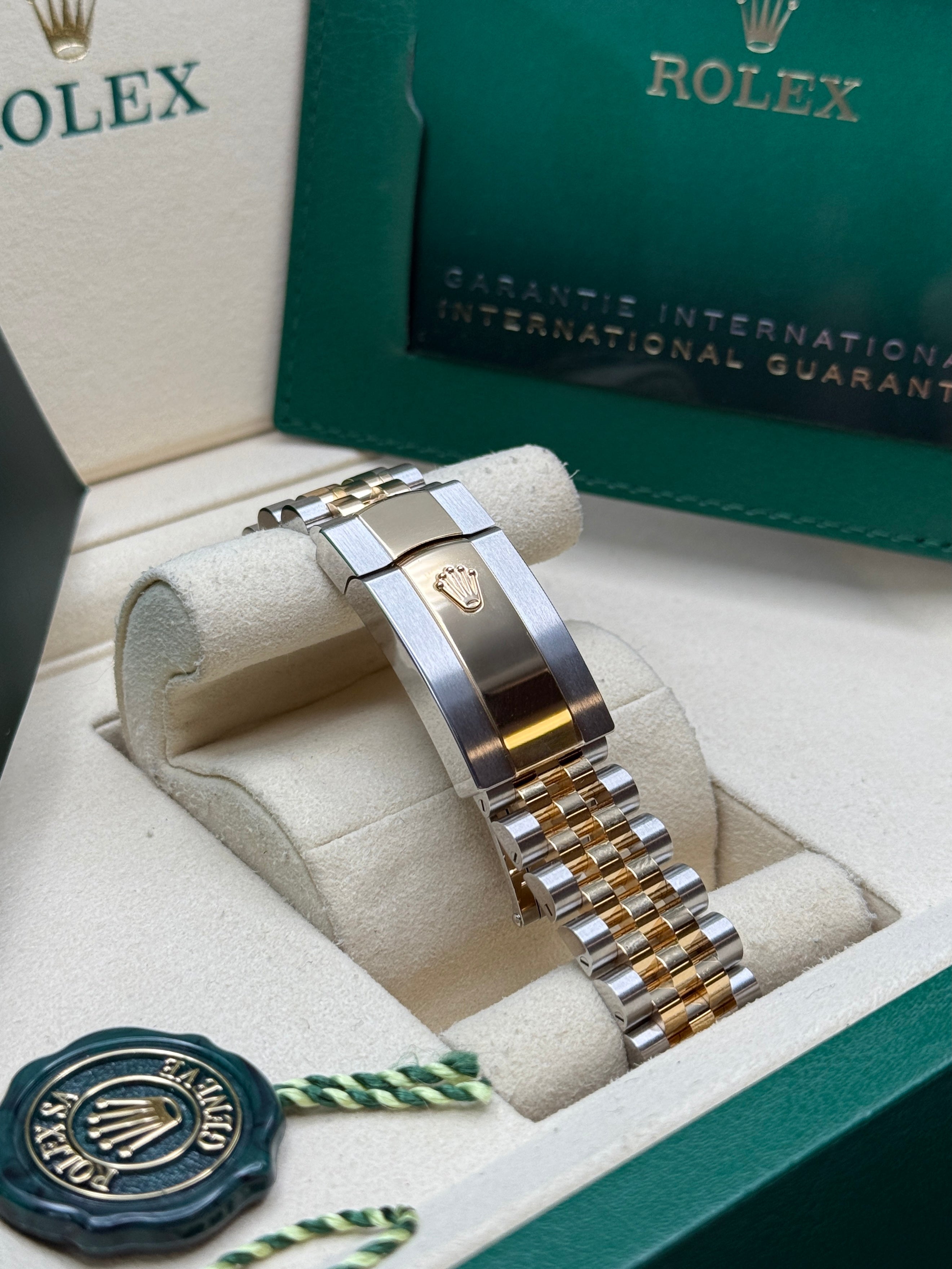 Rolex’s Datejust is the archetype of the classic watch thanks to functions and aesthetics that never go out of fashion. Launched in 1945, it was the first self-winding waterproof chronometer wristwatch to display the date in a window at 3 o’clock on the dial, and consolidated all the major innovations that Rolex had contributed to the modern wristwatch until then. The Datejust has spanned eras while retaining the enduring aesthetic characteristics that make it so instantly recognizable. A paragon of robustness and elegance, the Oyster case of the Datejust 36 is guaranteed waterproof to a depth of 100 meters (330 feet) and is equipped with calibre 3235, a movement entirely developed and manufactured by Rolex.
