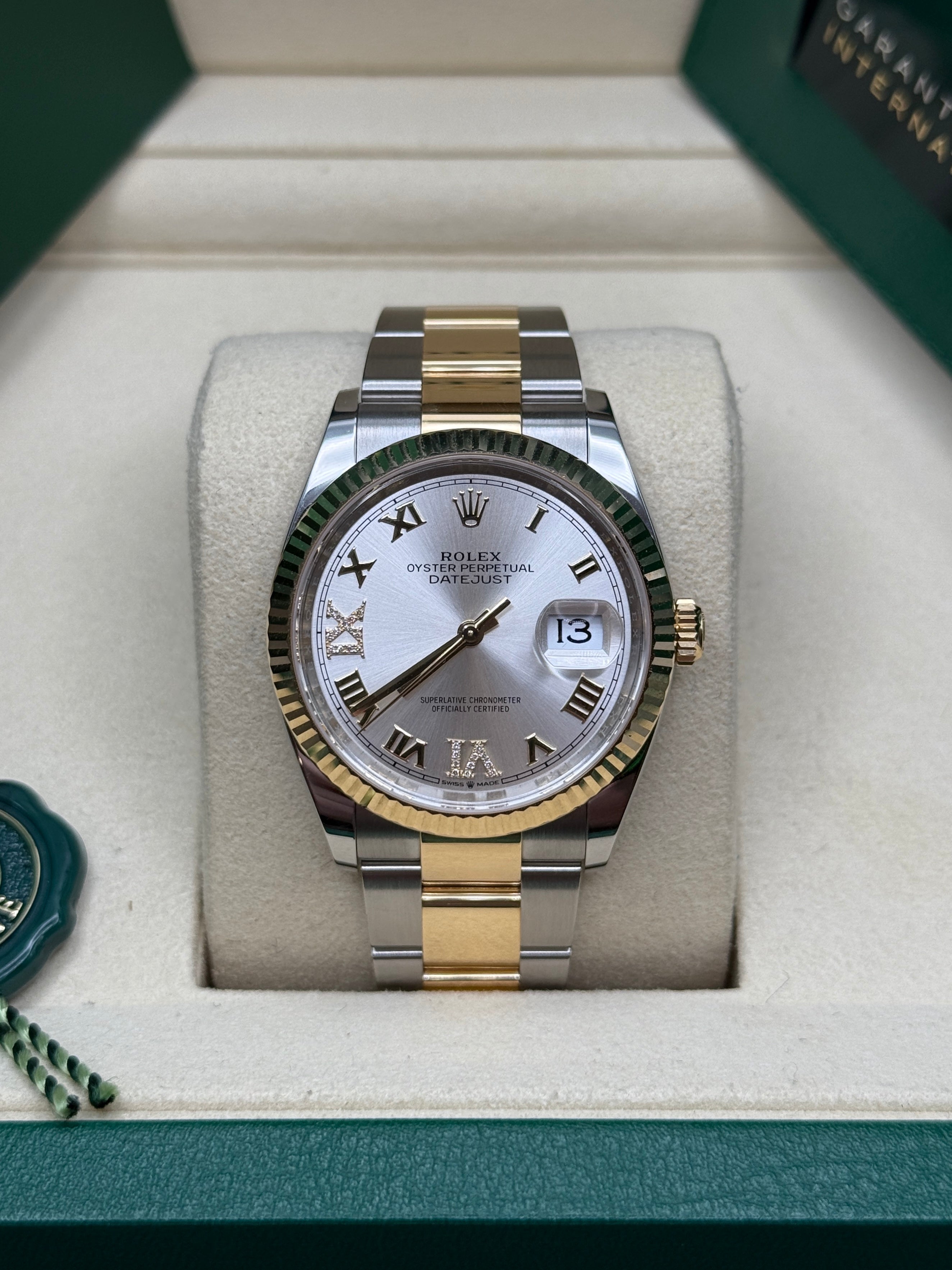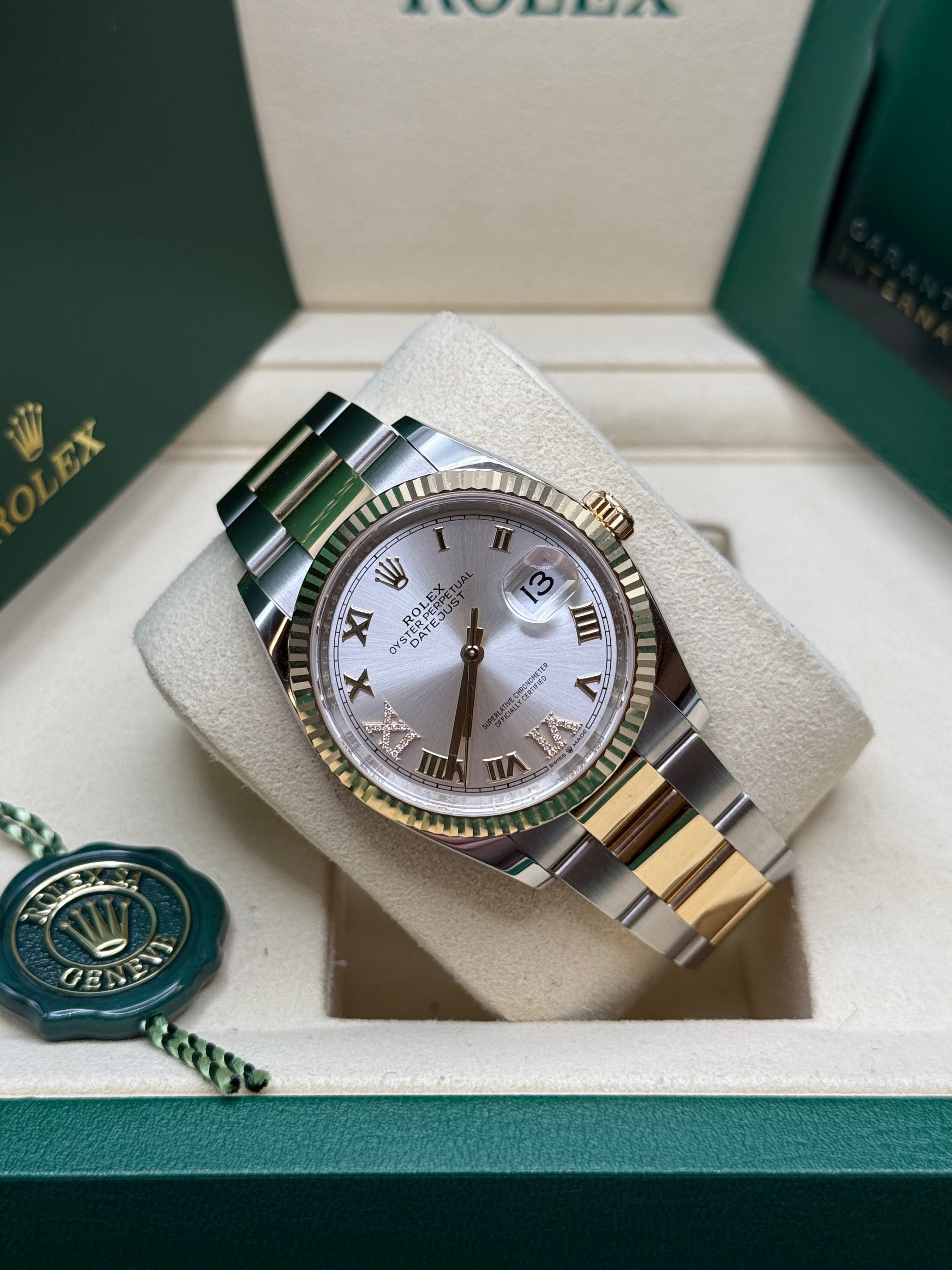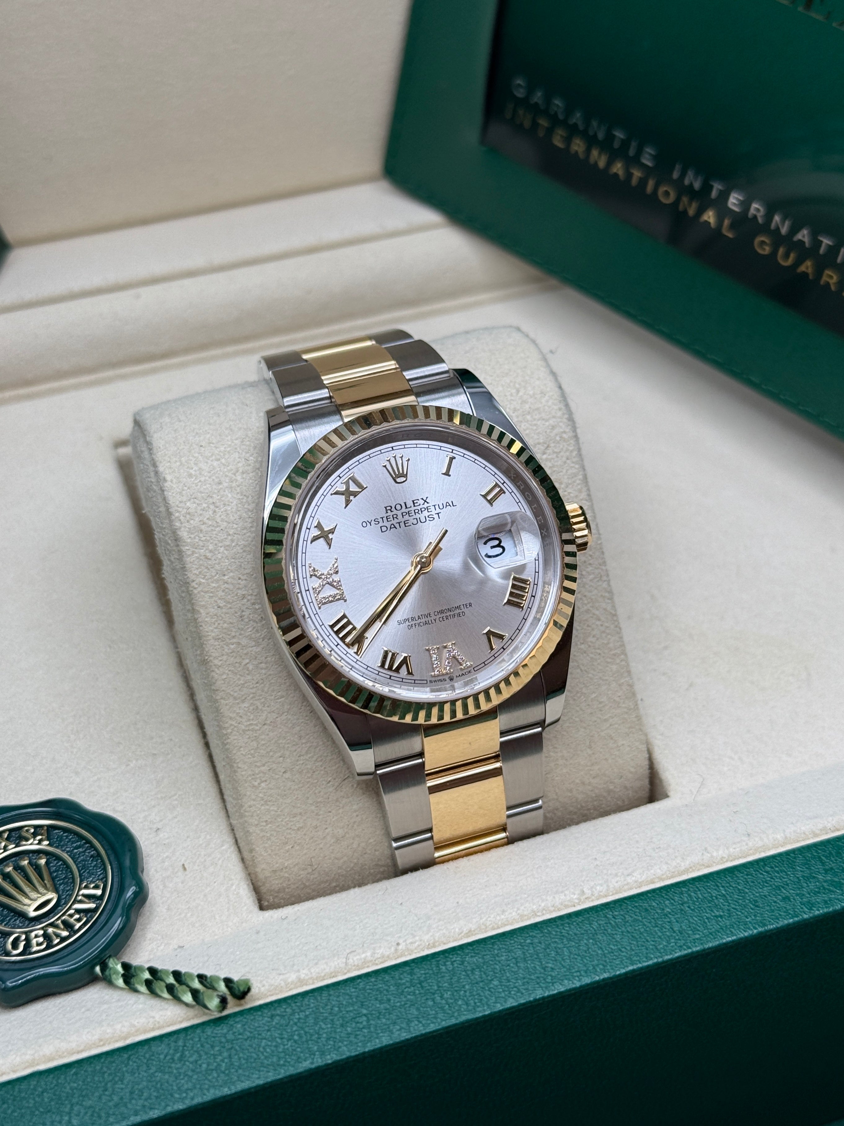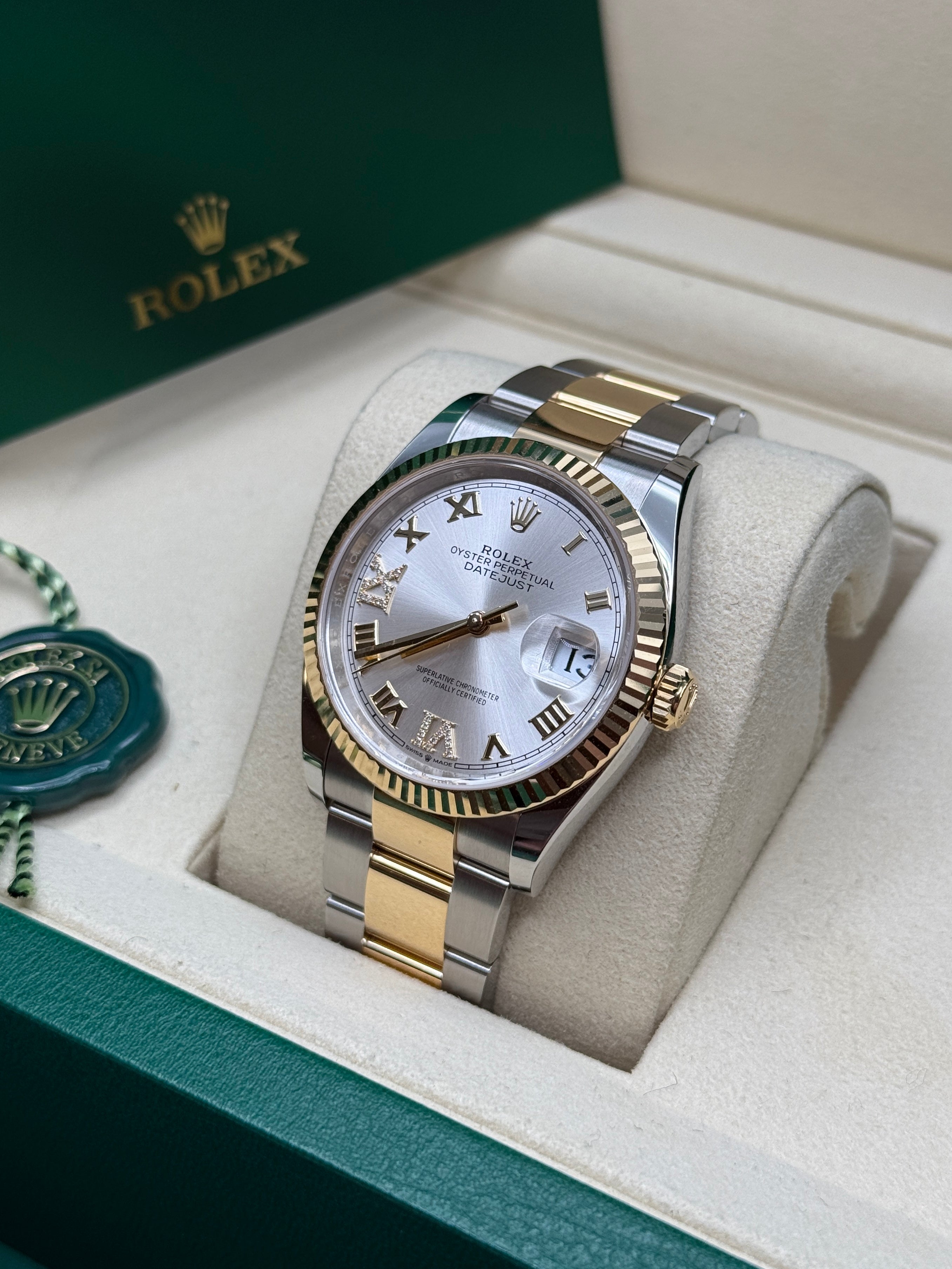 Datejust 36 Yellow Gold Two-Tone Silver Roman Diamond