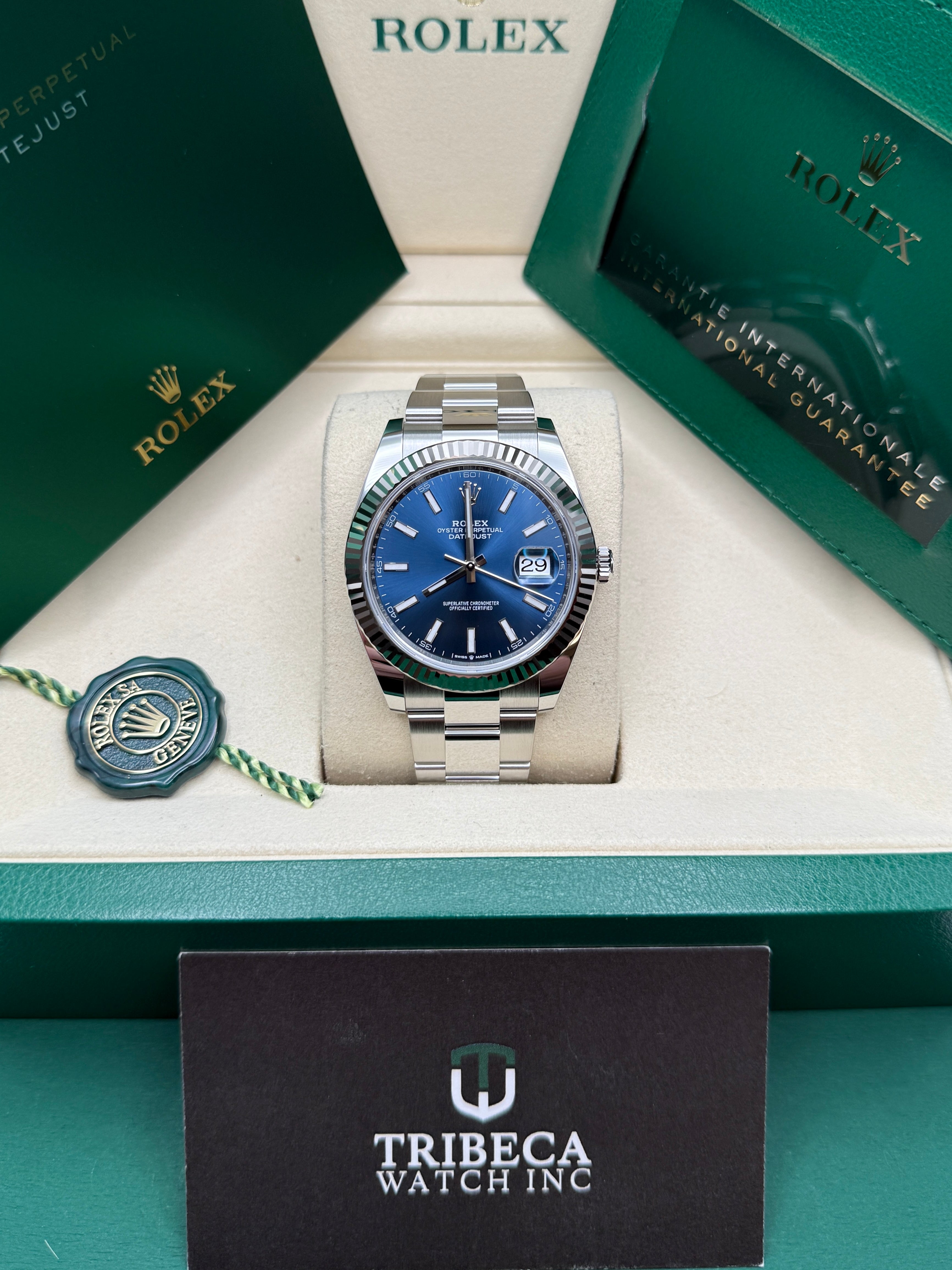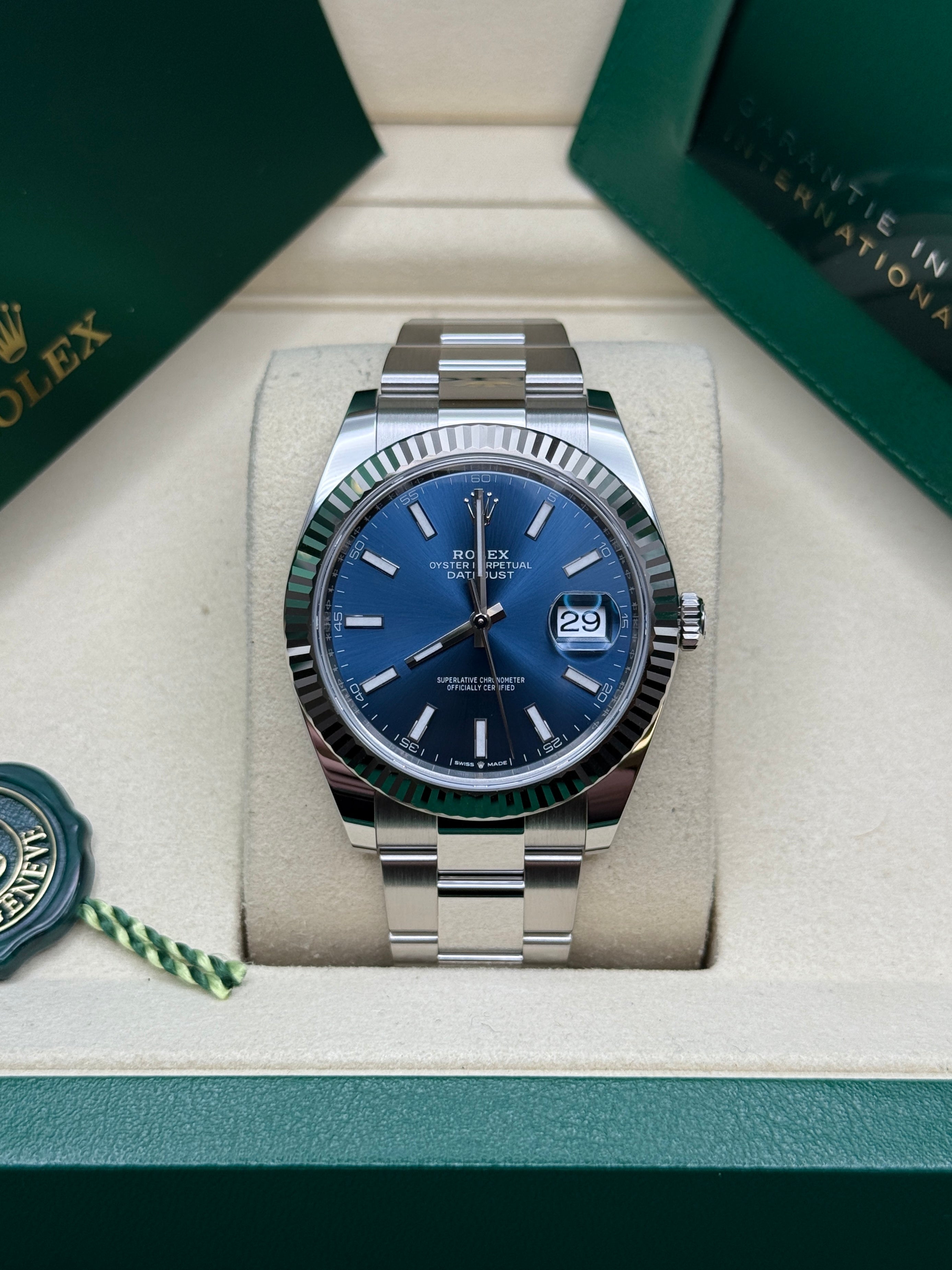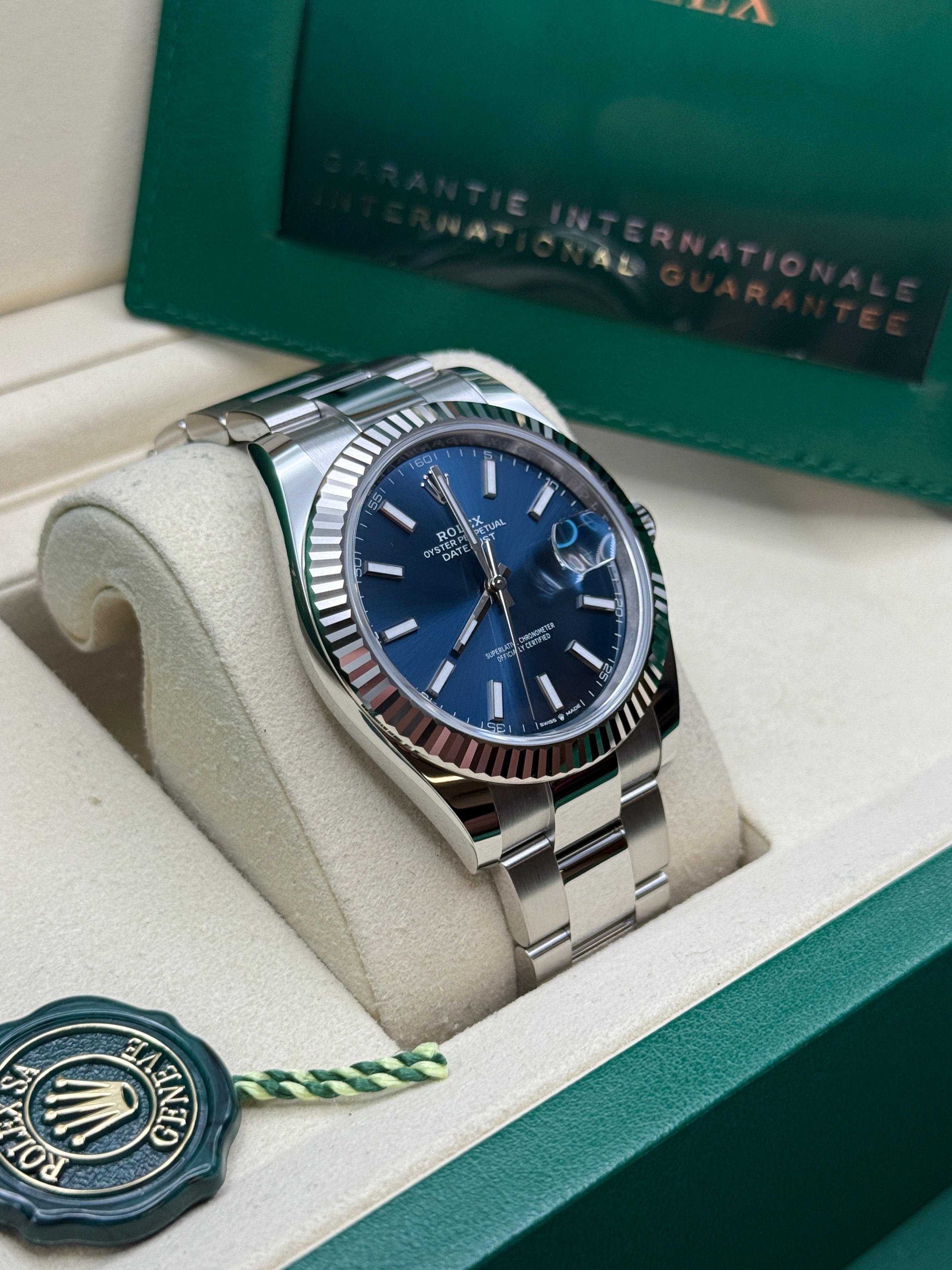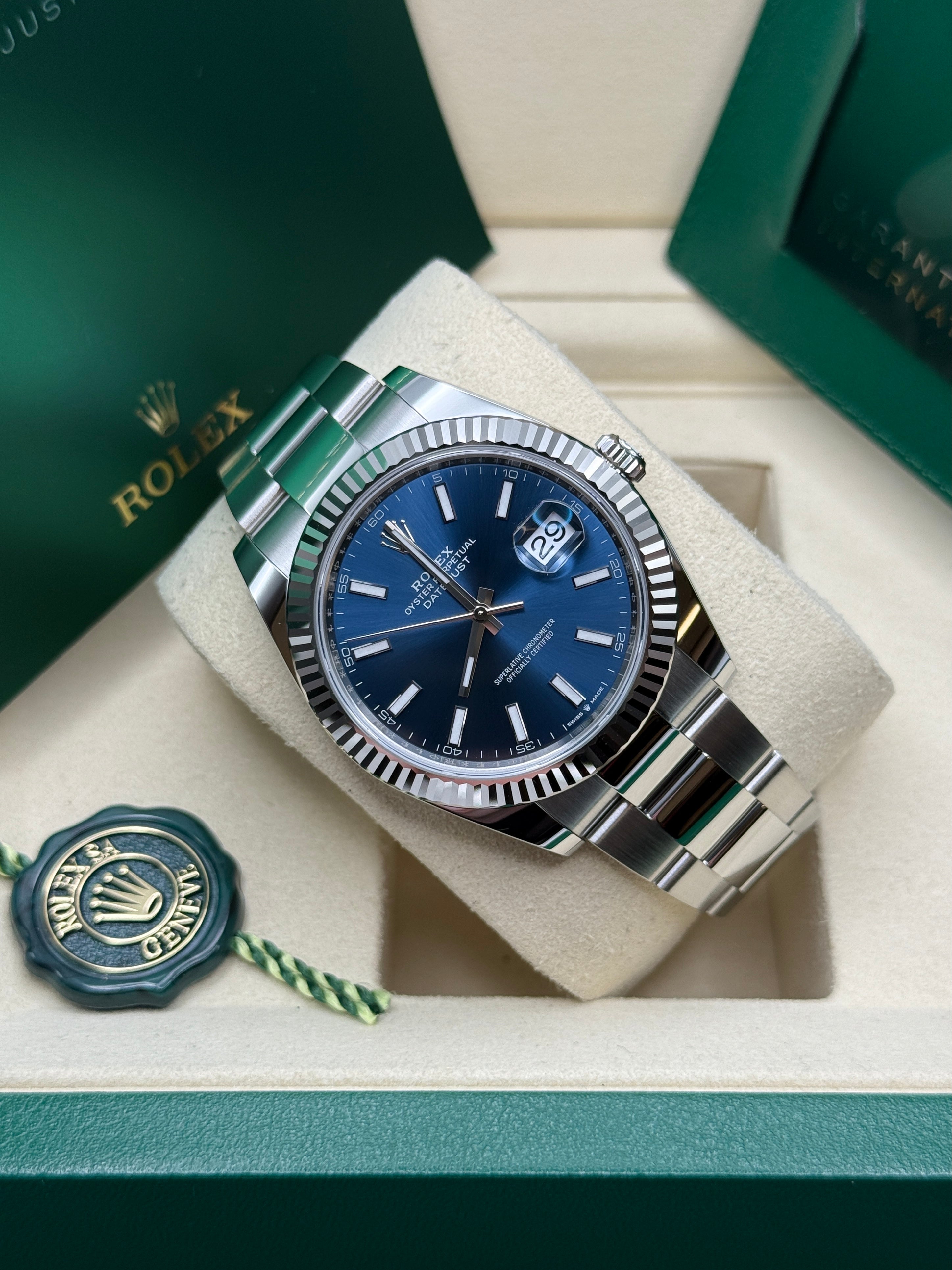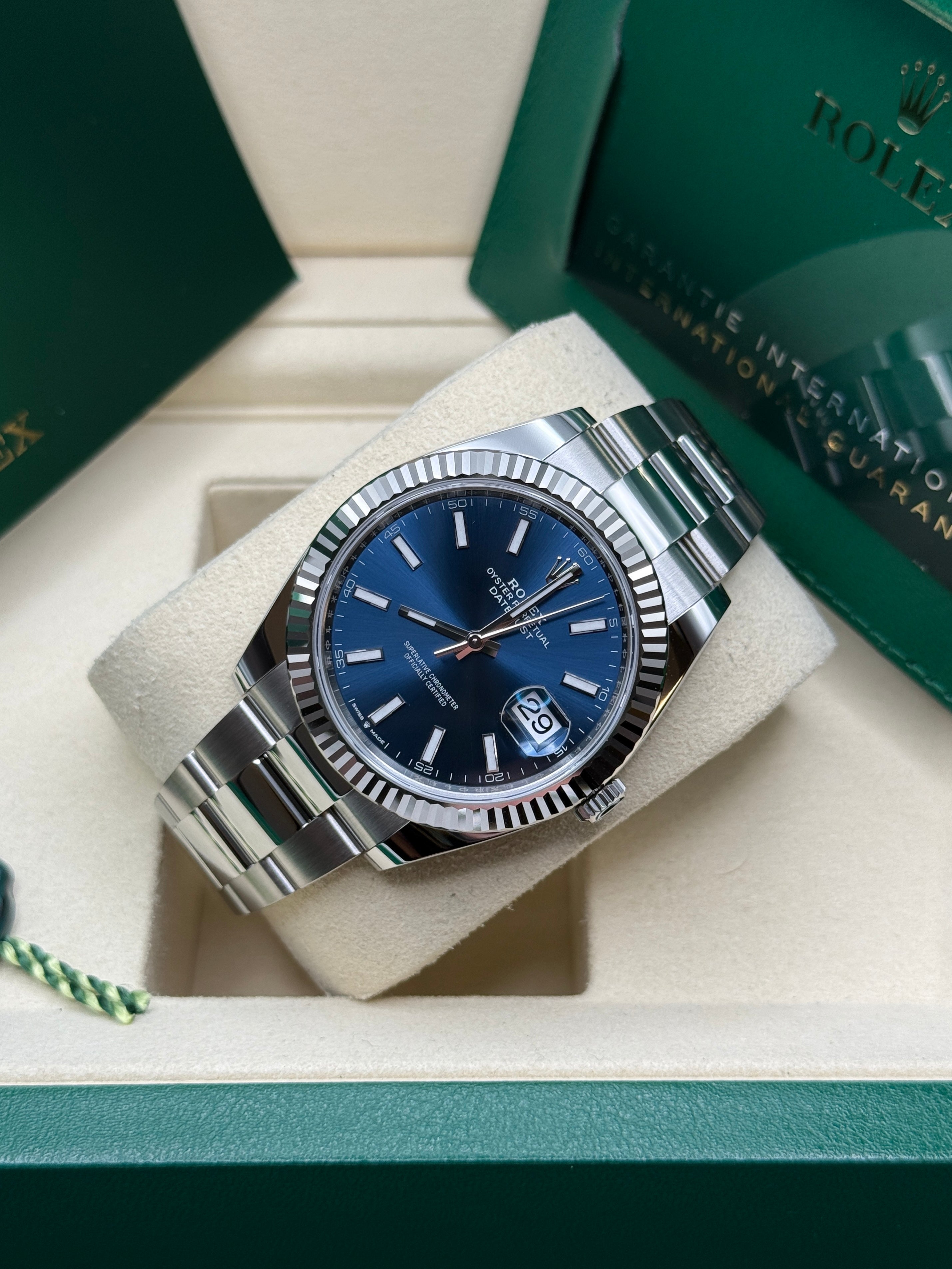 Oystersteel | Oyster Bracelet | Bright Blue Index Dial | Fluted Bezel | 41.0mm