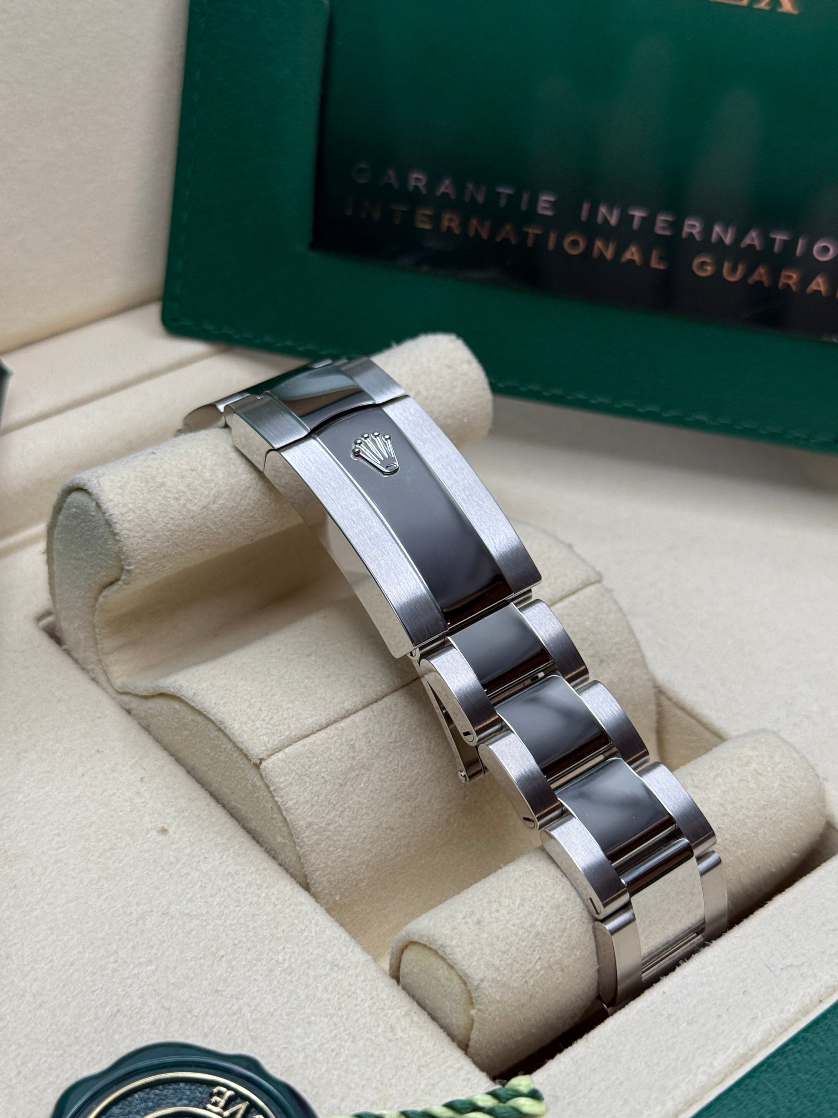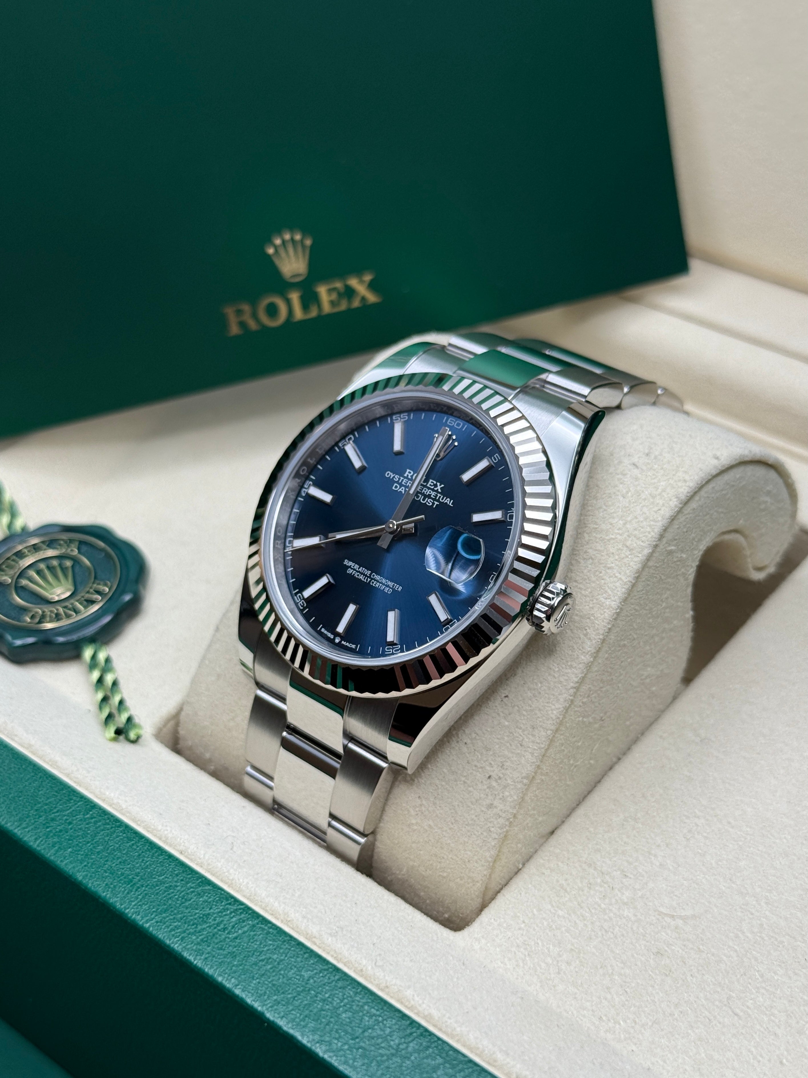 Rolex’s Datejust is the archetype of the classic watch thanks to functions and aesthetics that never go out of fashion. Launched in 1945, it was the first self-winding waterproof chronometer wristwatch to display the date in a window at 3 o’clock on the dial, and consolidated all the major innovations that Rolex had contributed to the modern wristwatch until then. The Datejust has spanned eras while retaining the enduring aesthetic characteristics that make it so instantly recognizable. A paragon of robustness and elegance, the Oyster case of the Datejust 41 is guaranteed waterproof to a depth of 100 meters (330 feet) and is equipped with calibre 3235, a movement entirely developed and manufactured by Rolex.