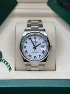 Rolex’s Datejust is the archetype of the classic watch thanks to functions and aesthetics that never go out of fashion. Launched in 1945, it was the first self-winding waterproof chronometer wristwatch to display the date in a window at 3 o’clock on the dial, and consolidated all the major innovations that Rolex had contributed to the modern wristwatch until then. The Datejust has spanned eras while retaining the enduring aesthetic characteristics that make it so instantly recognizable. A paragon of robustness and elegance, the Oyster case of the Datejust 36 is guaranteed waterproof to a depth of 100 meters (330 feet) and is equipped with calibre 3235, a movement entirely developed and manufactured by Rolex.