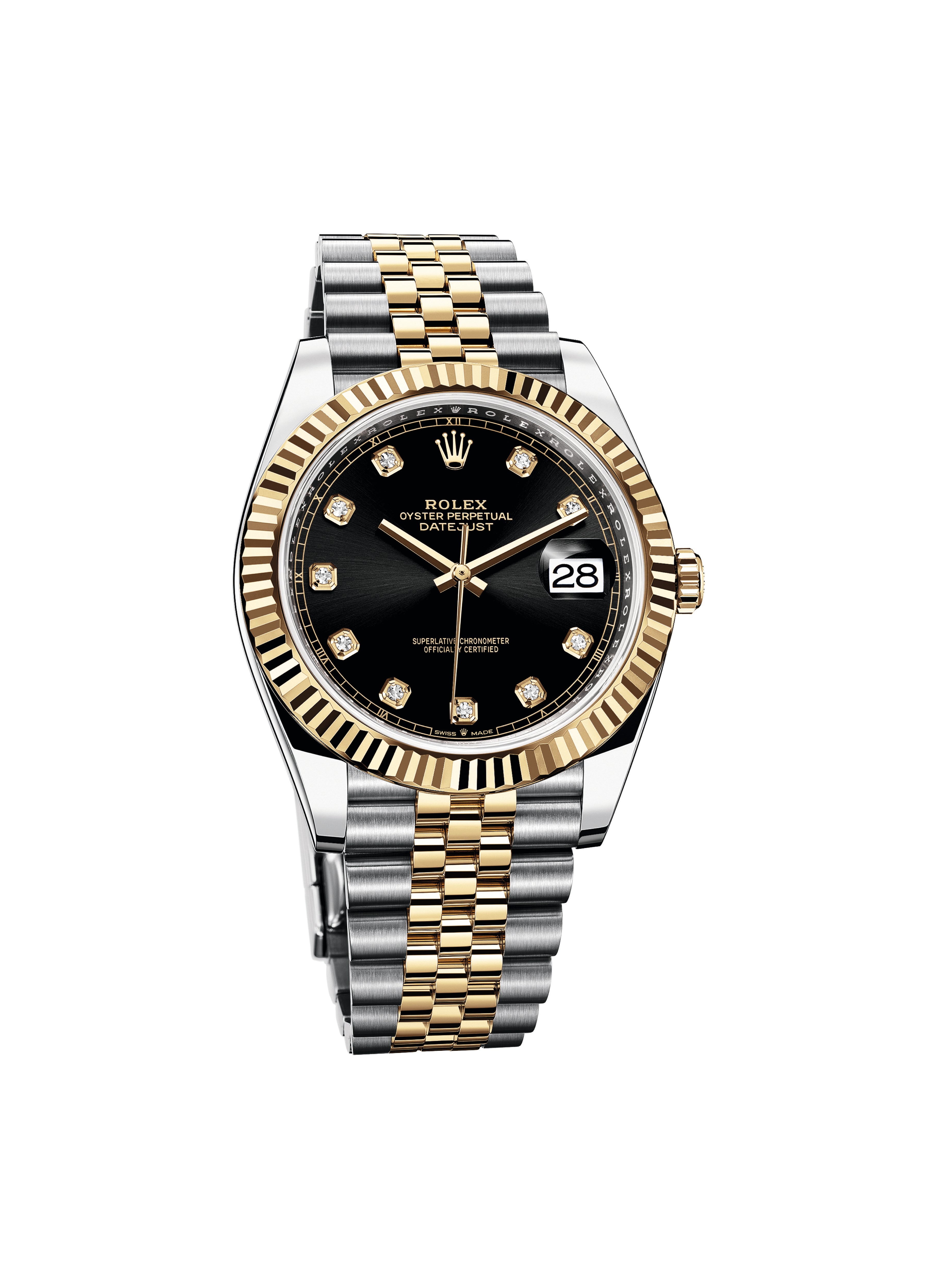 Oystersteel & Yellow Gold | Jubilee Bracelet | Bright Black Diamond Dial | Fluted Bezel | 41.0mm