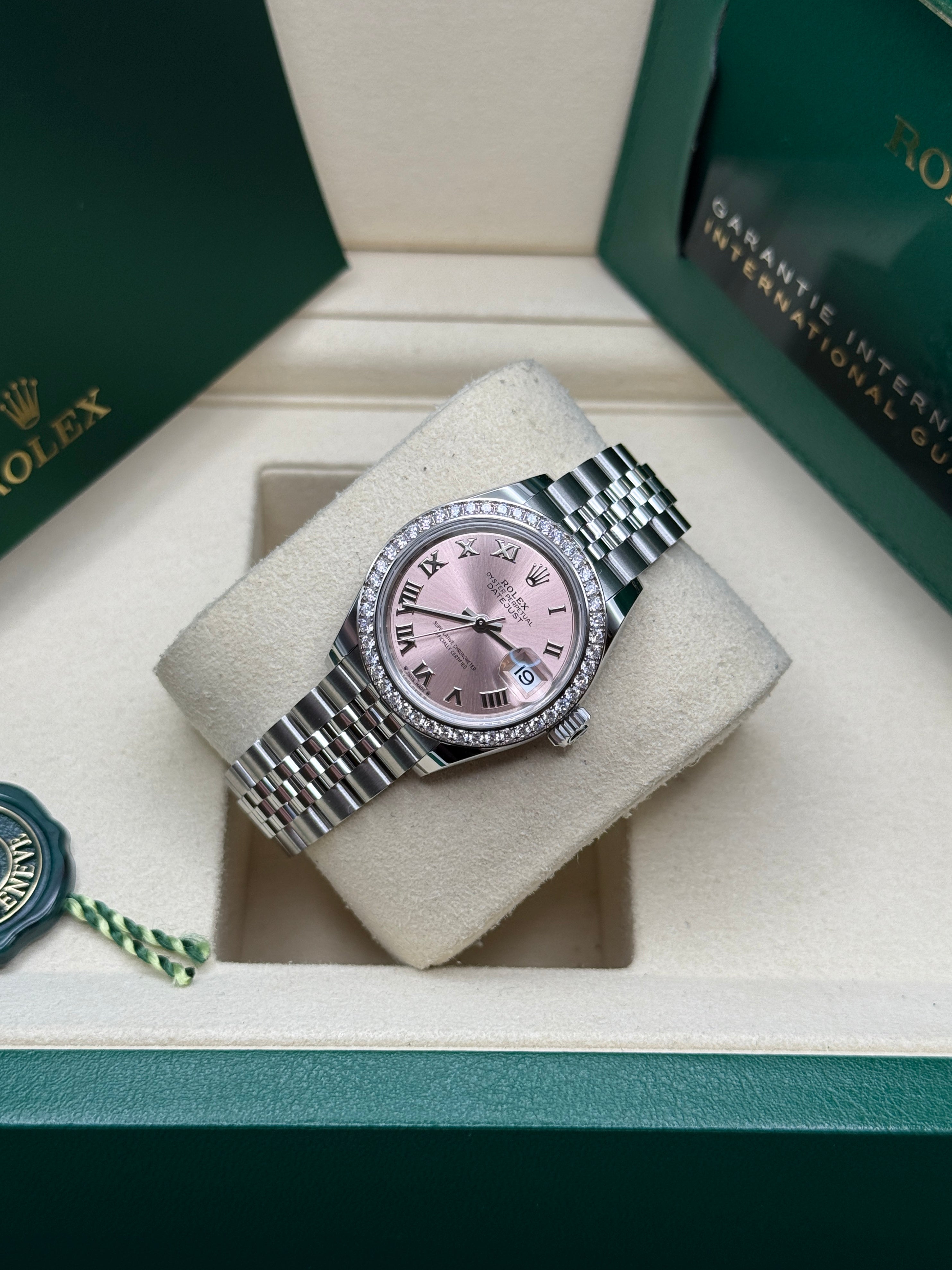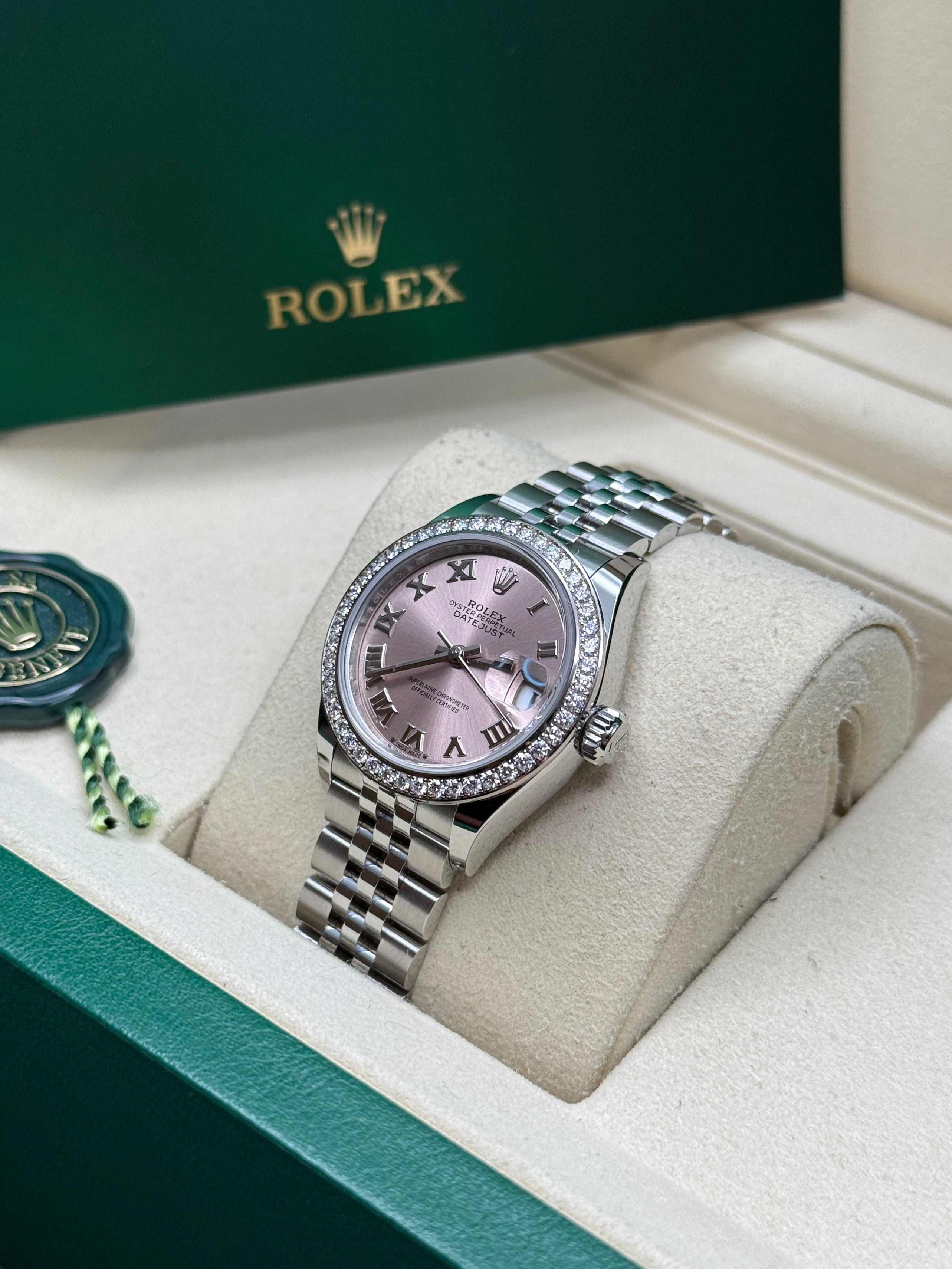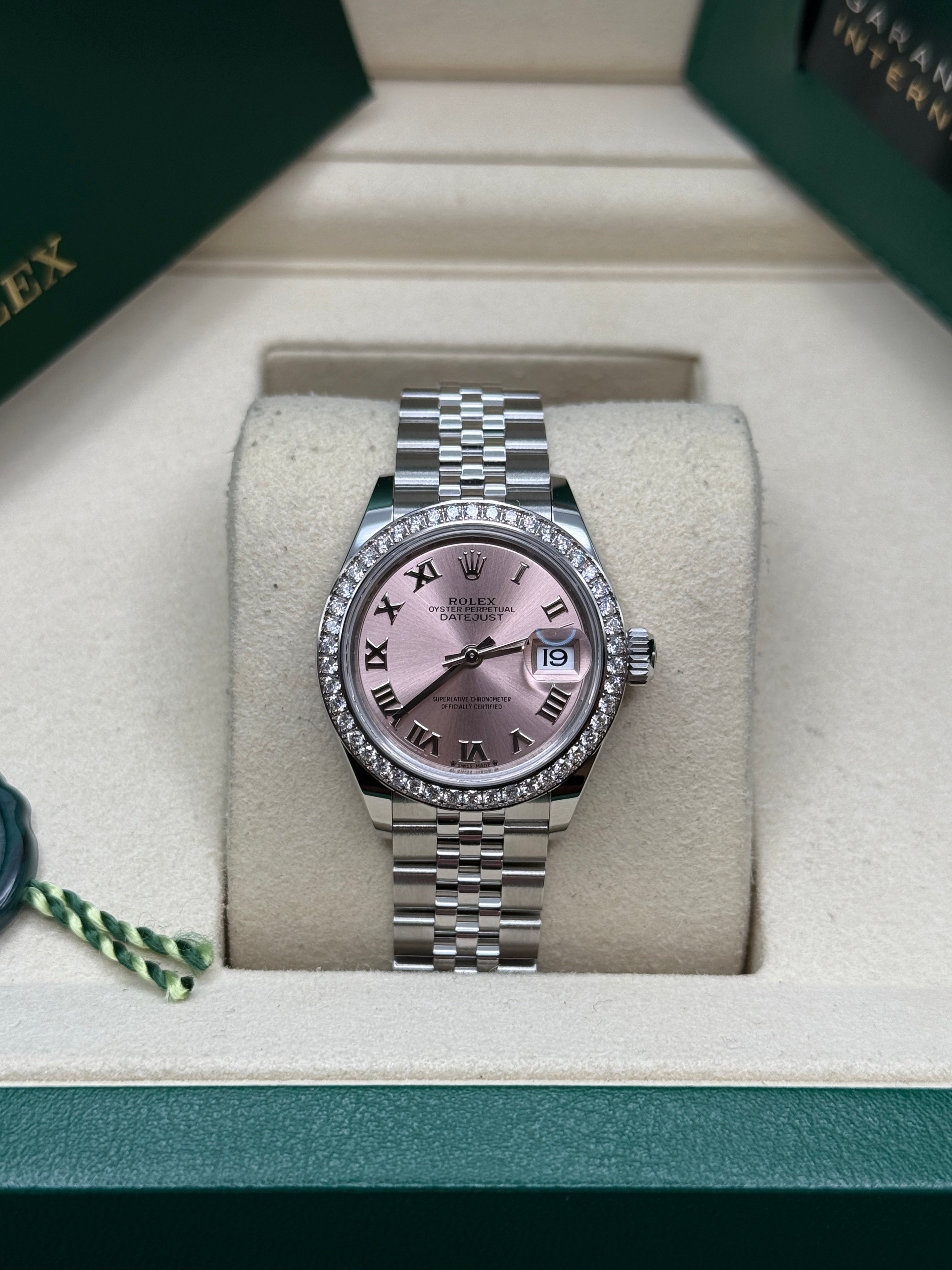 The classic Rolex feminine watch, the Lady-Datejust concentrates all the attributes of the Datejust, the brand’s emblematic watch that has been a byword for style and technical performance ever since its launch in 1945. The women’s version of this date chronometer, the Lady-Datejust, which first appeared in 1957, carries the elegance of the Datejust in a small 28 mm size particularly suited to a slender wrist. The Lady-Datejust upholds the hallmark features of the Datejust line, with a self-winding, waterproof Oyster case that is robust yet graceful. Its calibre 2236 movement, crafted entirely by Rolex, ensures precision and performance. The Lady-Datejust is guaranteed waterproof to a depth of 100 meters (330 feet), making it a resilient and elegant choice for any occasion.
