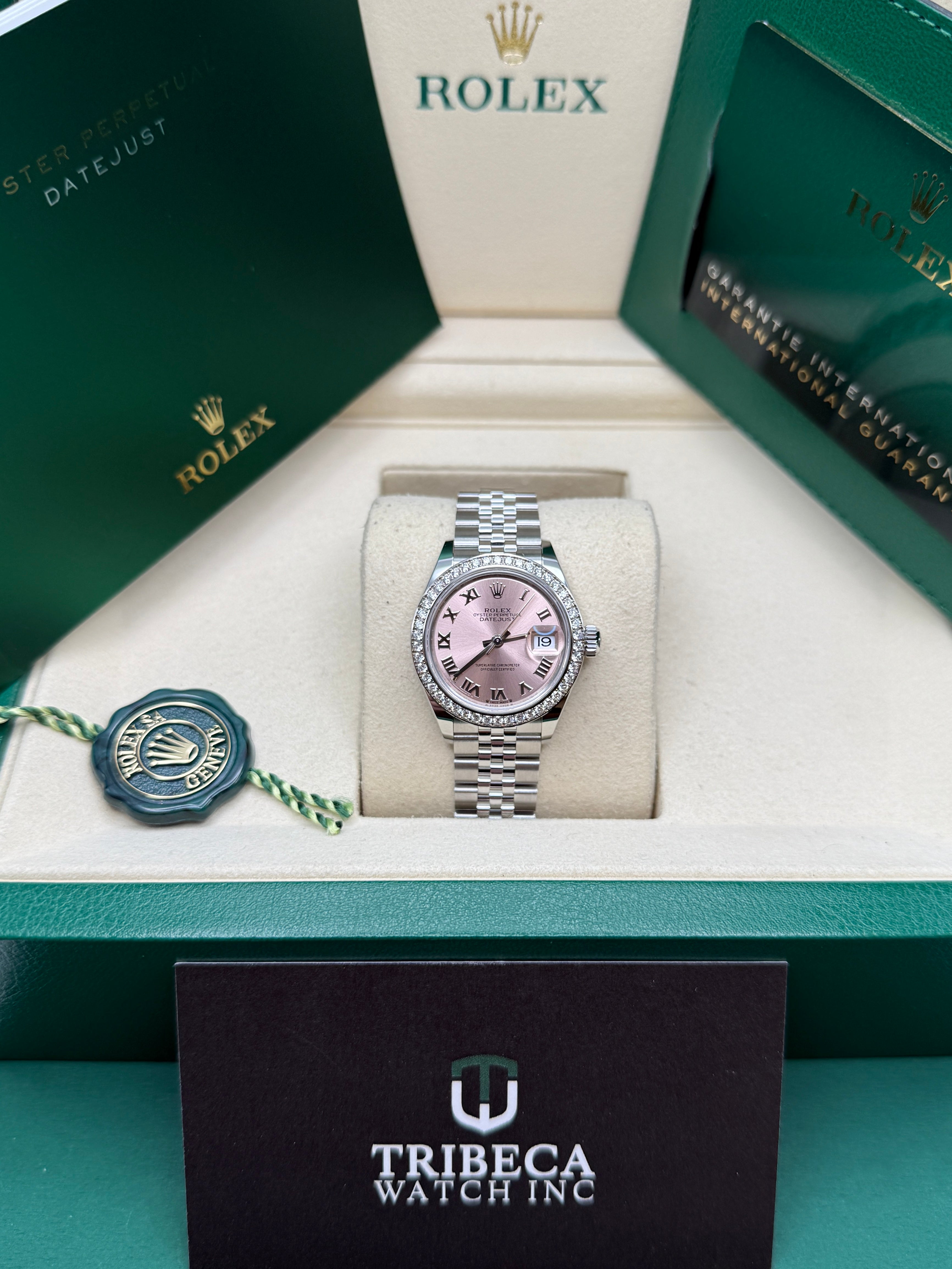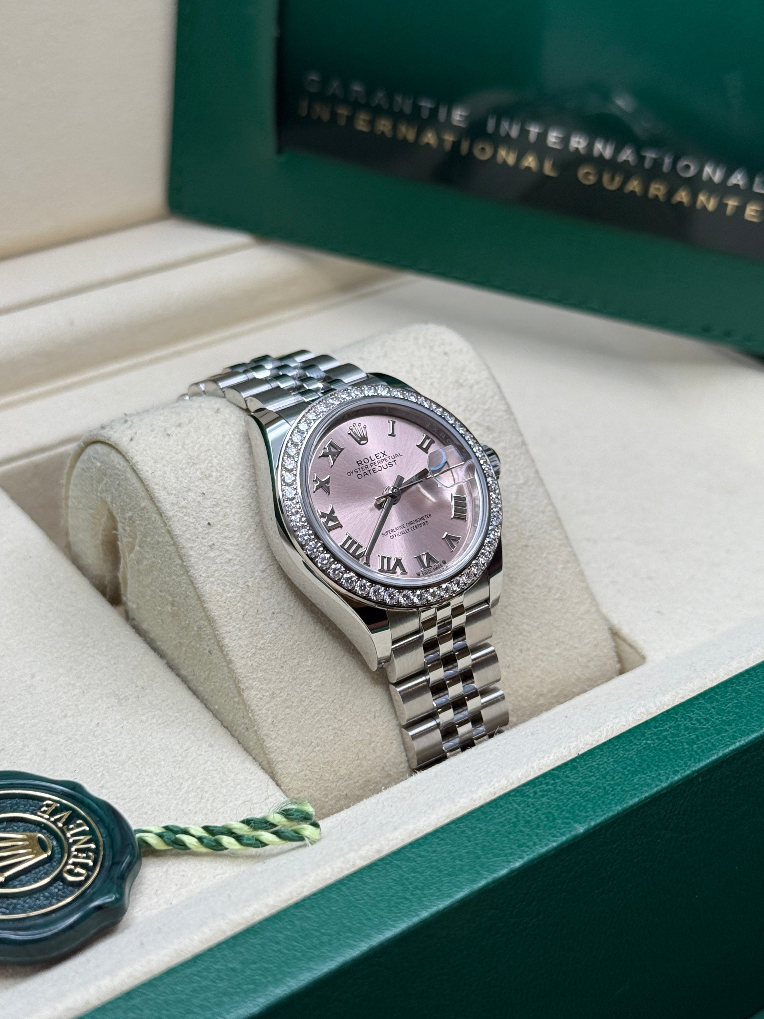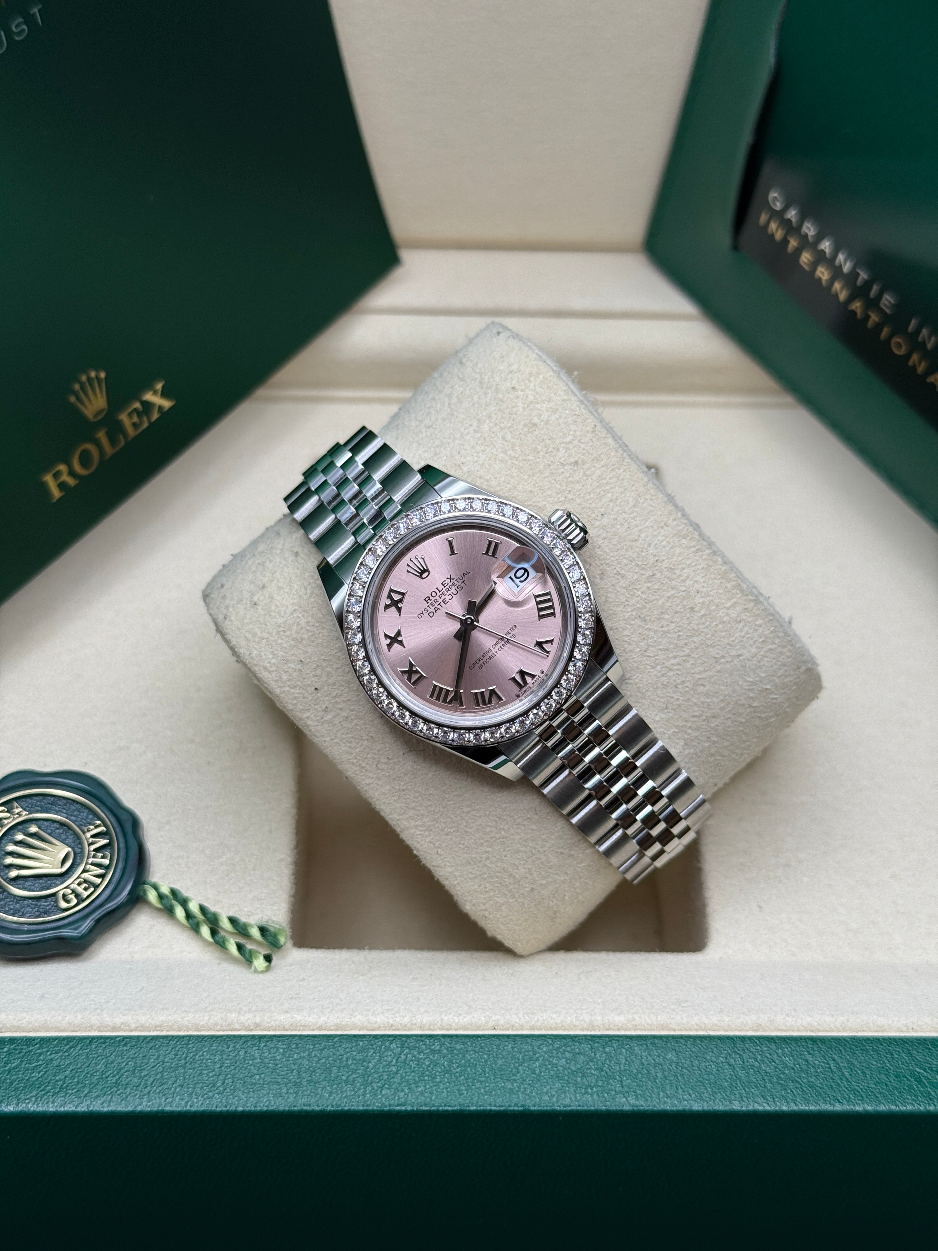 The classic Rolex feminine watch, the Lady-Datejust concentrates all the attributes of the Datejust, the brand’s emblematic watch that has been a byword for style and technical performance ever since its launch in 1945. The women’s version of this date chronometer, the Lady-Datejust, which first appeared in 1957, carries the elegance of the Datejust in a small 28 mm size particularly suited to a slender wrist. The Lady-Datejust upholds the hallmark features of the Datejust line, with a self-winding, waterproof Oyster case that is robust yet graceful. Its calibre 2236 movement, crafted entirely by Rolex, ensures precision and performance. The Lady-Datejust is guaranteed waterproof to a depth of 100 meters (330 feet), making it a resilient and elegant choice for any occasion.