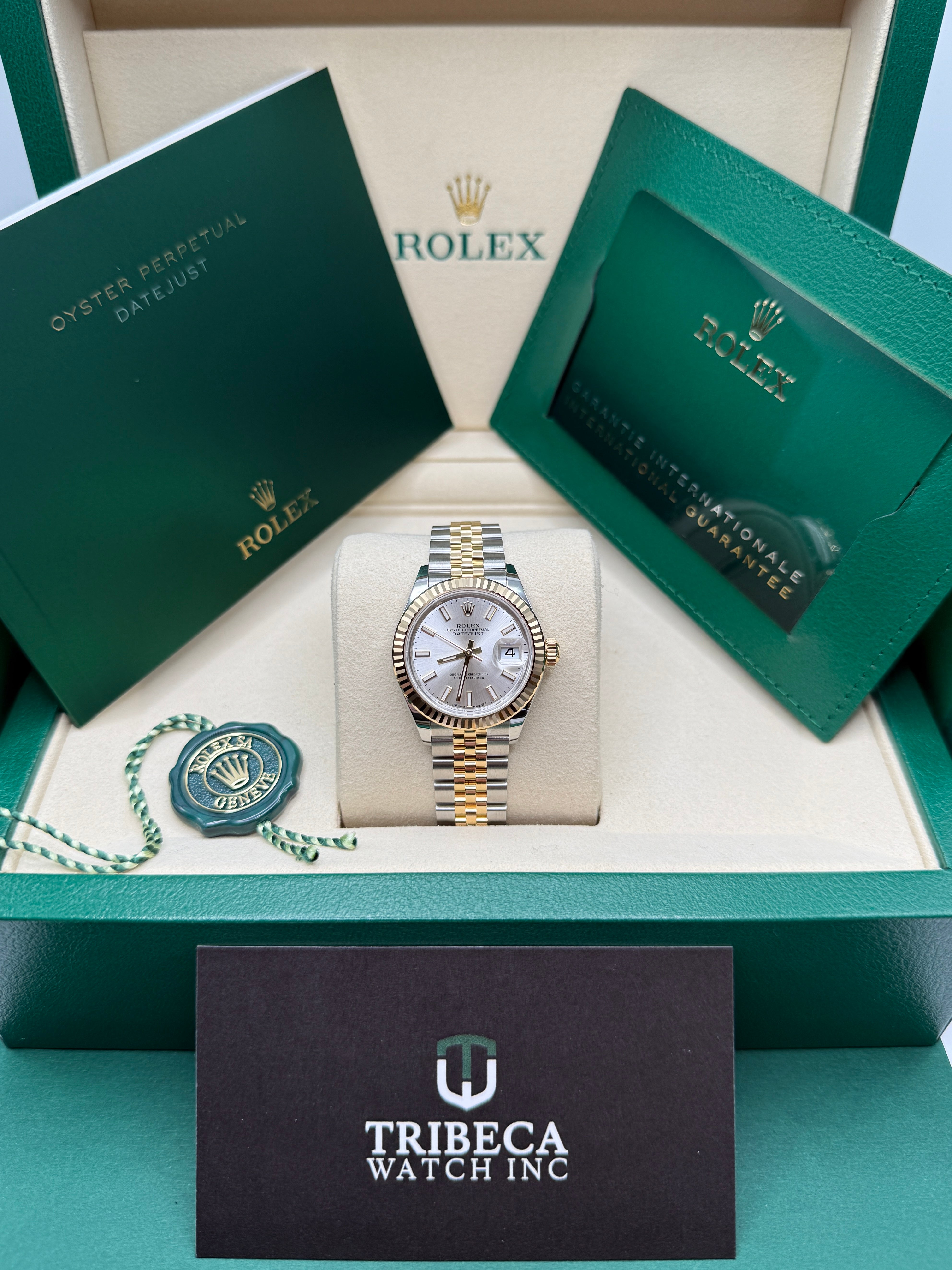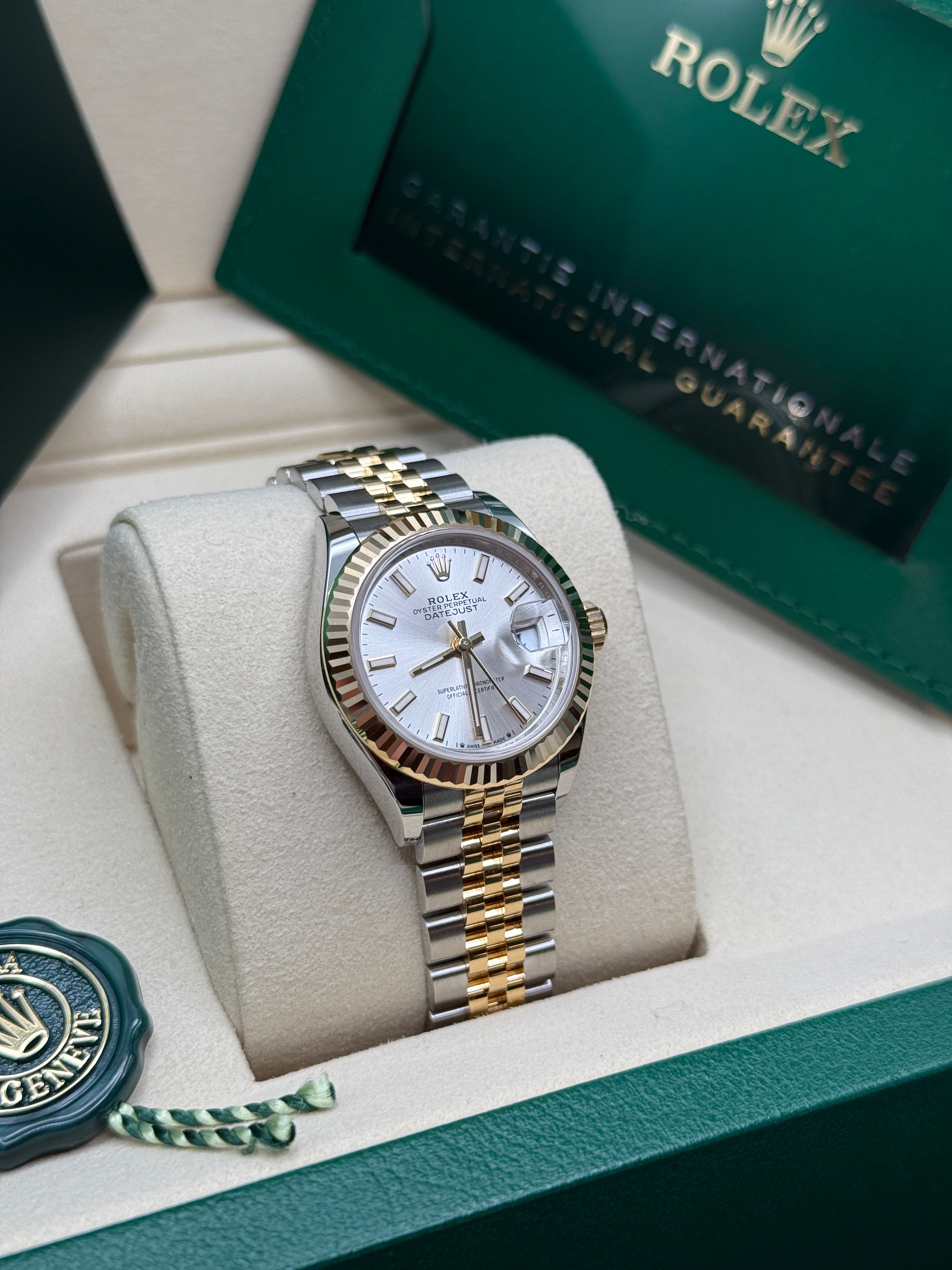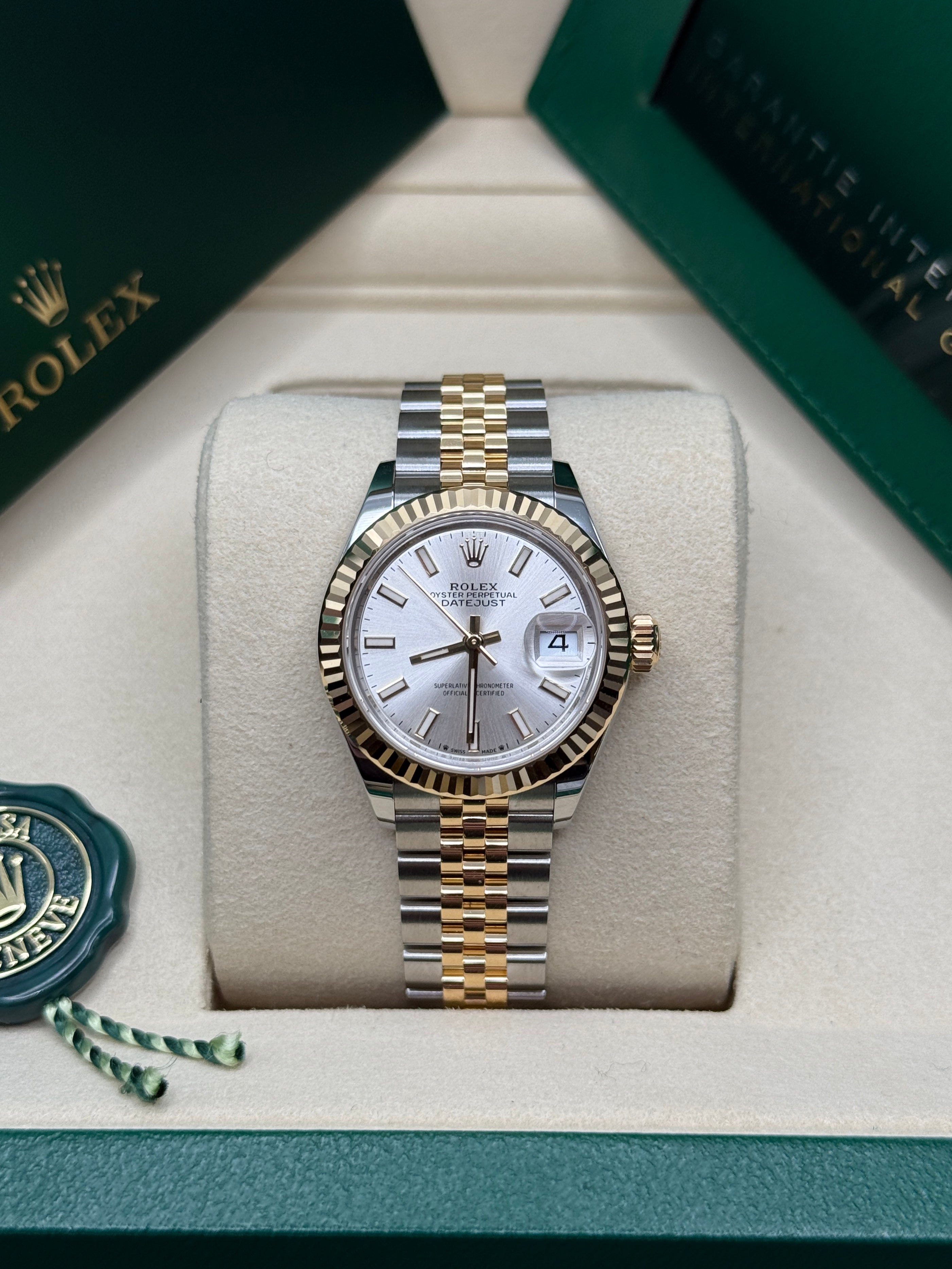 The classic Rolex feminine watch, the Lady-Datejust concentrates all the attributes of the Datejust, the brand’s emblematic watch that has been a byword for style and technical performance ever since its launch in 1945. The women’s version of this date chronometer, the Lady-Datejust, which first appeared in 1957, carries the elegance of the Datejust in a small 28 mm size particularly suited to a slender wrist. The Lady-Datejust upholds the hallmark features of the Datejust line, with a self-winding, waterproof Oyster case that is robust yet graceful. Its calibre 2236 movement, crafted entirely by Rolex, ensures precision and performance. The Lady-Datejust is guaranteed waterproof to a depth of 100 meters (330 feet), making it a resilient and elegant choice for any occasion.
