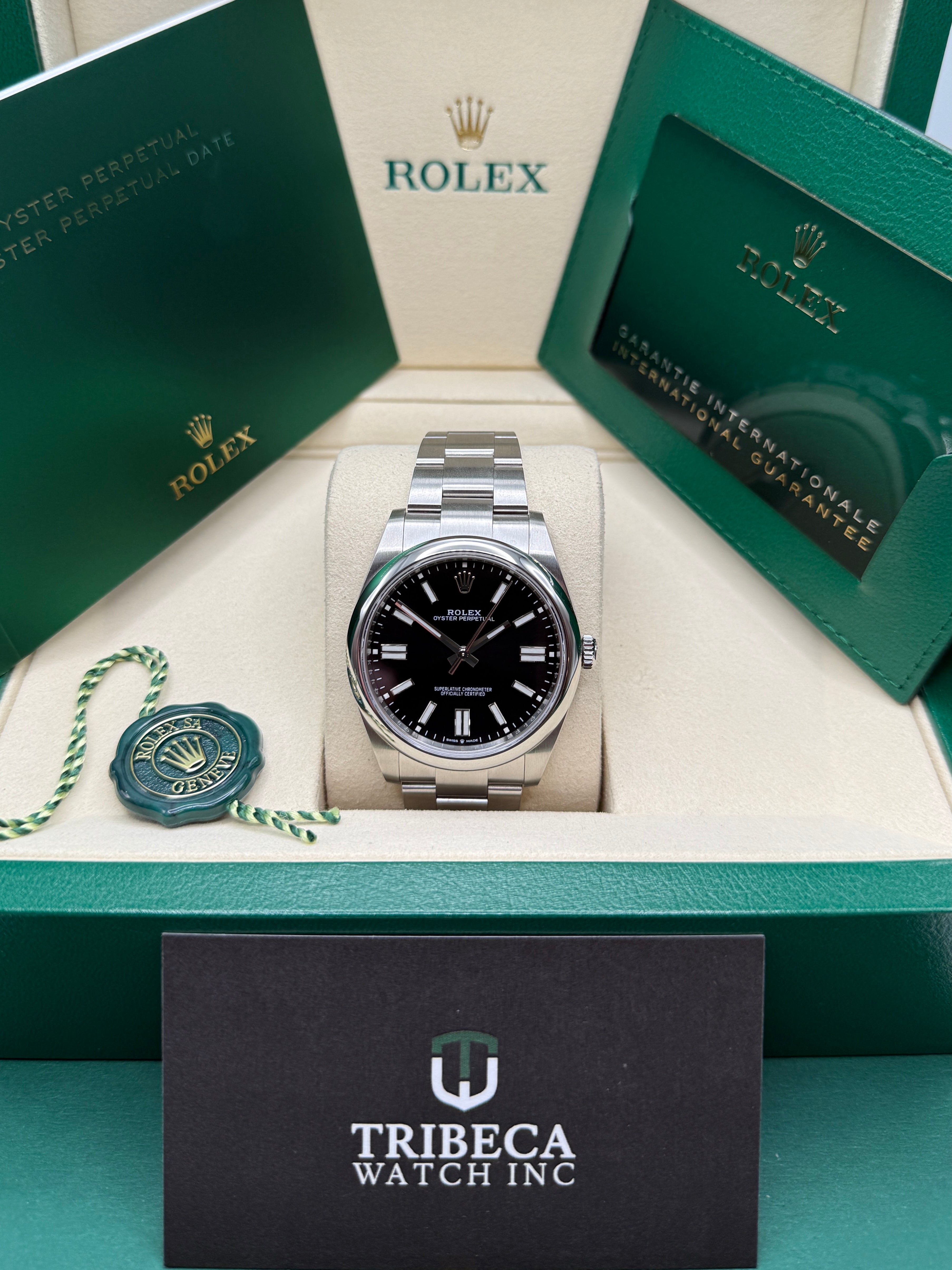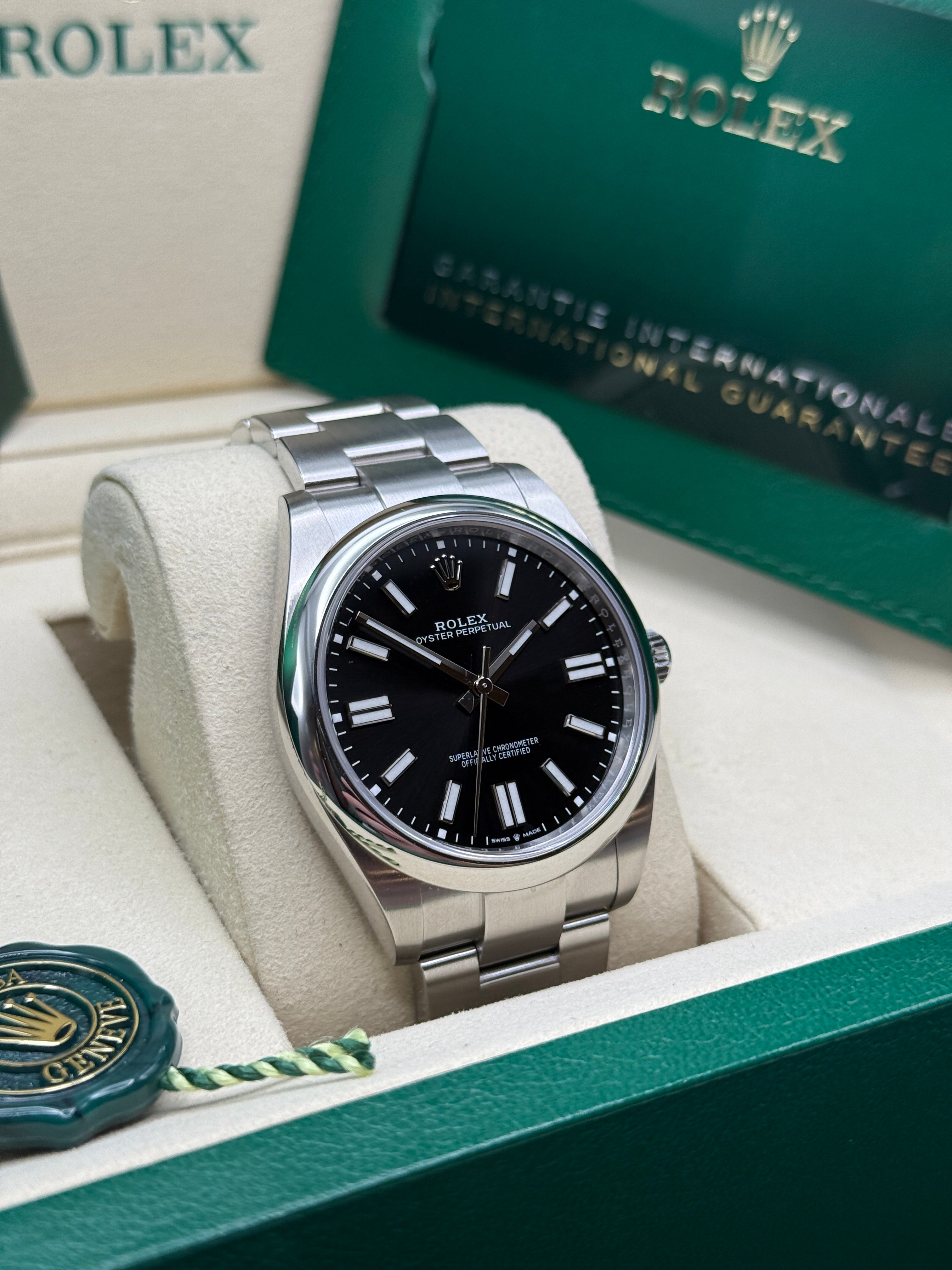 Oystersteel | Oyster Bracelet | Bright Black Index Dial | Domed Bezel | 41.0mm