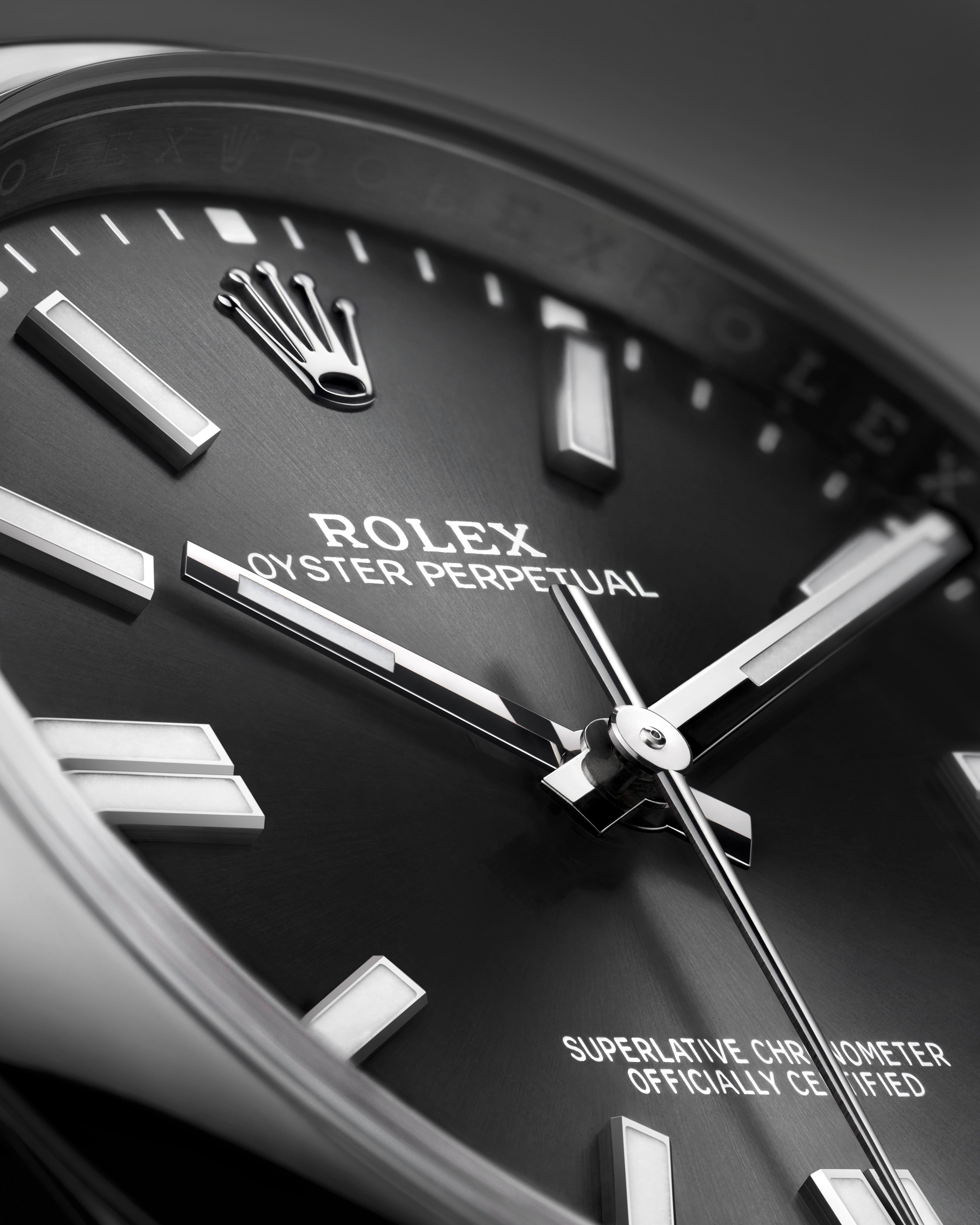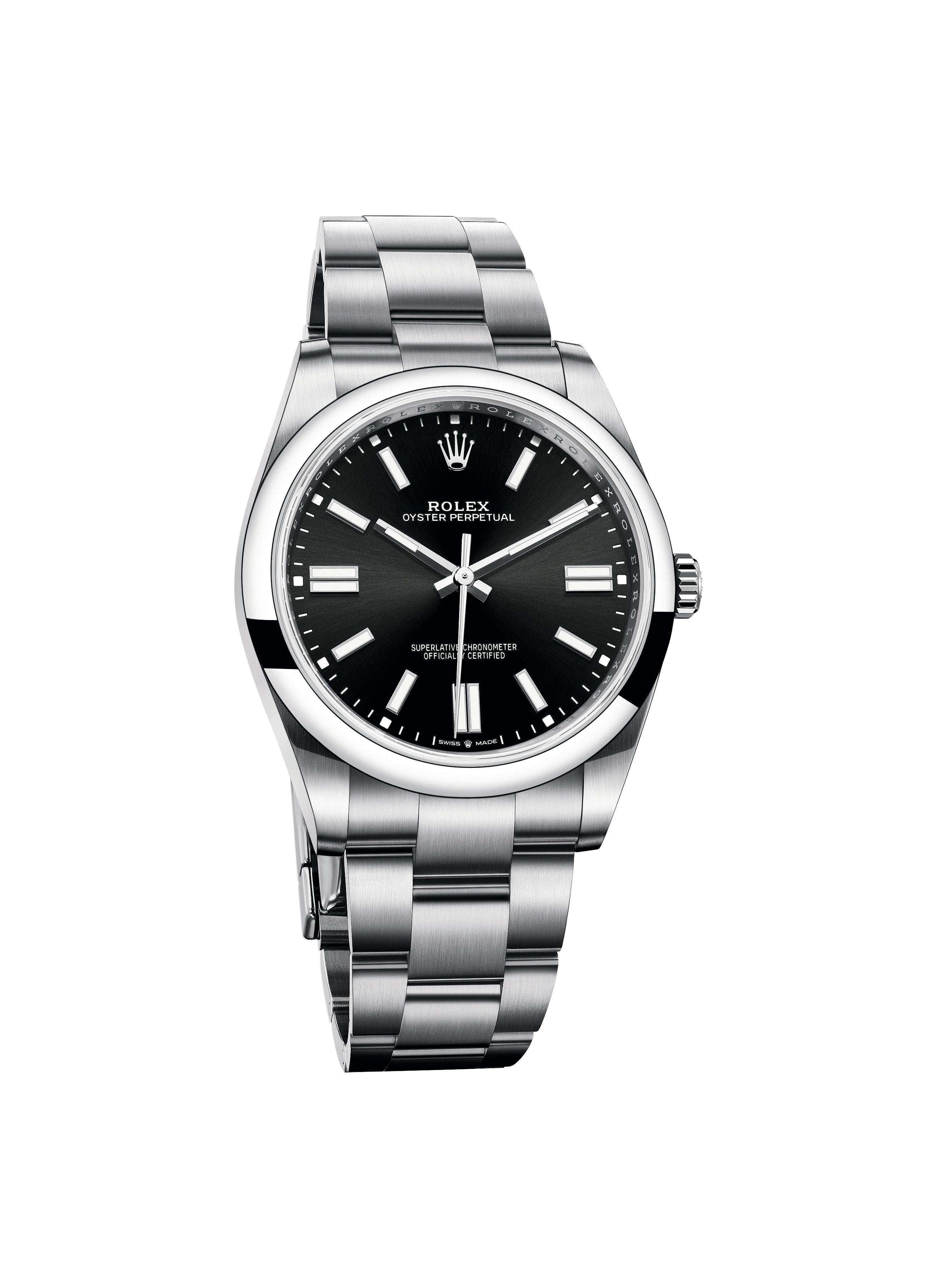 The Oyster Perpetual is the direct descendant of the original Oyster launched in 1926, the first waterproof wristwatch in the world and the foundation on which Rolex has built its reputation. A certified Superlative Chronometer, the Oyster Perpetual features all the key characteristics of the Oyster Perpetual collection – the waterproof Oyster case, a mechanical self-winding movement via Perpetual rotor, and excellent chronometric precision. Understated and elegant, this timepiece is known for its universal, classic style. The Oyster Perpetual’s Oyster case guarantees waterproof to a depth of 100 meters (330 feet), being a paragon of robustness and reliability. The Oyster Perpetual models are equipped with calibre 2232 (Oyster Perpetual 28, Oyster Perpetual 31 and Oyster Perpetual 34), or calibre 3230 (Oyster Perpetual 36 and Oyster Perpetual 41), self-winding mechanical movements entirely developed and manufactured by Rolex.
