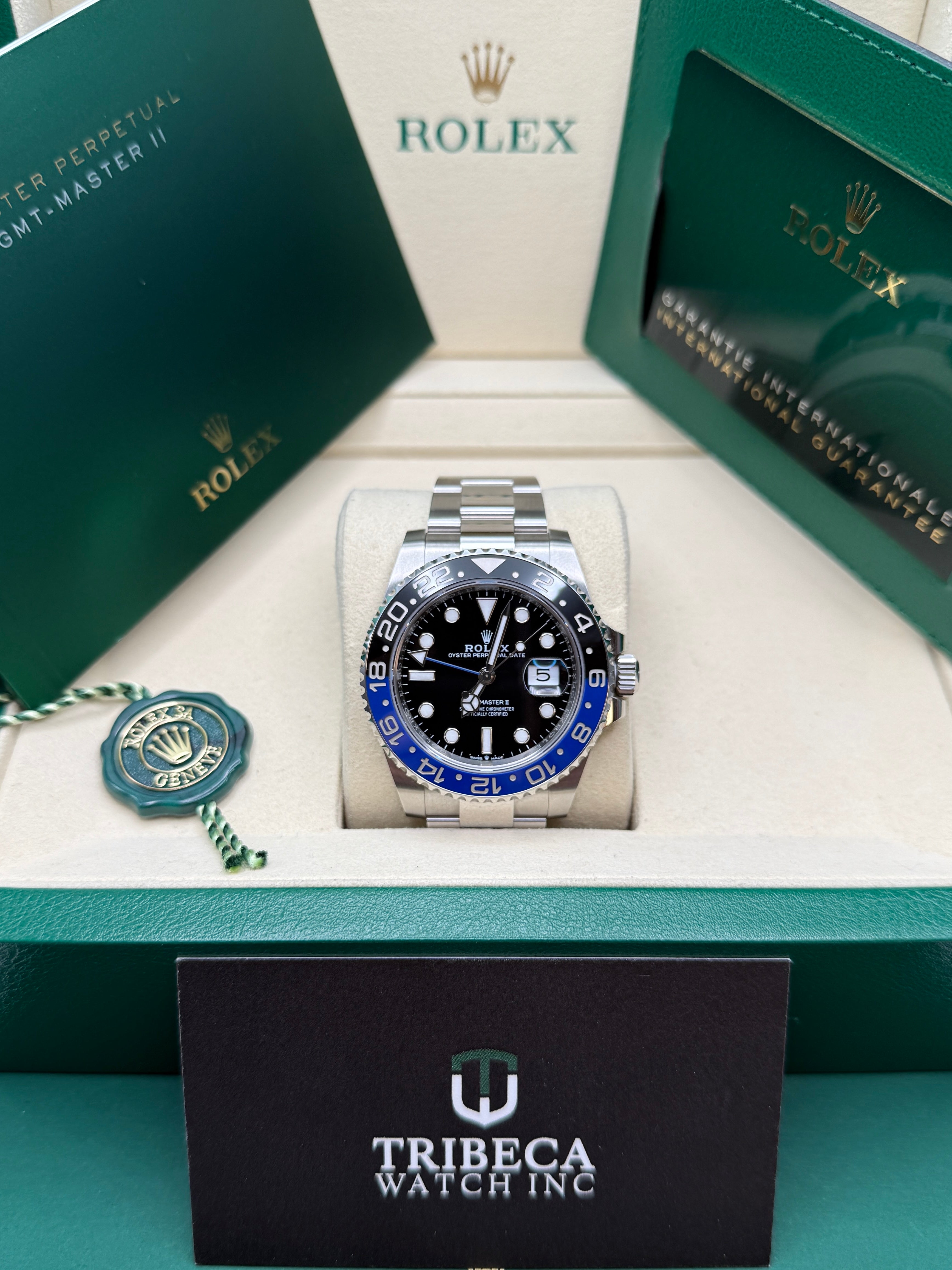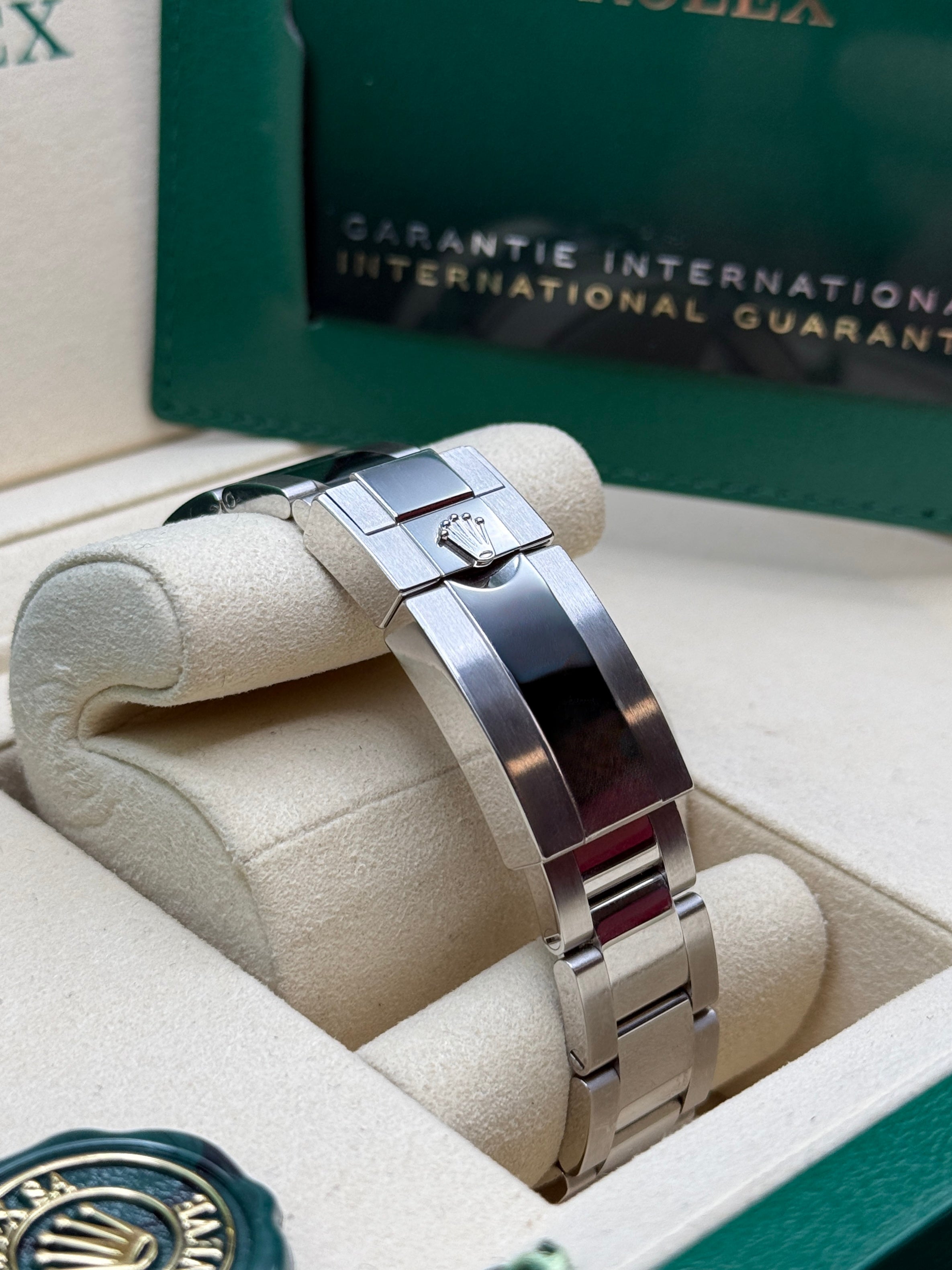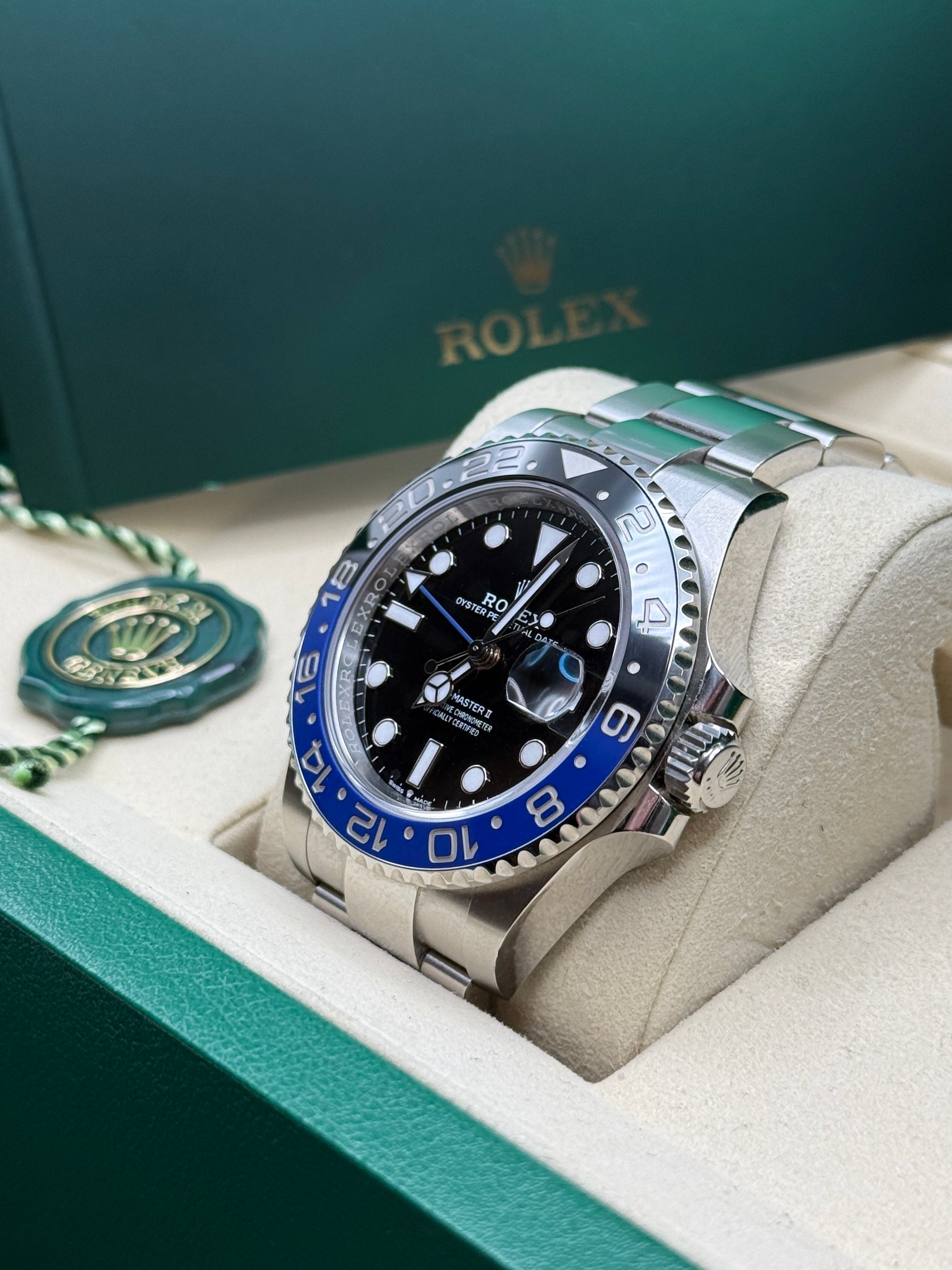 Powered by the Calibre 3285 movement, the Rolex GMT-Master II delivers exceptional precision, reliability, and an impressive power reserve of approximately 70 hours. Its rugged yet elegant Oyster case is waterproof to a depth of 100 meters, ensuring durability in any environment. The watch features a Cerachrom bezel, crafted from high-tech ceramic, which offers superior resistance to scratches and UV rays, maintaining its vibrant color over time. Equipped with an independently adjustable hour hand and 24-hour display, the GMT-Master II allows seamless tracking of multiple time zones, making it a perfect companion for global travelers and watch connoisseurs alike.