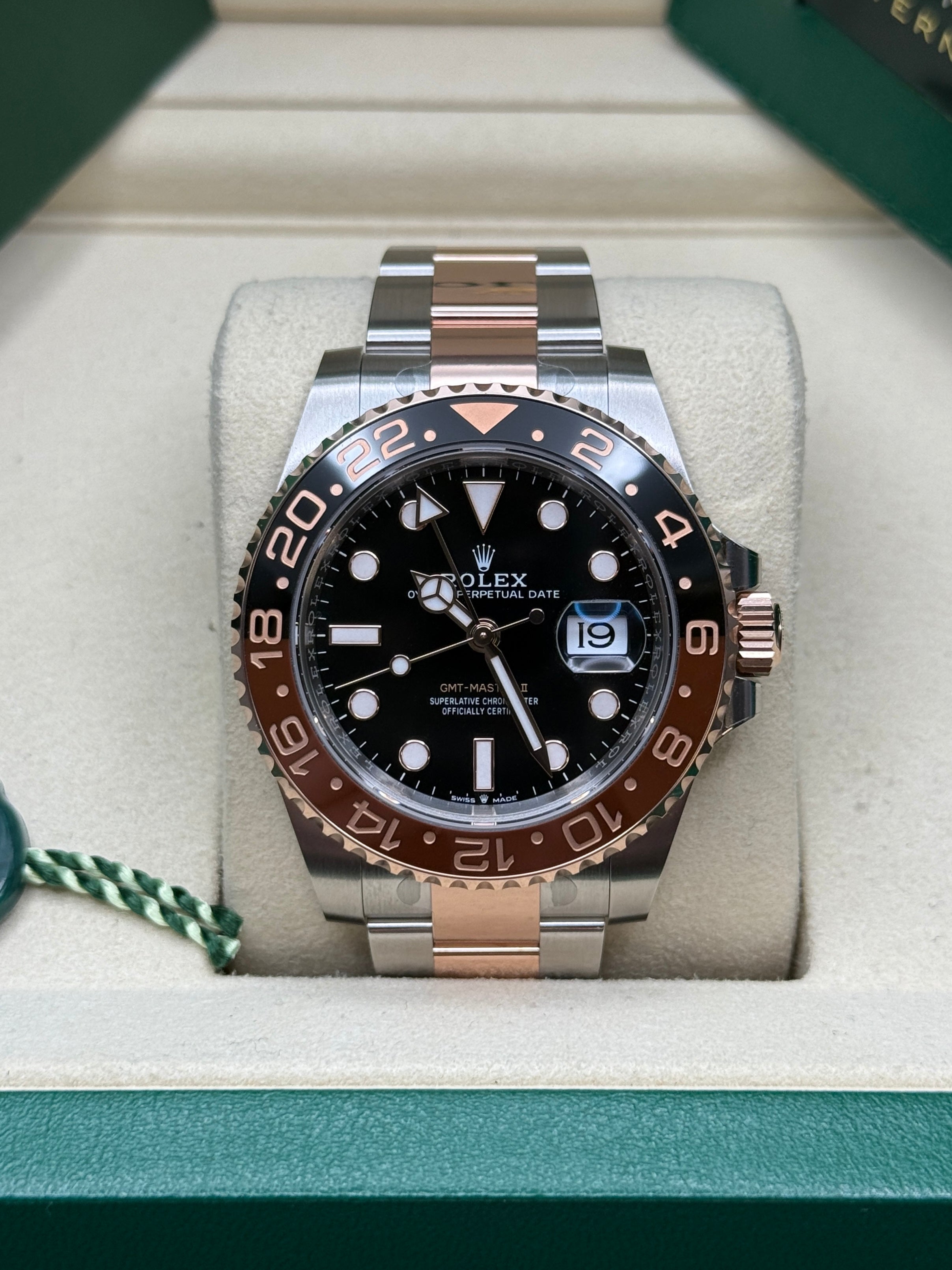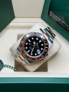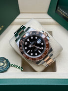 Powered by the Calibre 3285 movement, the Rolex GMT-Master II delivers exceptional precision, reliability, and an impressive power reserve of approximately 70 hours. Its rugged yet elegant Oyster case is waterproof to a depth of 100 meters, ensuring durability in any environment. The watch features a Cerachrom bezel, crafted from high-tech ceramic, which offers superior resistance to scratches and UV rays, maintaining its vibrant color over time. Equipped with an independently adjustable hour hand and 24-hour display, the GMT-Master II allows seamless tracking of multiple time zones, making it a perfect companion for global travelers and watch connoisseurs alike.