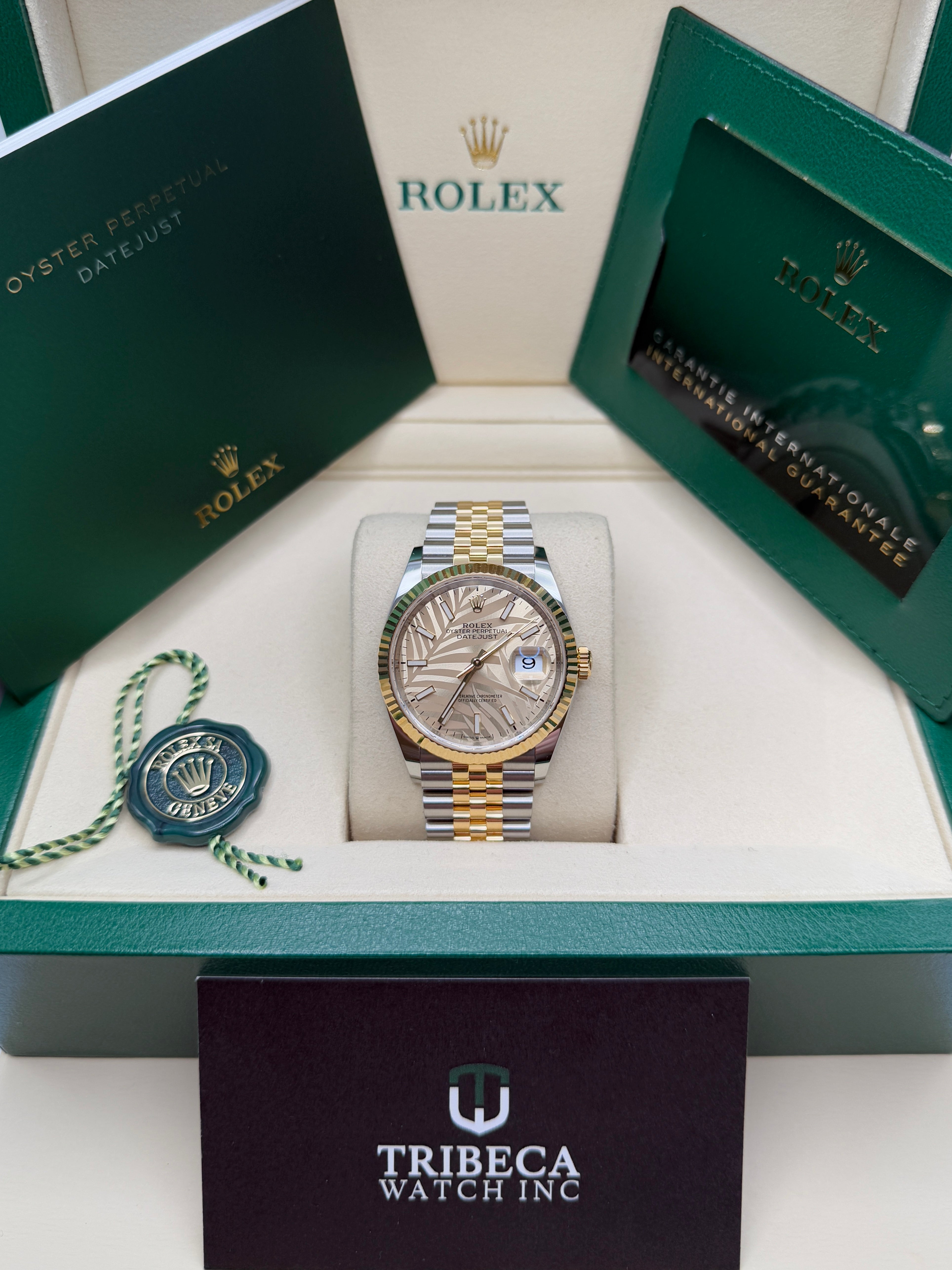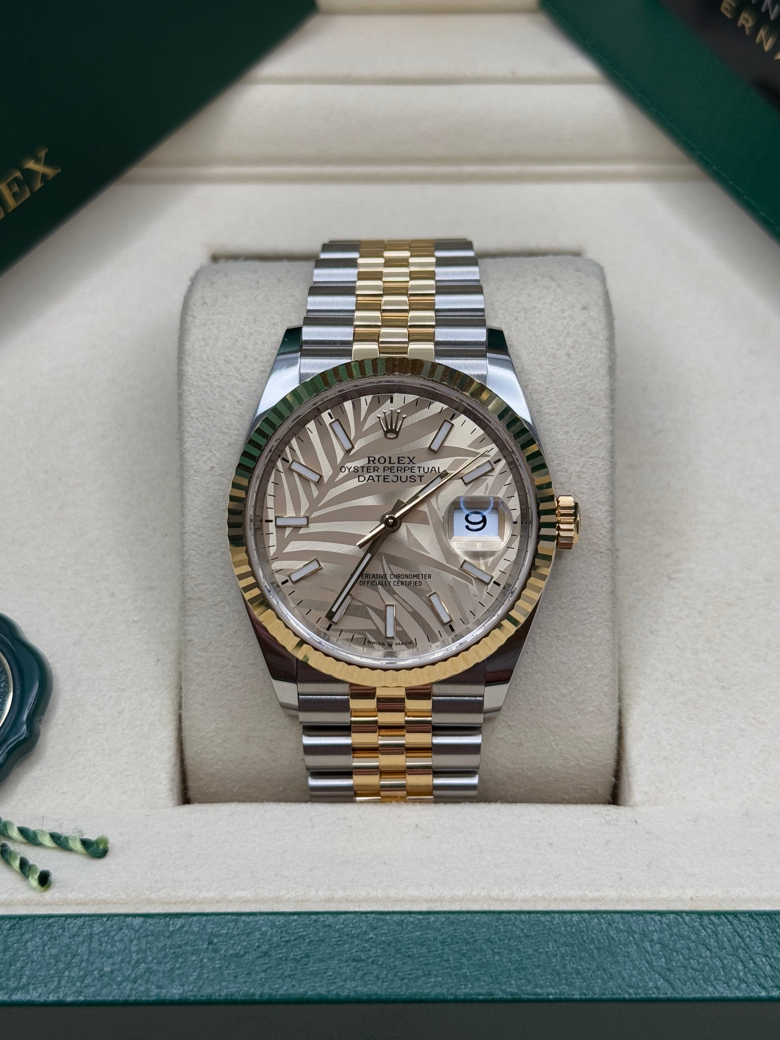 Oystersteel & Yellow Gold | Jubilee Bracelet | Golden Palm-Motif Dial | Fluted Bezel | 36.0mm