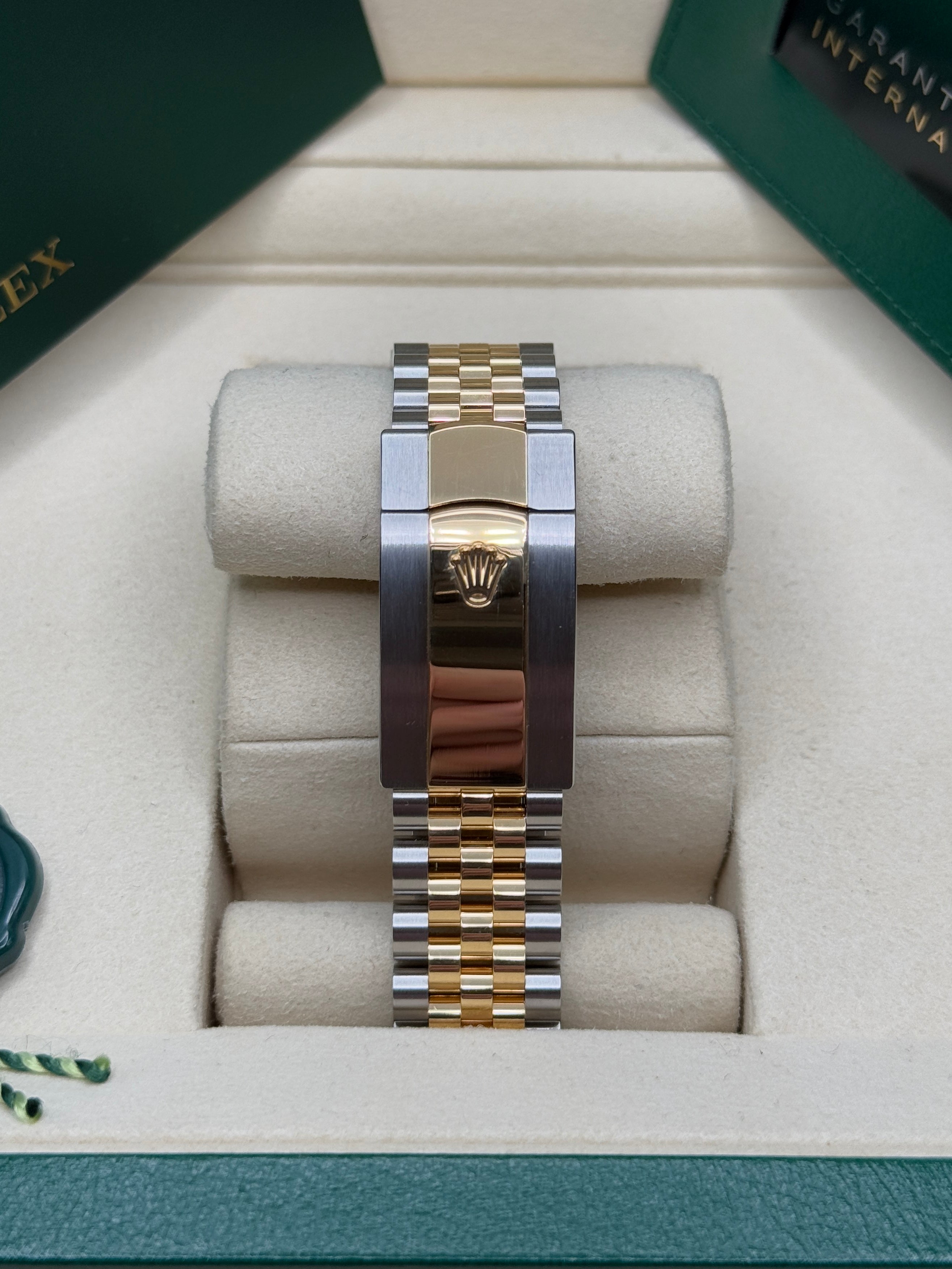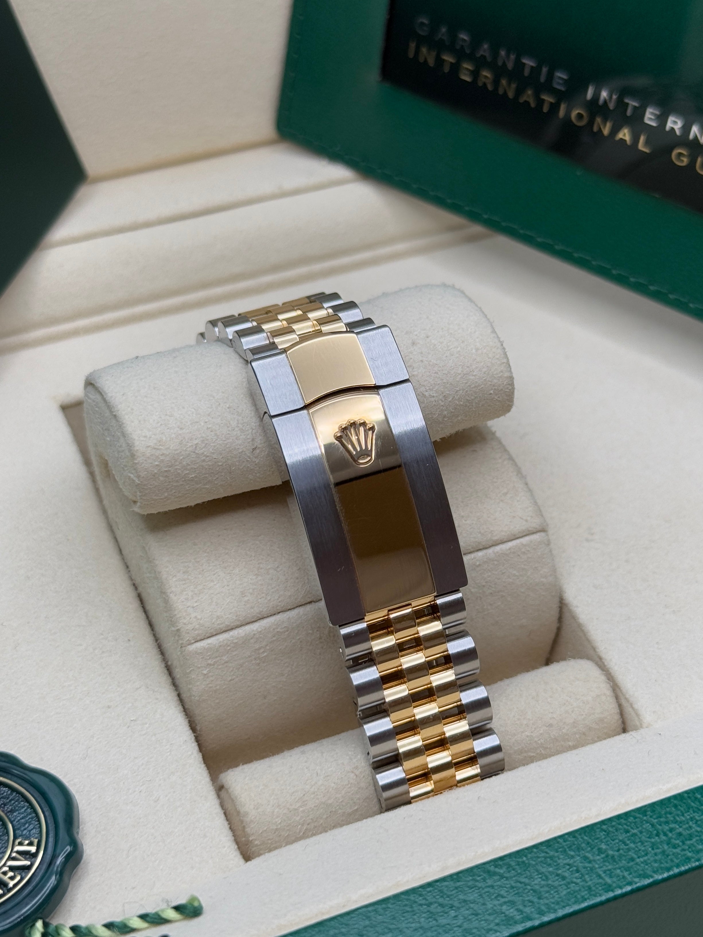 Rolex’s Datejust is the archetype of the classic watch thanks to functions and aesthetics that never go out of fashion. Launched in 1945, it was the first self-winding waterproof chronometer wristwatch to display the date in a window at 3 o’clock on the dial, and consolidated all the major innovations that Rolex had contributed to the modern wristwatch until then. The Datejust has spanned eras while retaining the enduring aesthetic characteristics that make it so instantly recognizable. A paragon of robustness and elegance, the Oyster case of the Datejust 36 is guaranteed waterproof to a depth of 100 meters (330 feet) and is equipped with calibre 3235, a movement entirely developed and manufactured by Rolex.