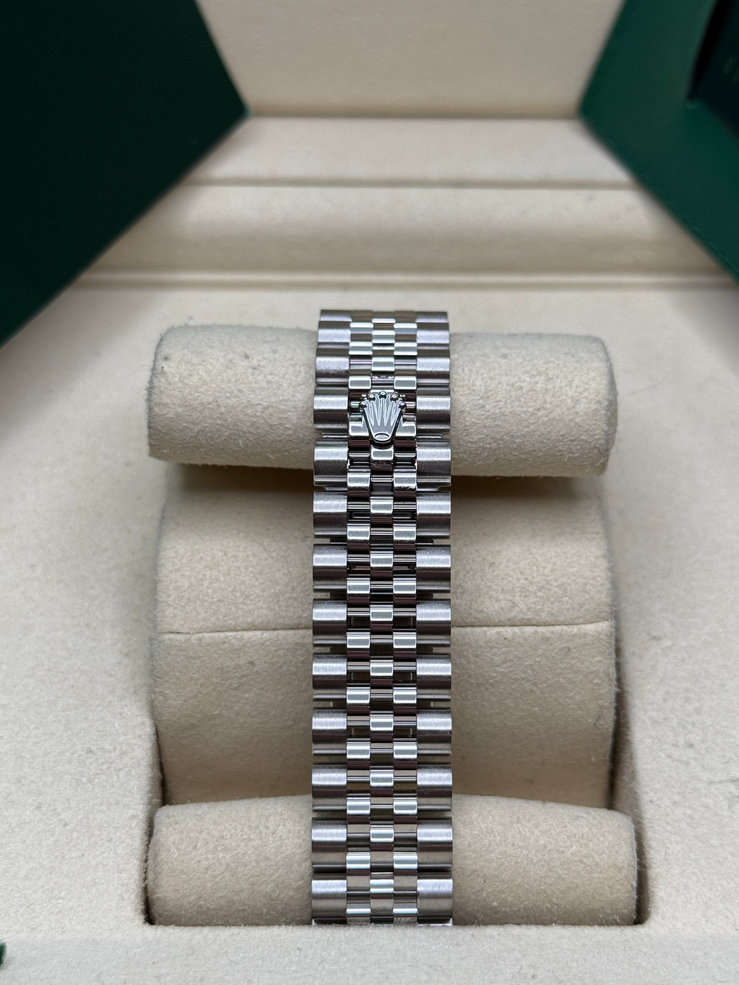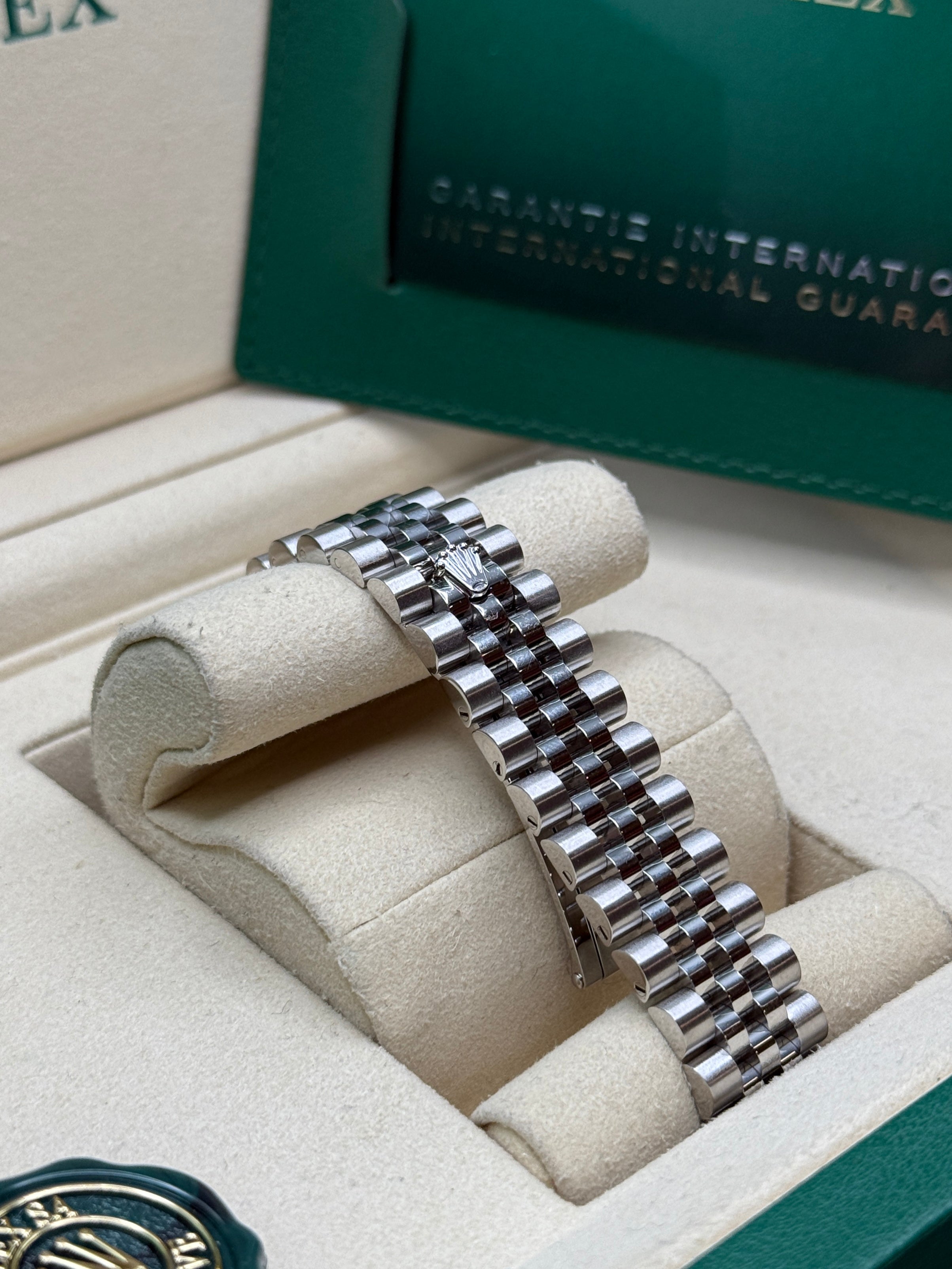Rolex’s Datejust is the archetype of the classic watch thanks to functions and aesthetics that never go out of fashion. Launched in 1945, it was the first self-winding waterproof chronometer wristwatch to display the date in a window at 3 o’clock on the dial, and consolidated all the major innovations that Rolex had contributed to the modern wristwatch until then. The Datejust has spanned eras while retaining the enduring aesthetic characteristics that make it so instantly recognizable. A paragon of robustness and elegance, the Oyster case of the Datejust 31 is guaranteed waterproof to a depth of 100 meters (330 feet) and is equipped with calibre 2236, a movement entirely developed and manufactured by Rolex.