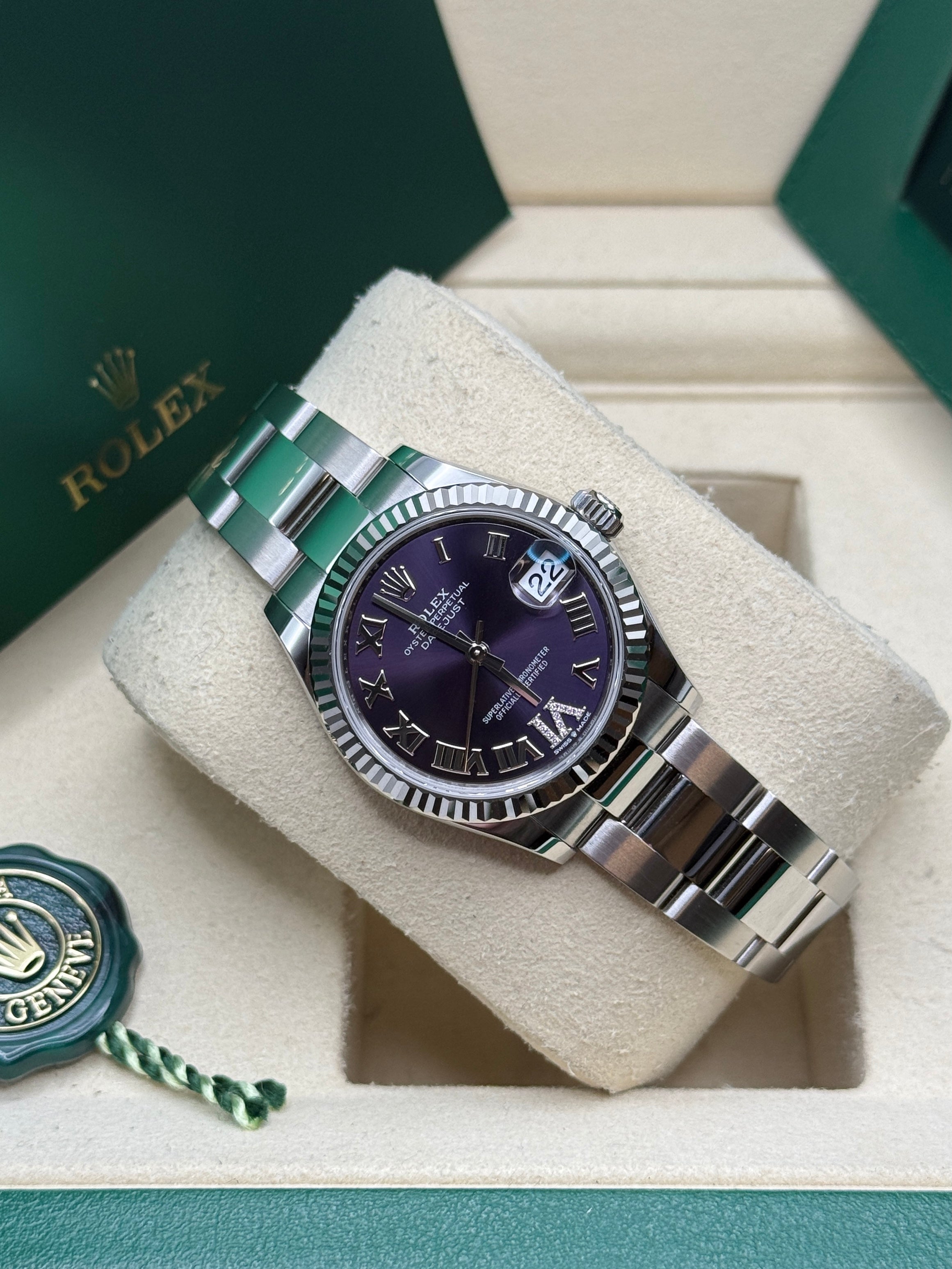 Rolex’s Datejust is the archetype of the classic watch thanks to functions and aesthetics that never go out of fashion. Launched in 1945, it was the first self-winding waterproof chronometer wristwatch to display the date in a window at 3 o’clock on the dial, and consolidated all the major innovations that Rolex had contributed to the modern wristwatch until then. The Datejust has spanned eras while retaining the enduring aesthetic characteristics that make it so instantly recognizable. A paragon of robustness and elegance, the Oyster case of the Datejust 31 is guaranteed waterproof to a depth of 100 meters (330 feet) and is equipped with calibre 2236, a movement entirely developed and manufactured by Rolex.