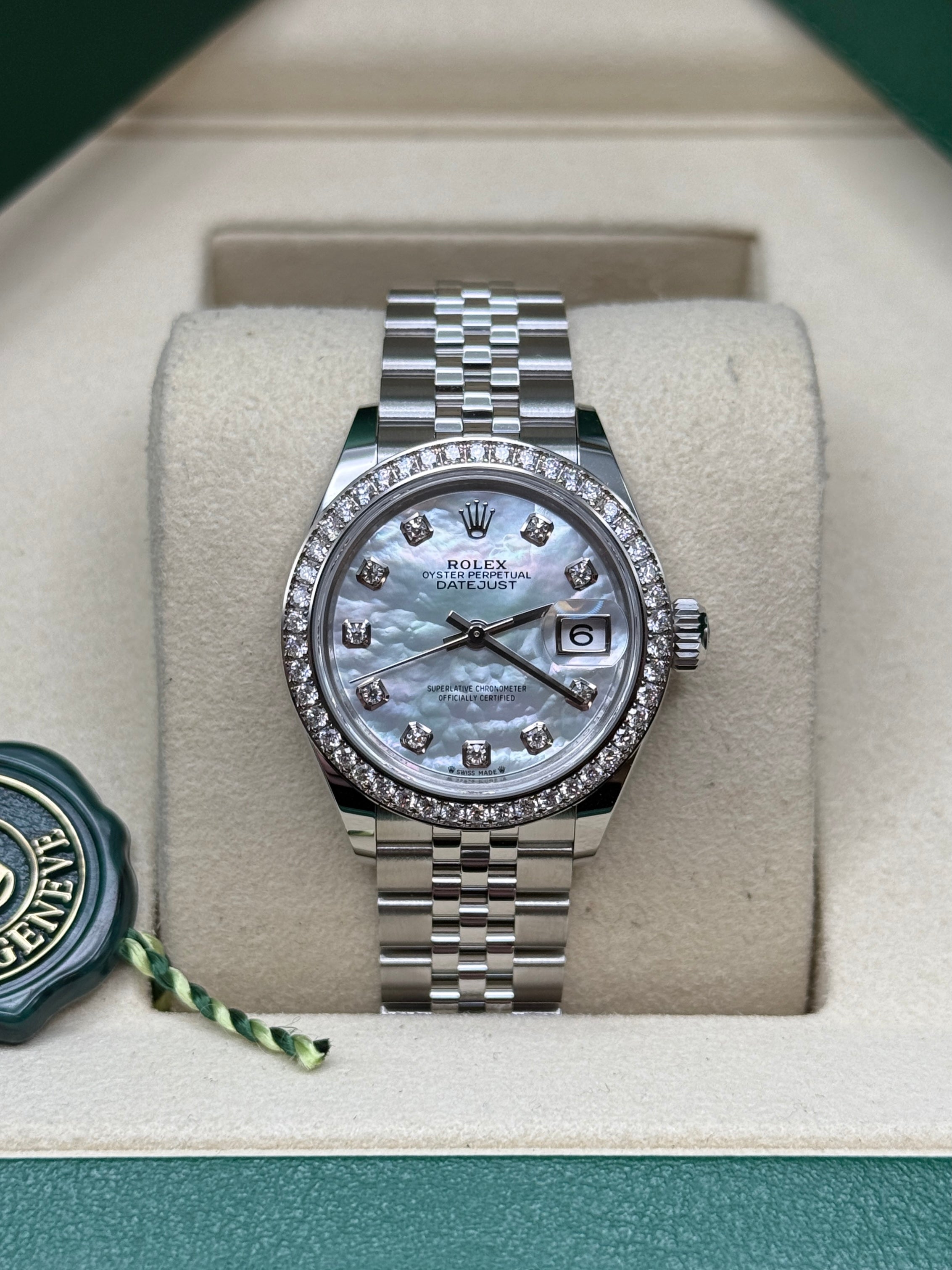 The classic Rolex feminine watch, the Lady-Datejust concentrates all the attributes of the Datejust, the brand’s emblematic watch that has been a byword for style and technical performance ever since its launch in 1945. The women’s version of this date chronometer, the Lady-Datejust, which first appeared in 1957, carries the elegance of the Datejust in a small 28 mm size particularly suited to a slender wrist. The Lady-Datejust upholds the hallmark features of the Datejust line, with a self-winding, waterproof Oyster case that is robust yet graceful. Its calibre 2236 movement, crafted entirely by Rolex, ensures precision and performance. The Lady-Datejust is guaranteed waterproof to a depth of 100 meters (330 feet), making it a resilient and elegant choice for any occasion.