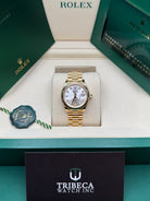 Yellow Gold | President Bracelet | Silver Diamond Dial | Fluted Bezel | 28.0mm