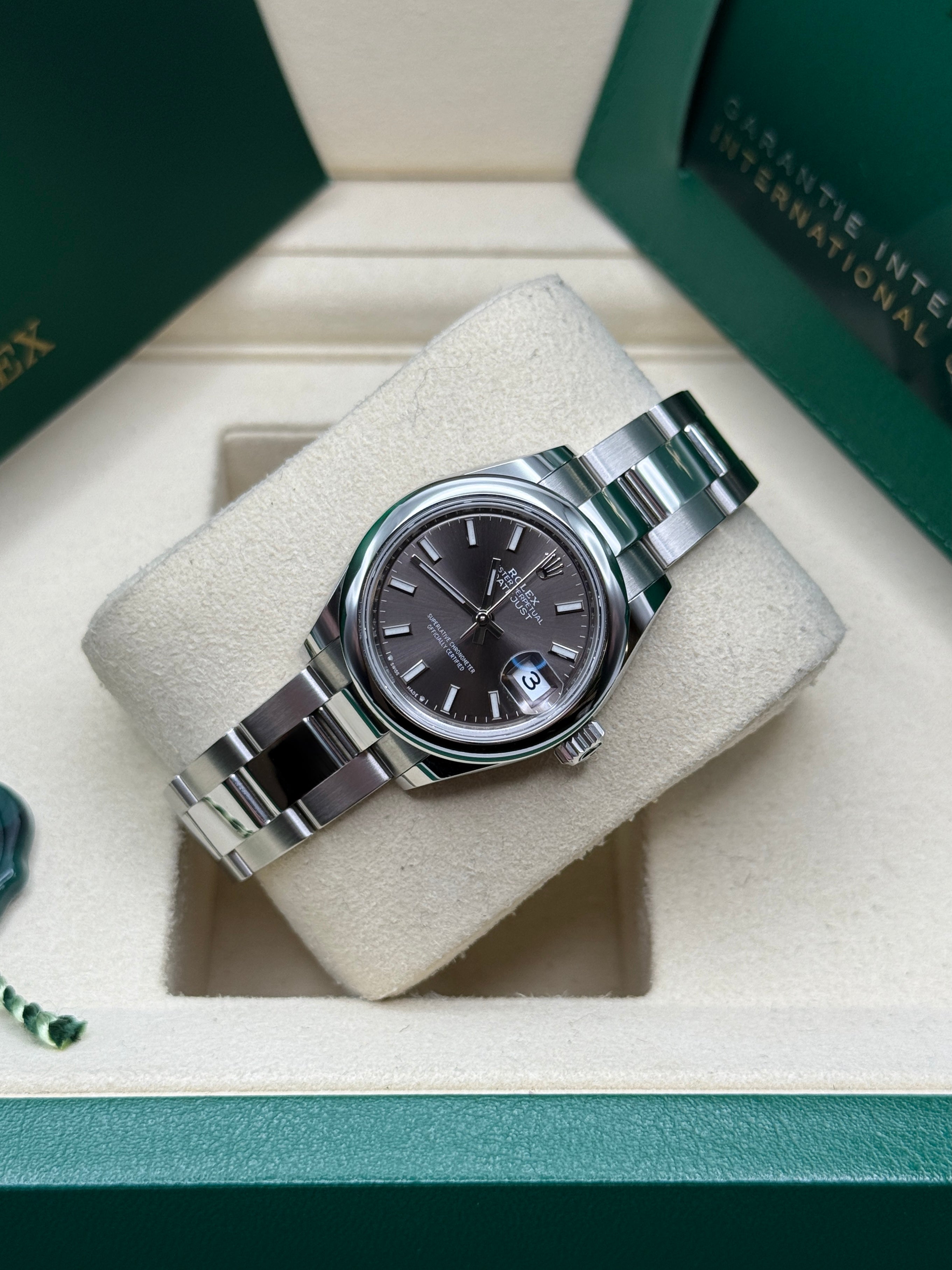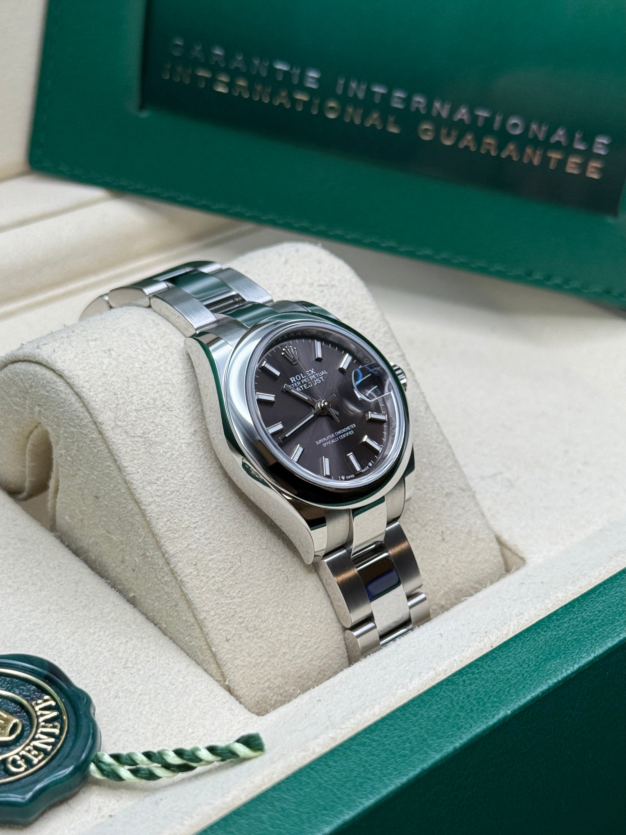 The classic Rolex feminine watch, the Lady-Datejust concentrates all the attributes of the Datejust, the brand’s emblematic watch that has been a byword for style and technical performance ever since its launch in 1945. The women’s version of this date chronometer, the Lady-Datejust, which first appeared in 1957, carries the elegance of the Datejust in a small 28 mm size particularly suited to a slender wrist. The Lady-Datejust upholds the hallmark features of the Datejust line, with a self-winding, waterproof Oyster case that is robust yet graceful. Its calibre 2236 movement, crafted entirely by Rolex, ensures precision and performance. The Lady-Datejust is guaranteed waterproof to a depth of 100 meters (330 feet), making it a resilient and elegant choice for any occasion.