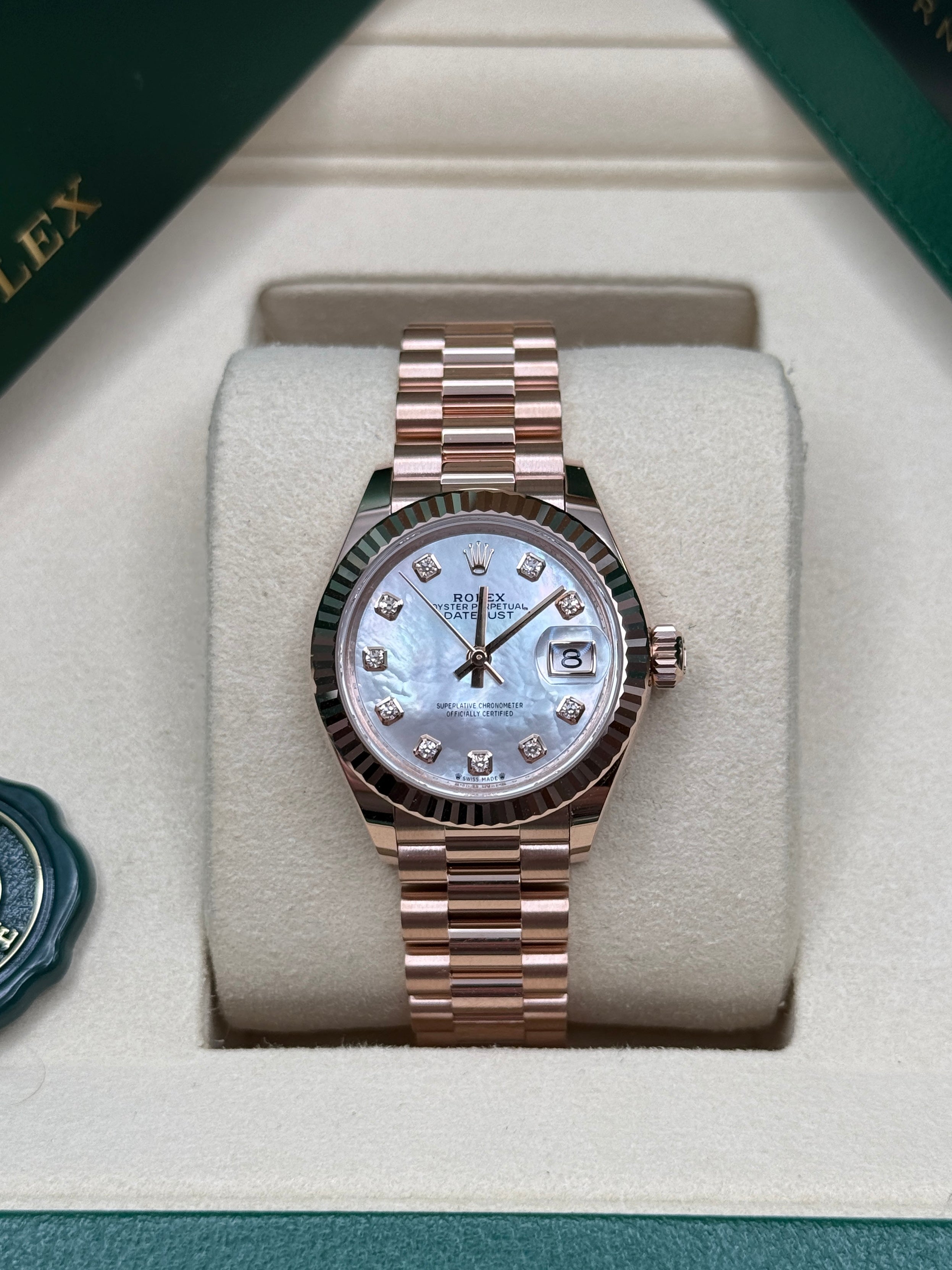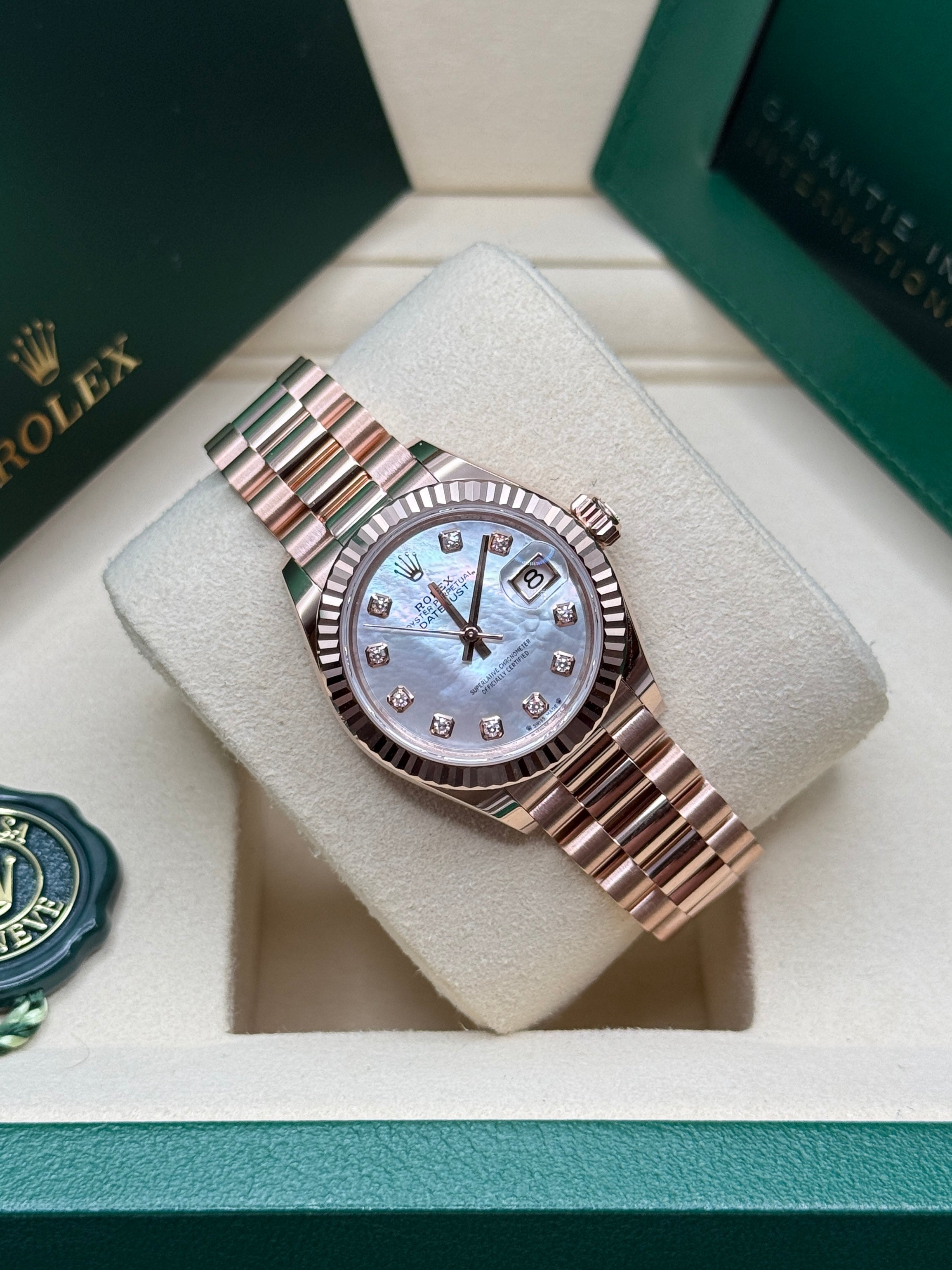 Everose Gold | President Bracelet | Mother of Pearl Diamond Dial | Fluted Bezel | 28.0mm