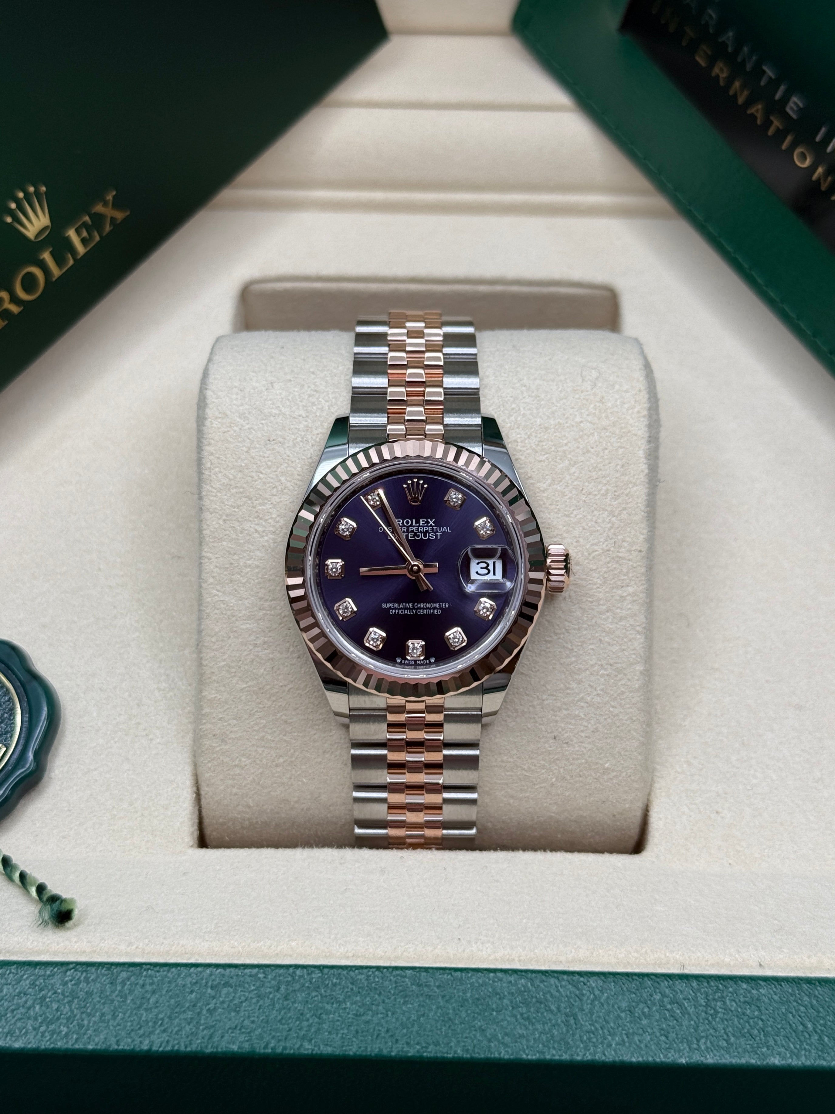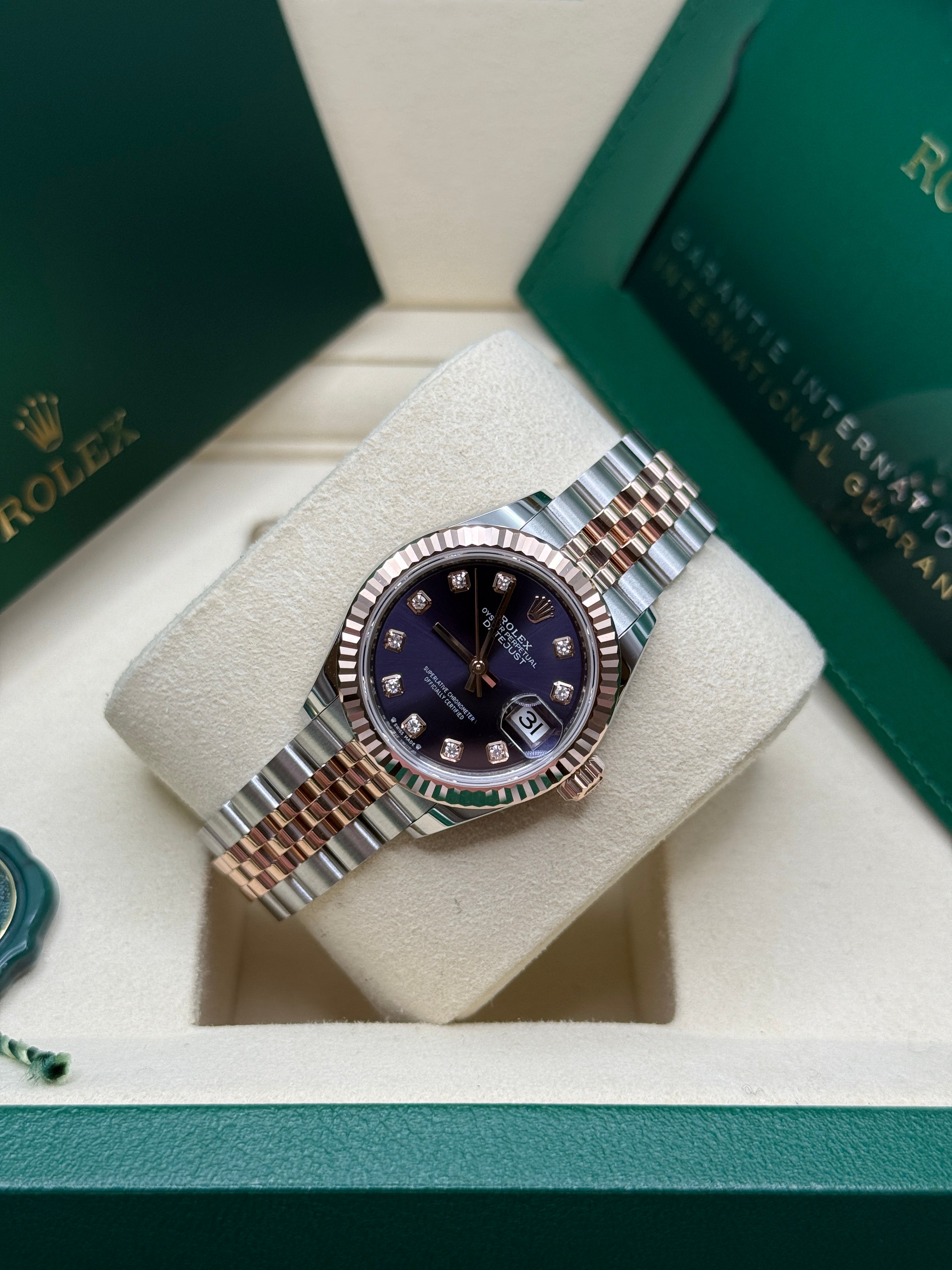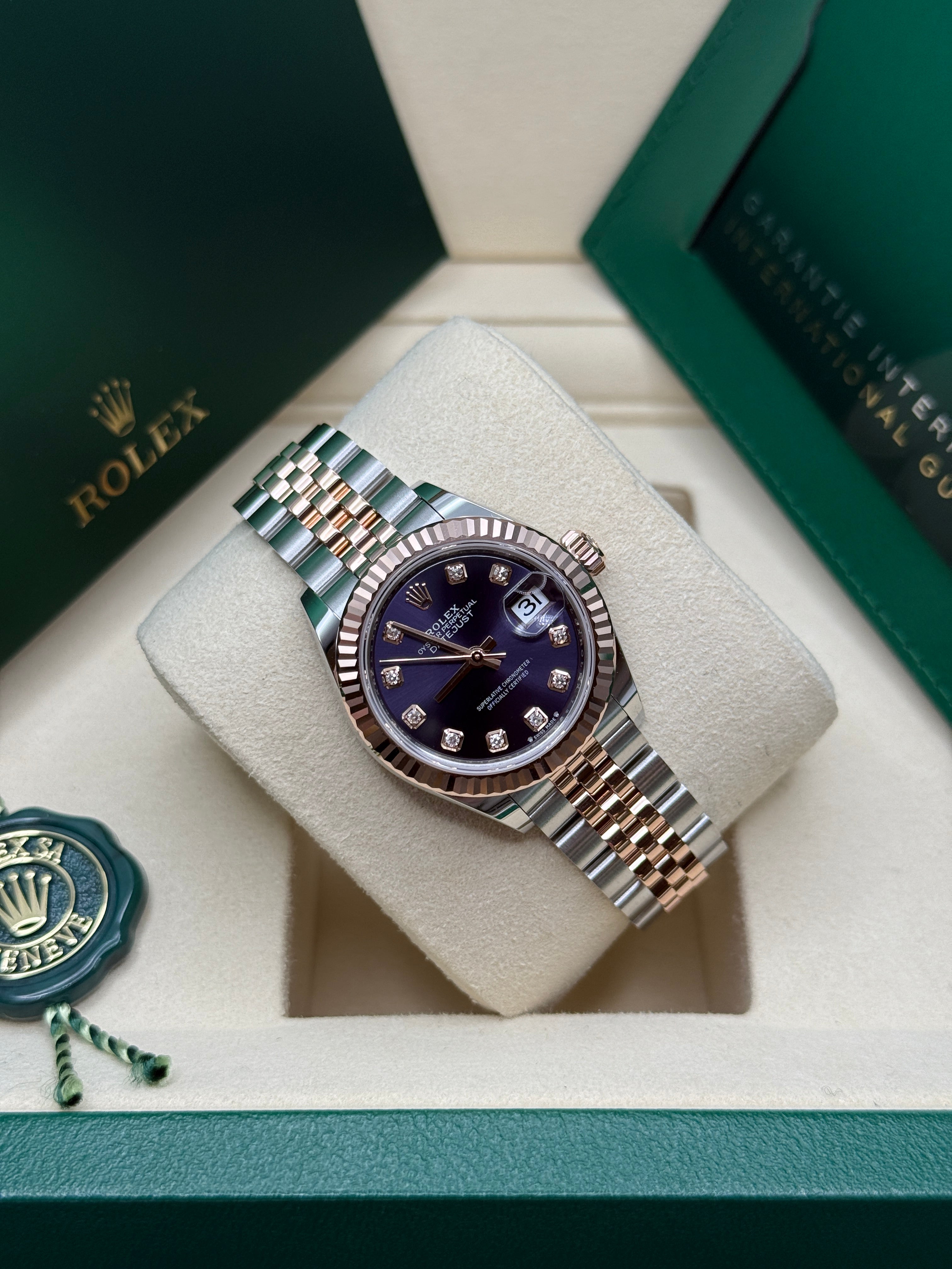 Oystersteel & Everose Gold | Jubilee Bracelet | Aubergine Diamond Dial | Fluted Bezel | 28.0mm