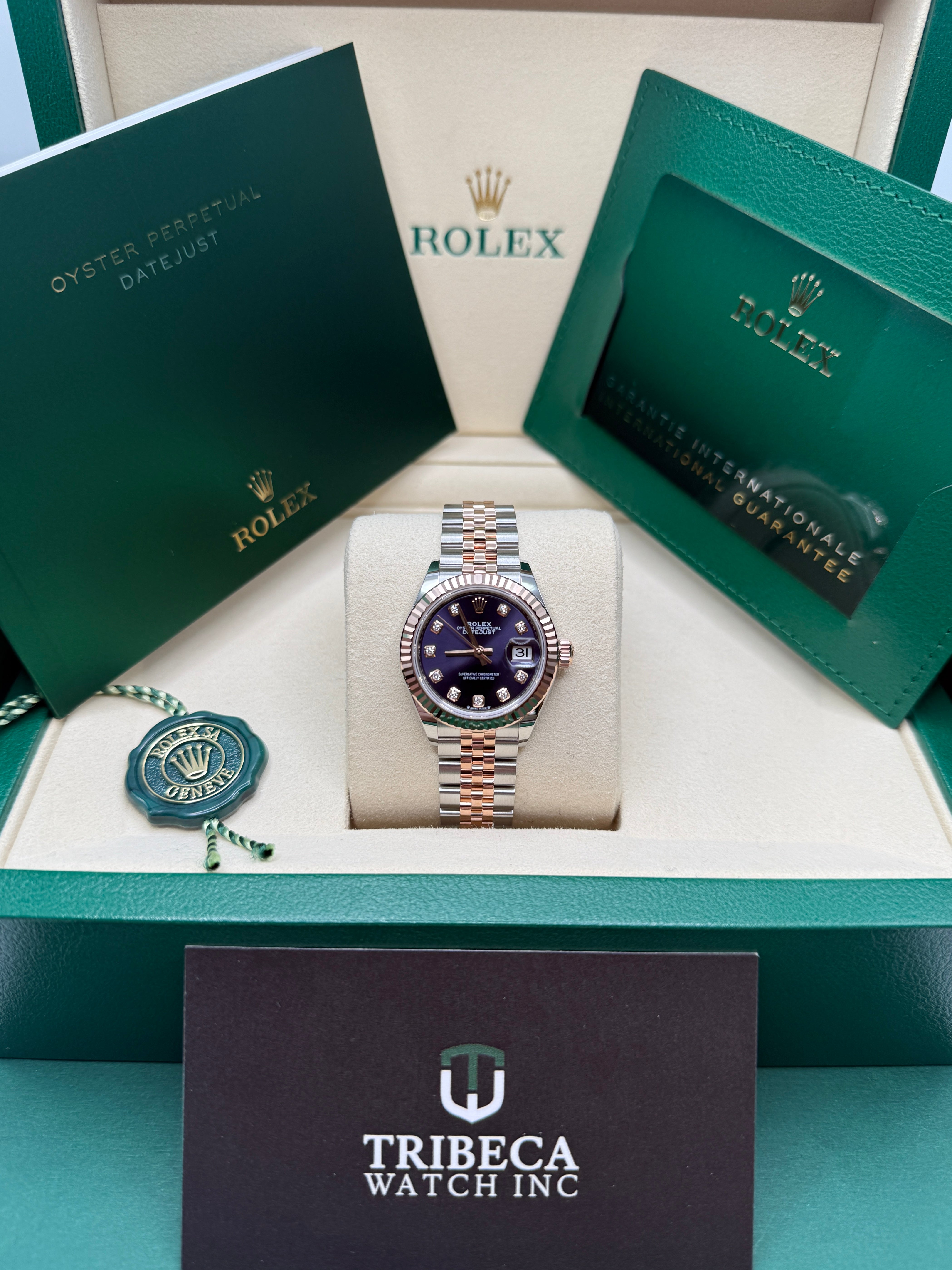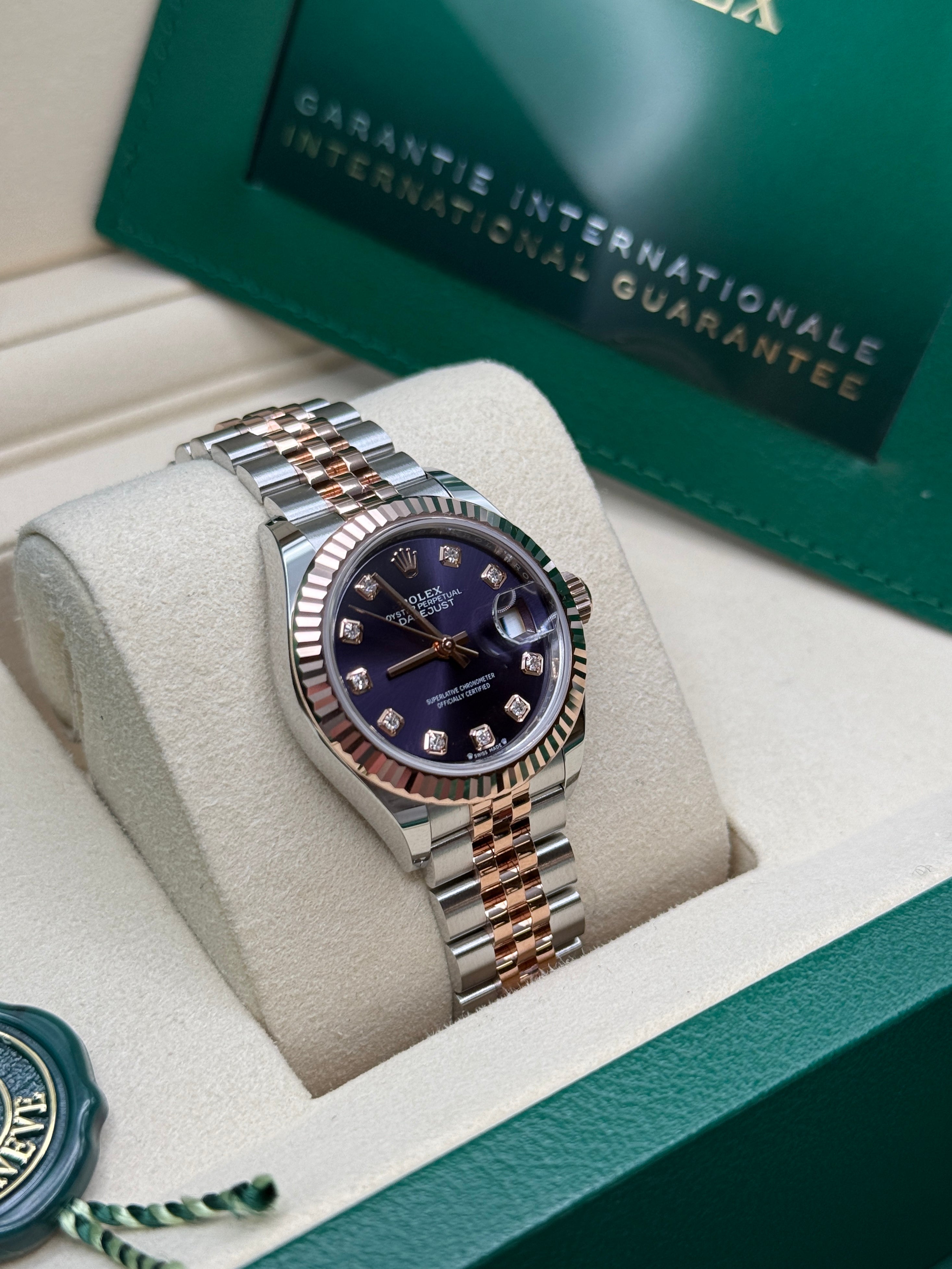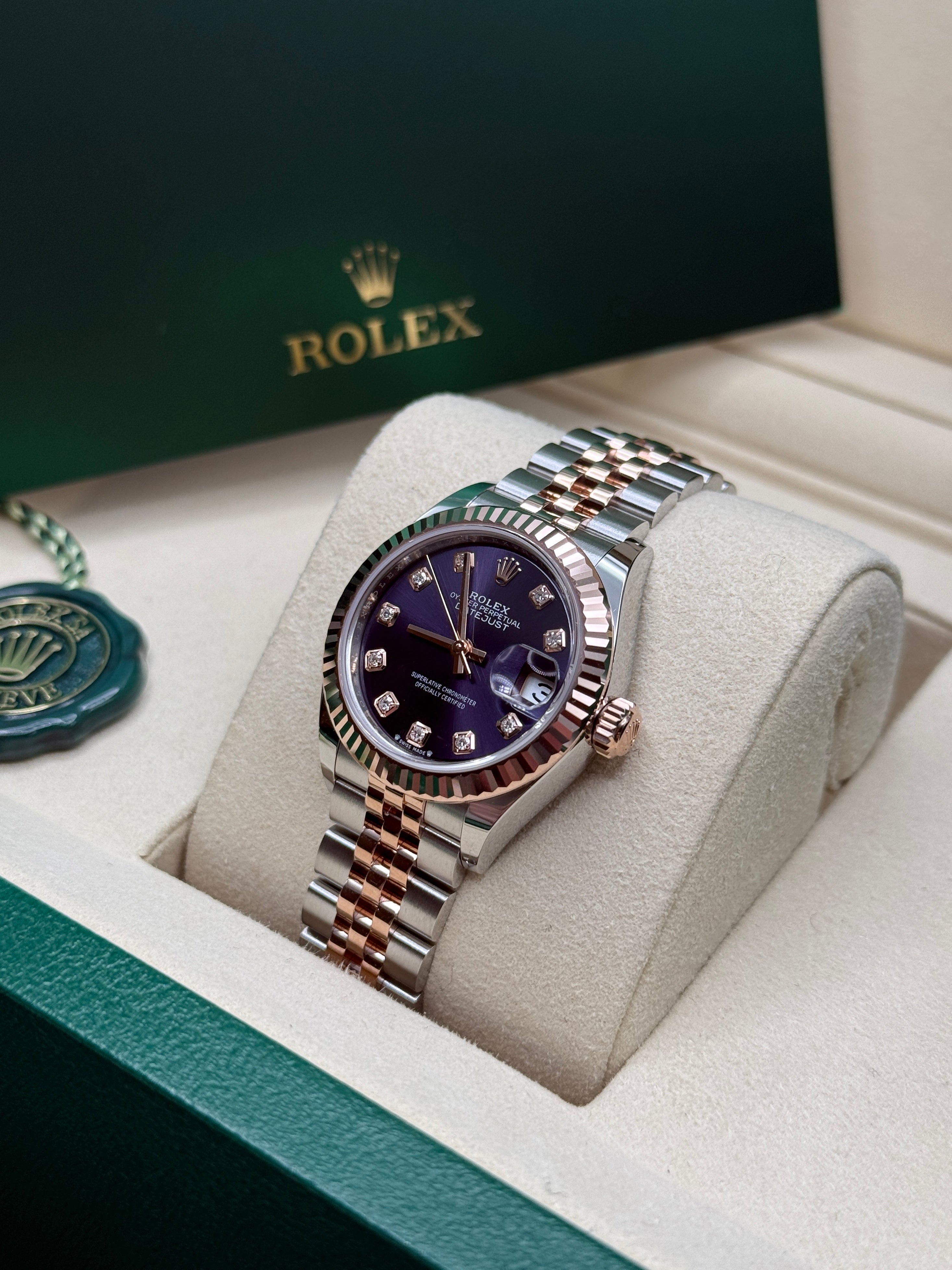 Oystersteel & Everose Gold | Jubilee Bracelet | Aubergine Diamond Dial | Fluted Bezel | 28.0mm