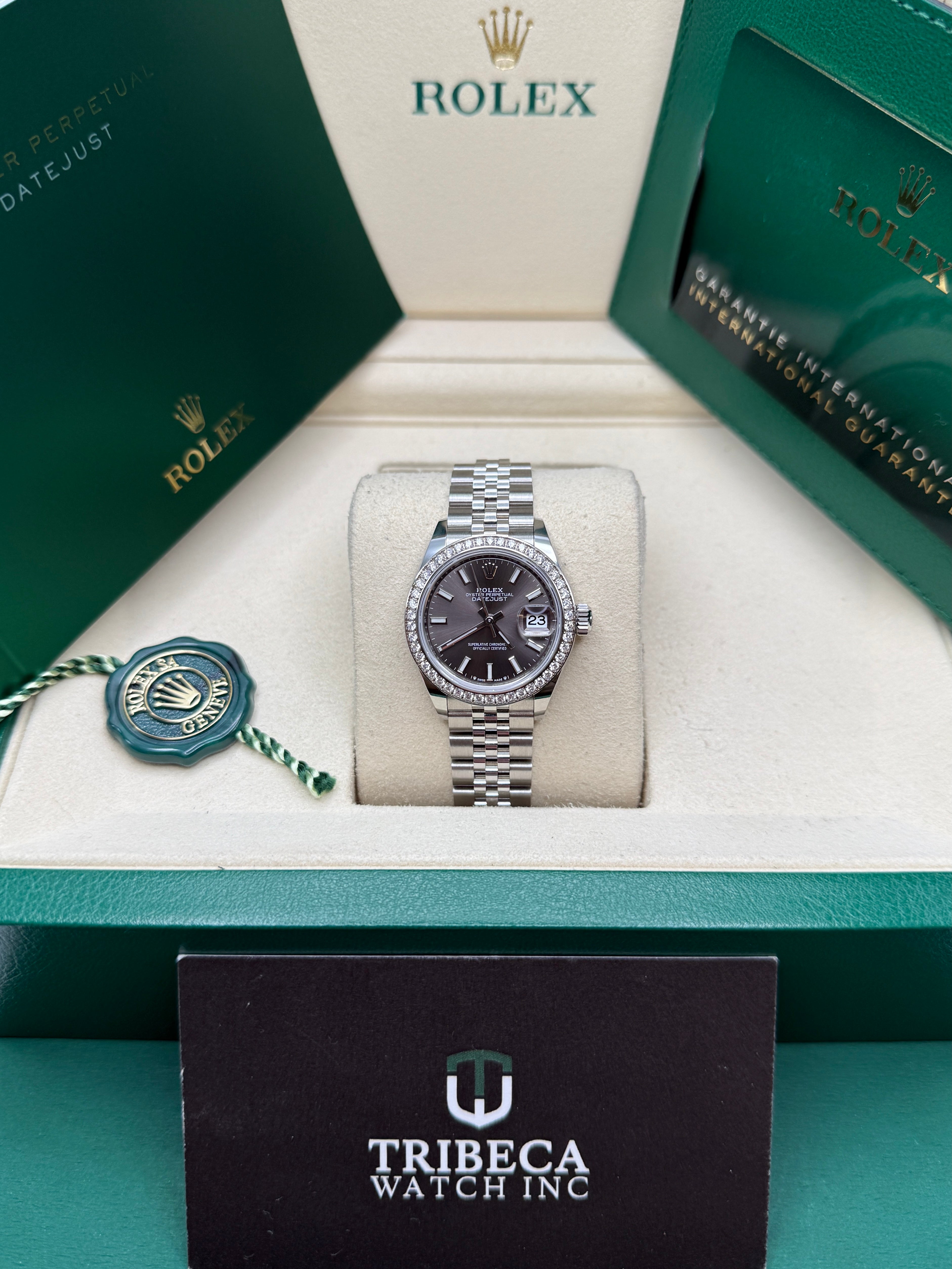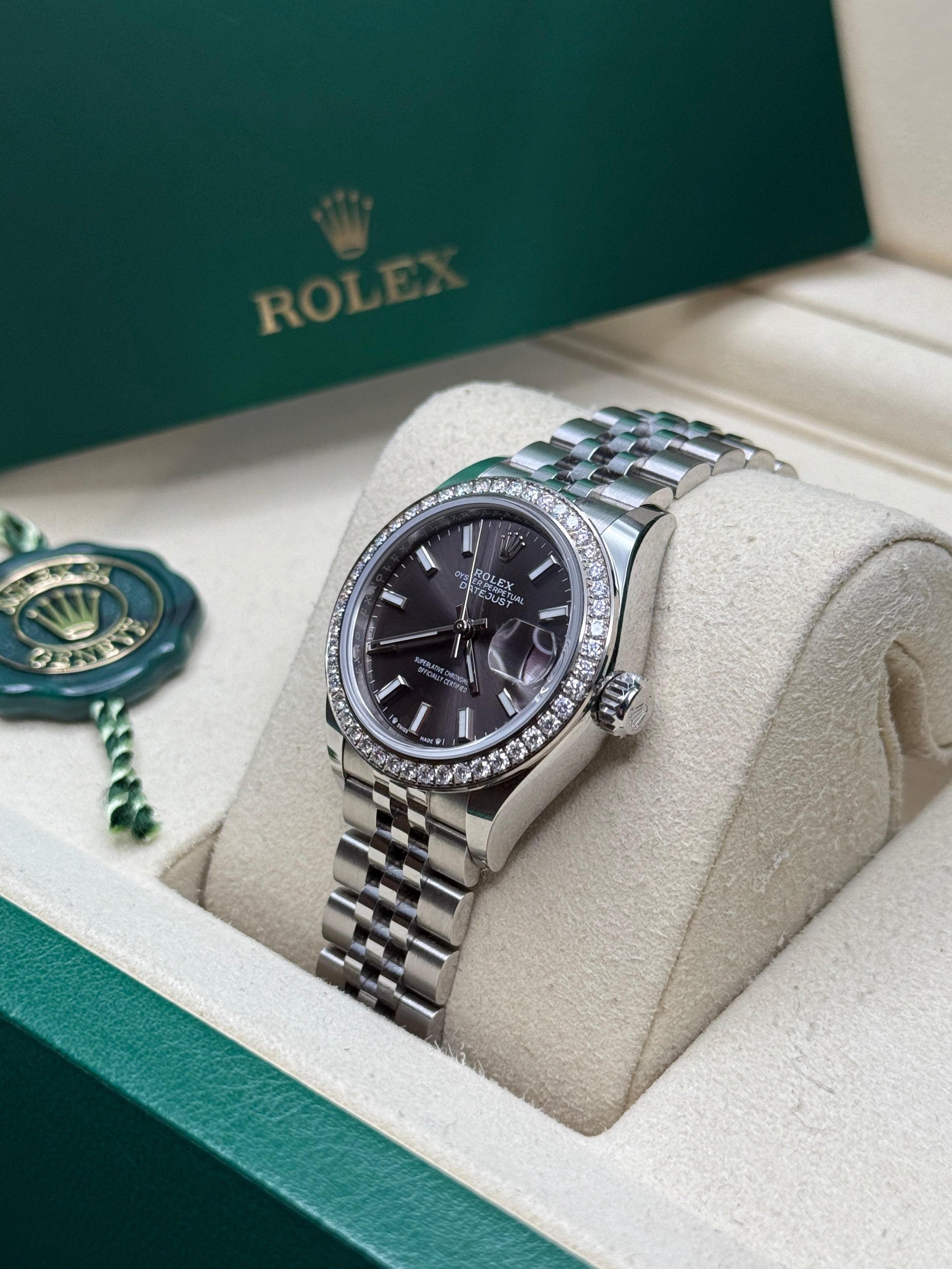 The classic Rolex feminine watch, the Lady-Datejust concentrates all the attributes of the Datejust, the brand’s emblematic watch that has been a byword for style and technical performance ever since its launch in 1945. The women’s version of this date chronometer, the Lady-Datejust, which first appeared in 1957, carries the elegance of the Datejust in a small 28 mm size particularly suited to a slender wrist. The Lady-Datejust upholds the hallmark features of the Datejust line, with a self-winding, waterproof Oyster case that is robust yet graceful. Its calibre 2236 movement, crafted entirely by Rolex, ensures precision and performance. The Lady-Datejust is guaranteed waterproof to a depth of 100 meters (330 feet), making it a resilient and elegant choice for any occasion.