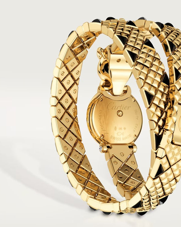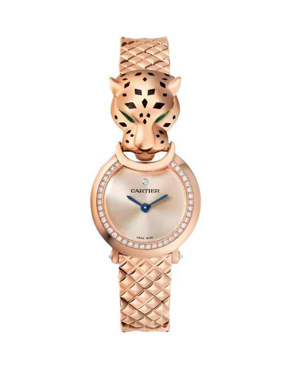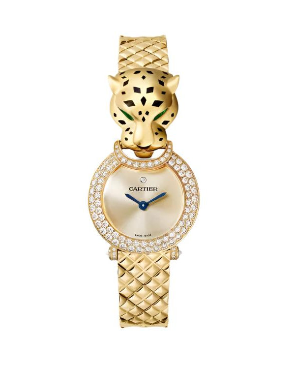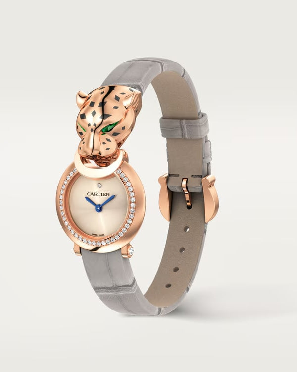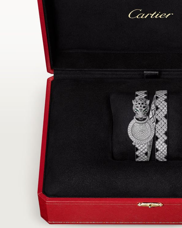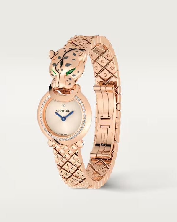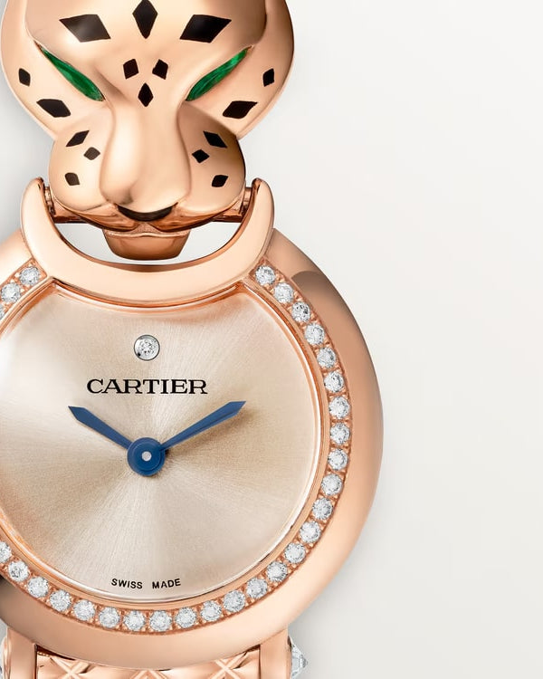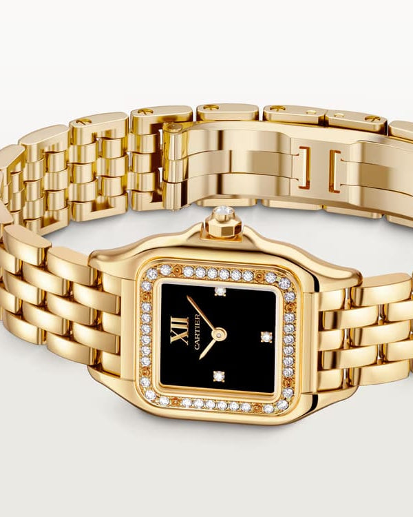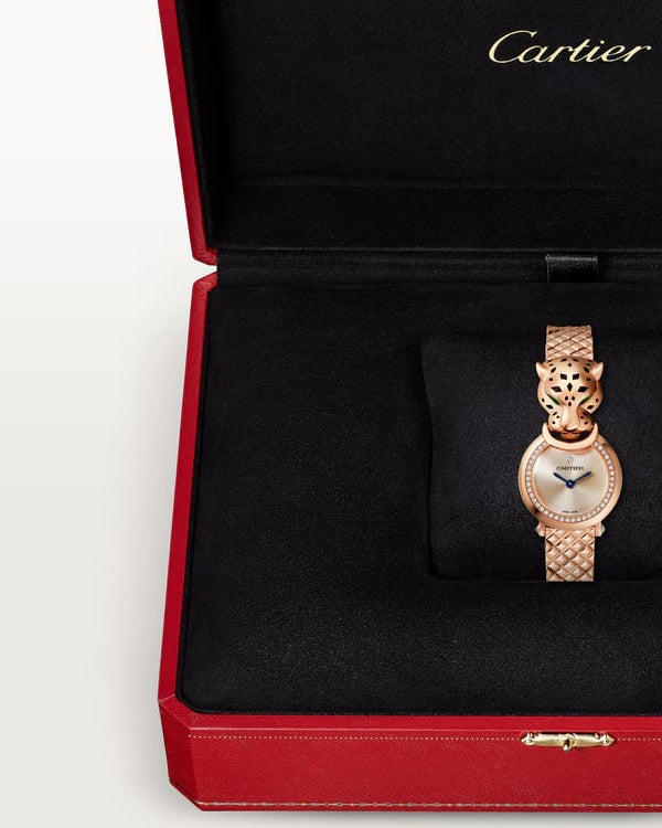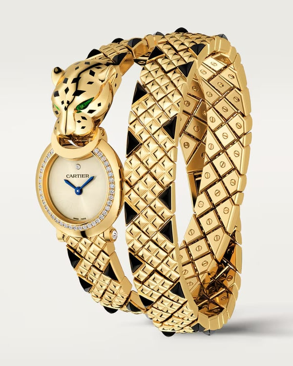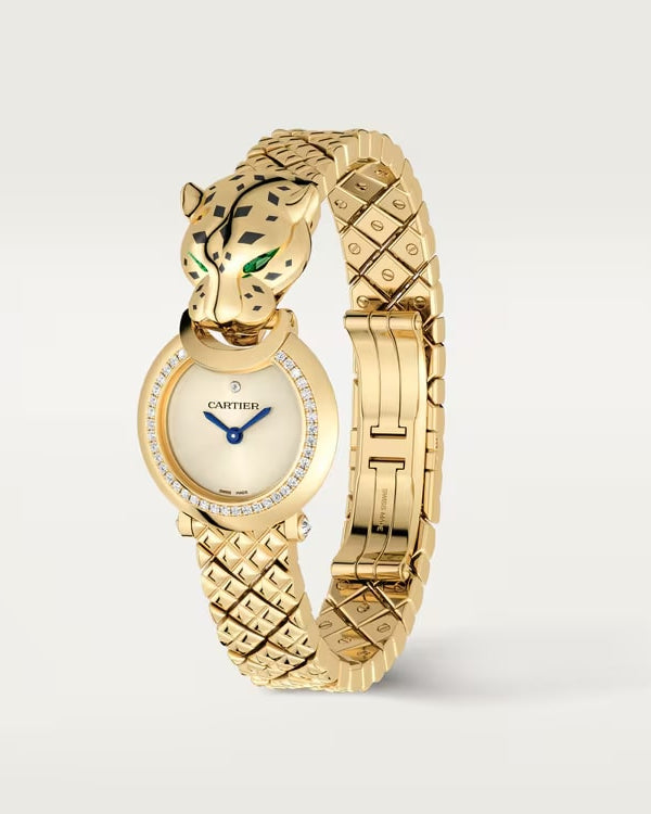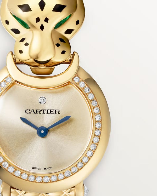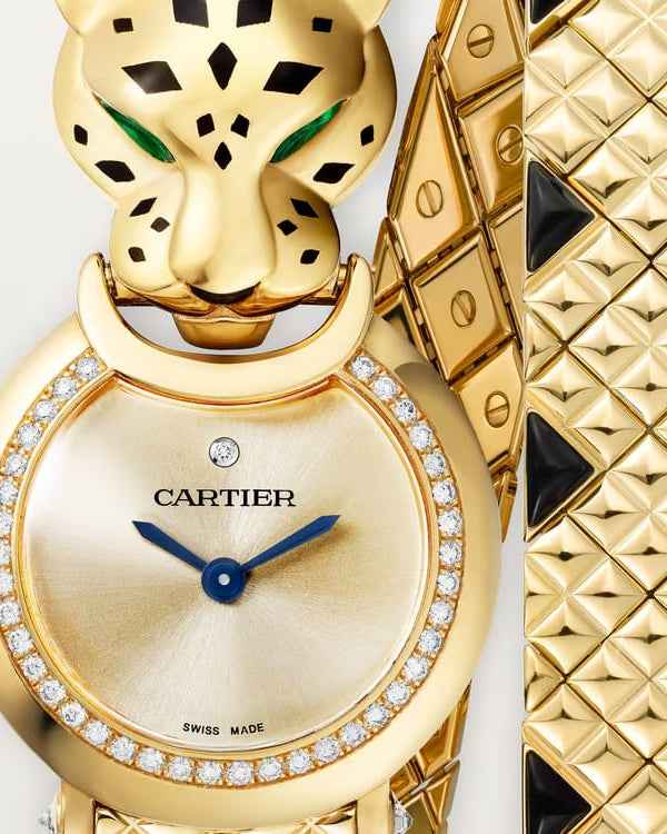 A watch that doubles as a piece of jewelry, Panthère de Cartier is one of the most distinctive Cartier designs. Adorned in gold, diamonds, and exquisite gemstones, it is a staple for a woman who never goes unnoticed. Magnetic, wild, feline, and free.